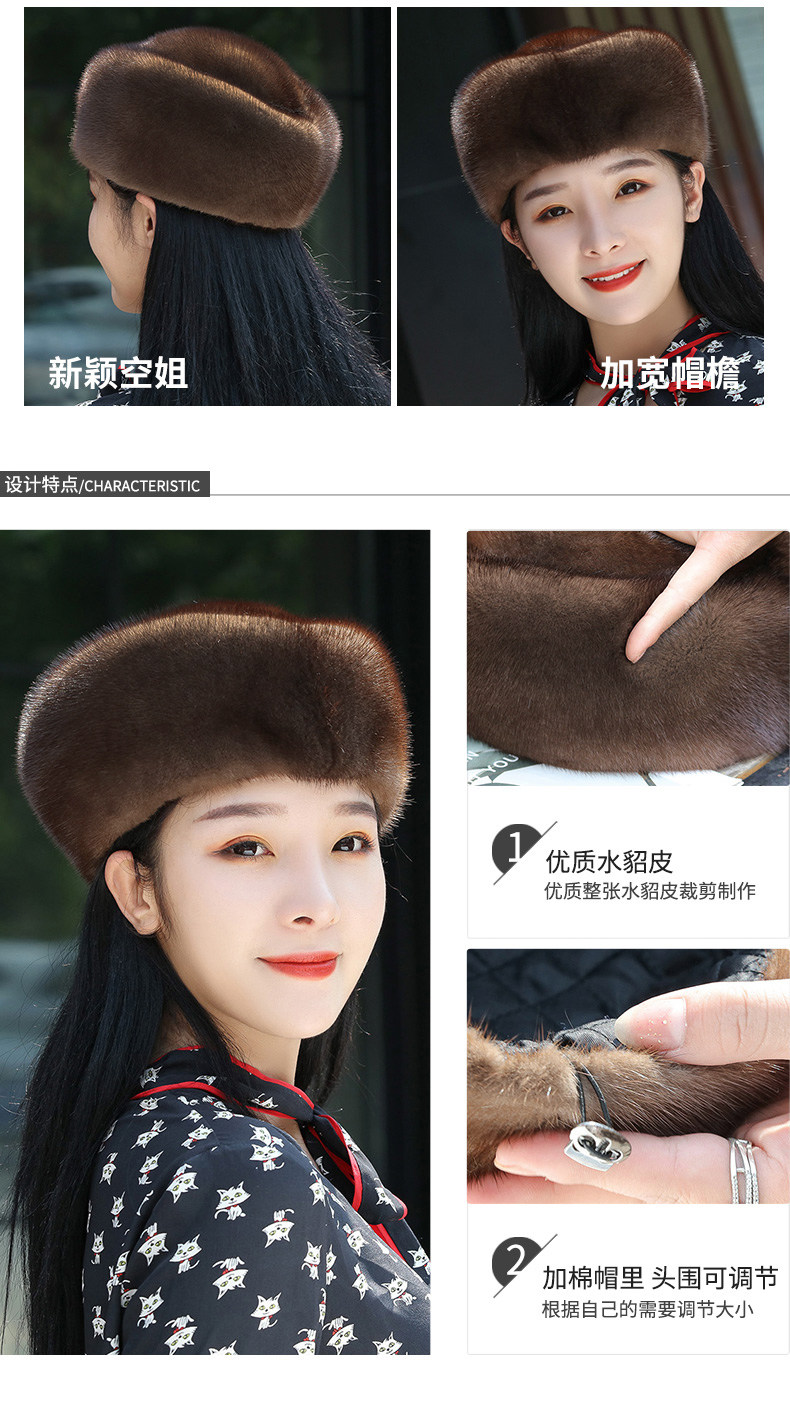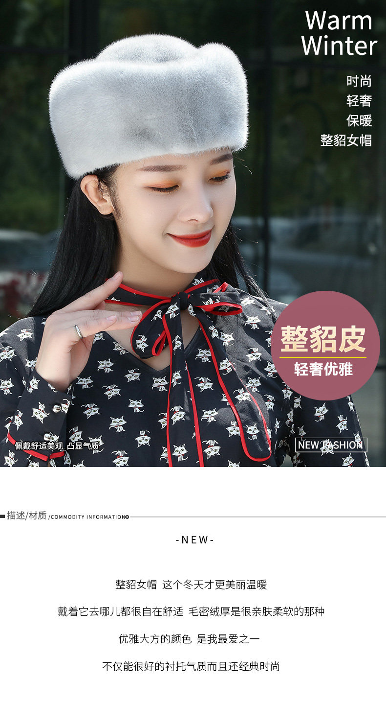 New Mink Fur Hat for Women, Winter, Middle-Aged and Elderly, Full Mink Fur, Ear Protection, Winter Mink Velvet, Mother's Warm Fur Hat