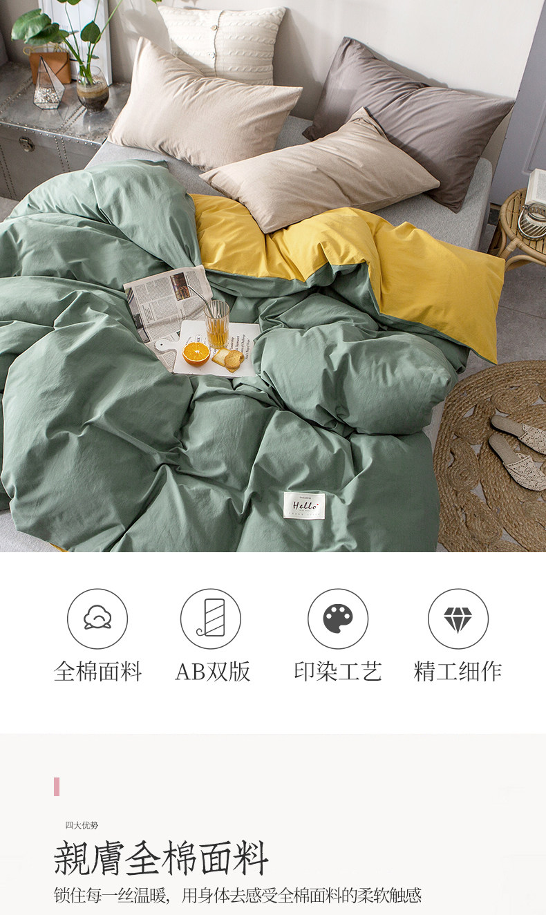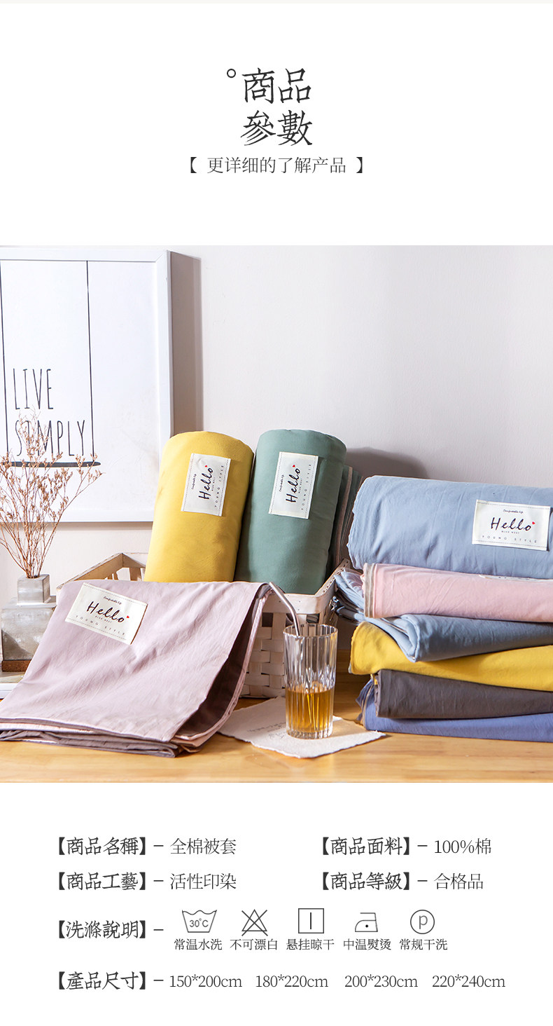 Nanjiren solid color cotton quilt cover single piece pure cotton washed cotton simple single student quilt core cover quilt cover bedding