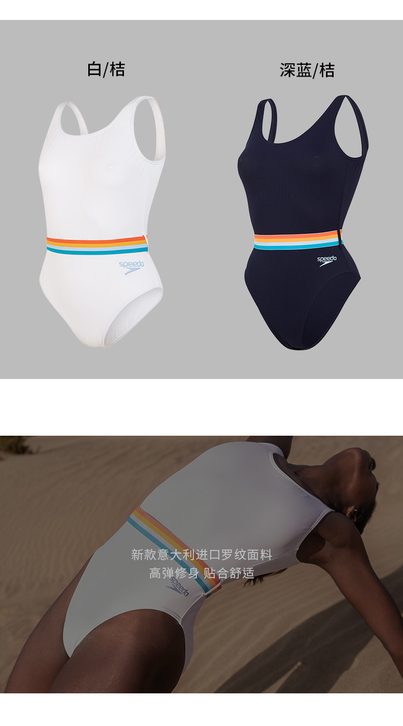 Speedo Women's Swimsuit Mediterranean Retro Belt One-Piece Triangle Slimming Tummy-Covering Conservative Fairy Style Hot Spring Swimwear