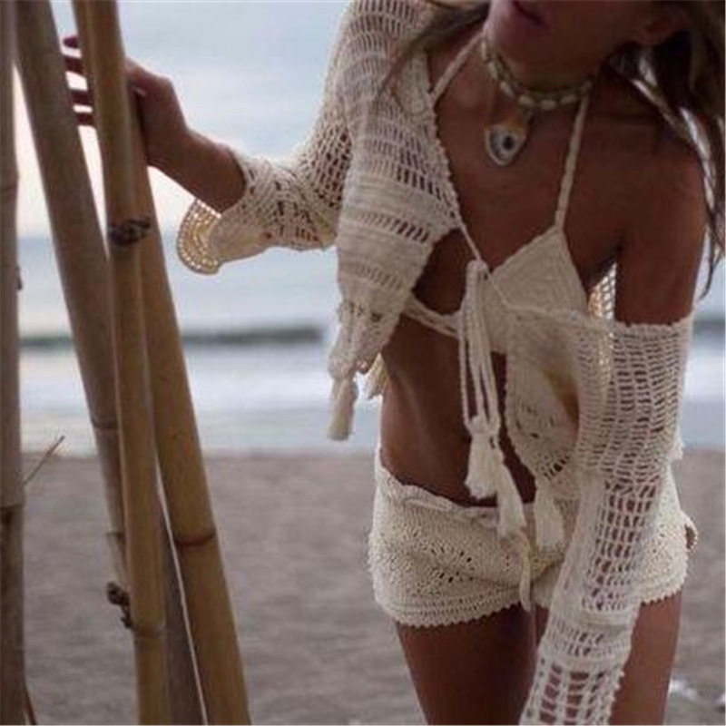 2020 New Beach Vacation Hot-Selling Bikini Swimsuit for Women, Hot and Sexy Hand-Crocheted Knit Top