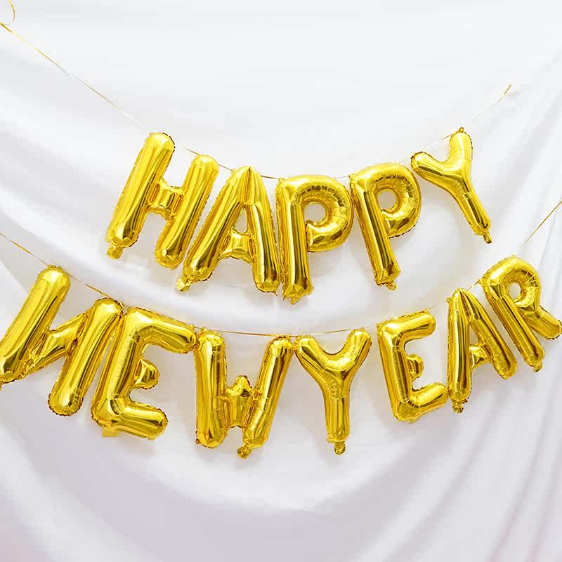 Happy New Year Letter Package Party Spring Festival Party Decoration English Aluminum Film Balloon Hotel Shop Decoration
