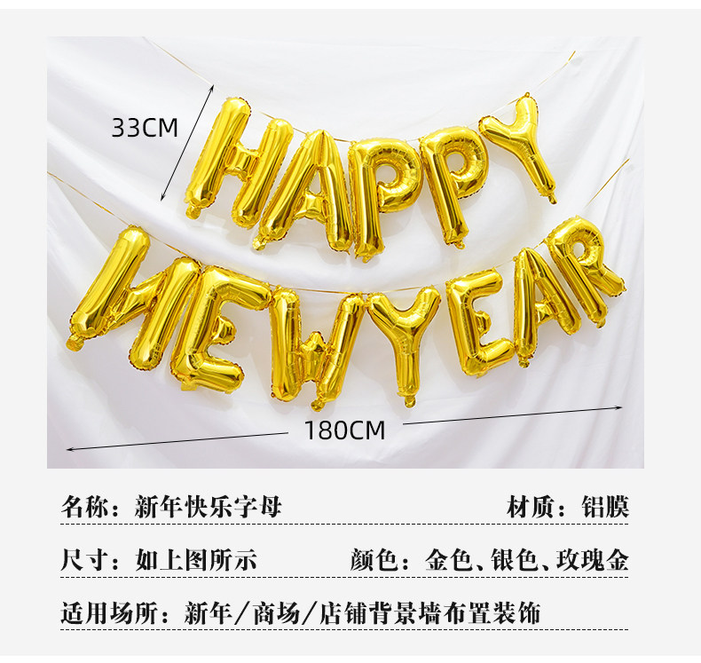 Sort by color 18-inch Happy New Year Star (comes with pump + dispensing glue),16-inch golden Happy New Year letters (come with pump + dispensing glue),16-inch red Happy New Year letters (come with pump + dispensing glue),16-inch silver Happy New Year letters (come with pump + dispensing glue)