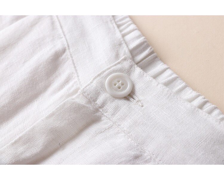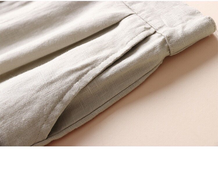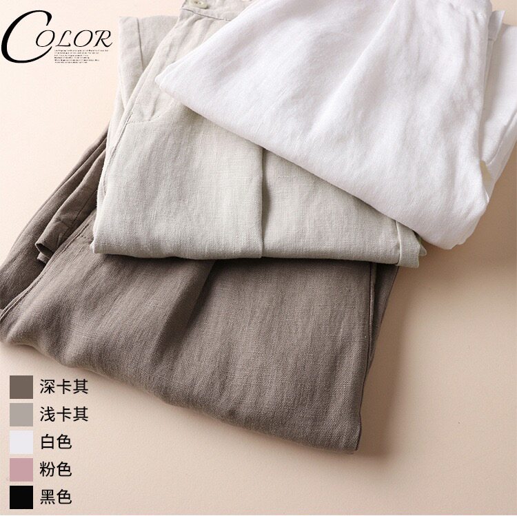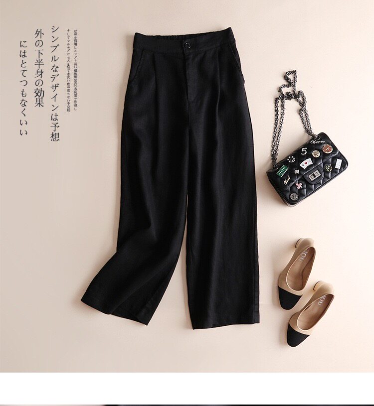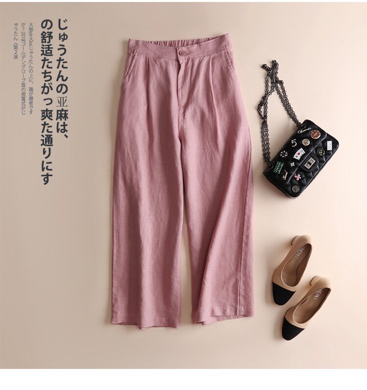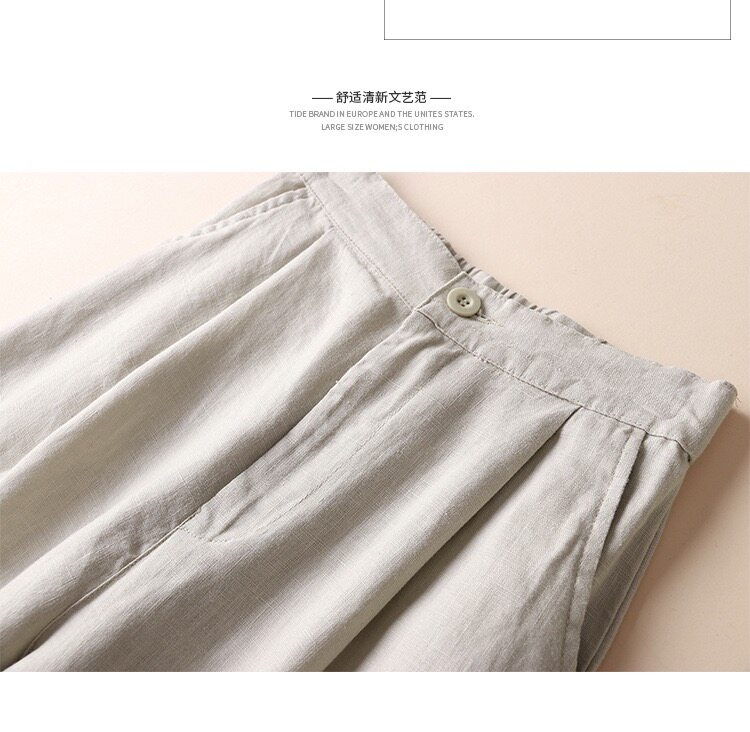 Spring and Summer Linen Casual Pants, Thin Cotton-Linen Wide-Leg Pants, Straight-Leg Pants, Drapey Loose Nine-Point Pants, Women's Pastoral Style