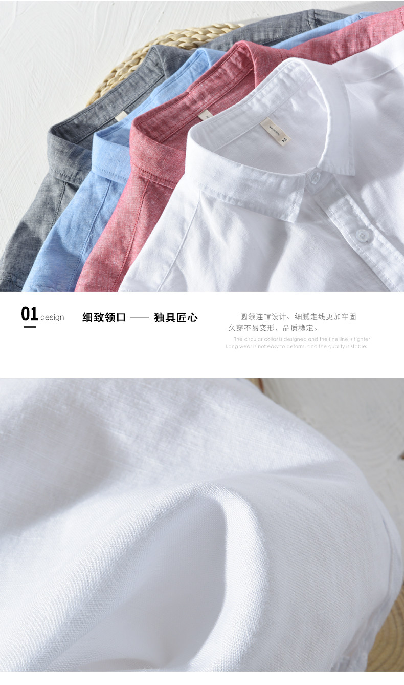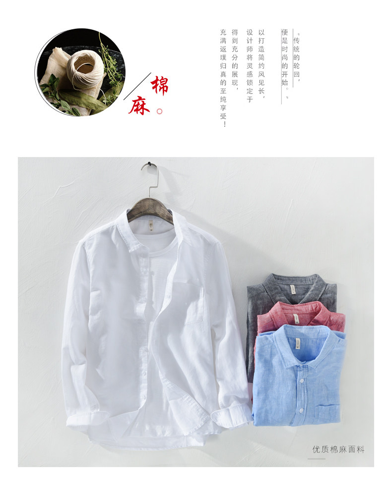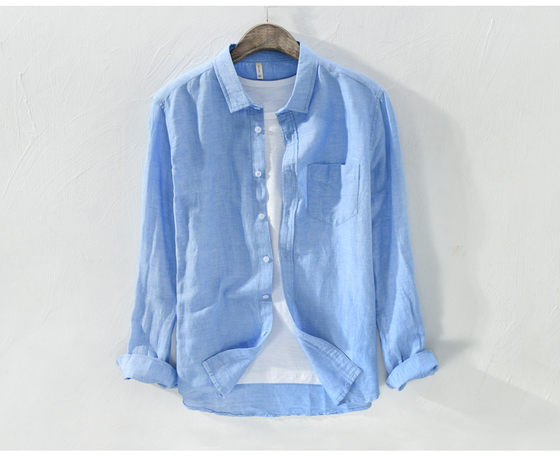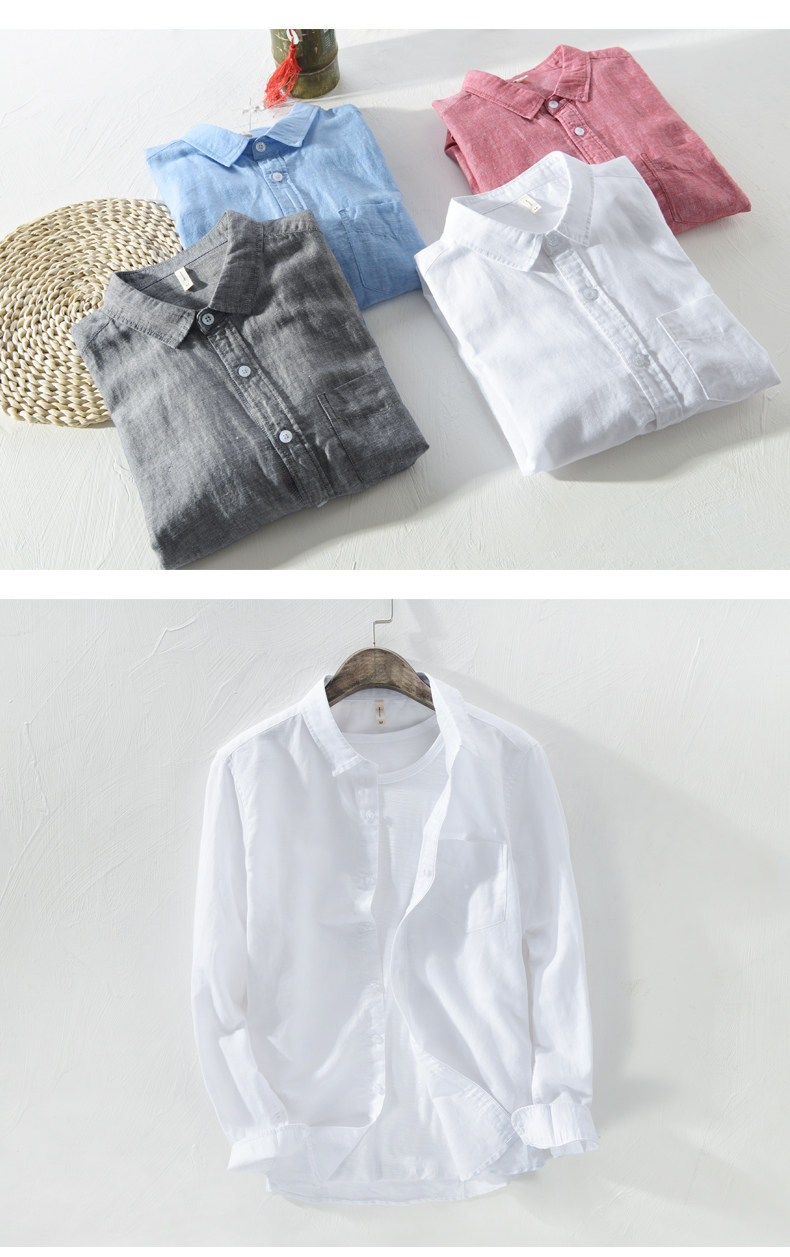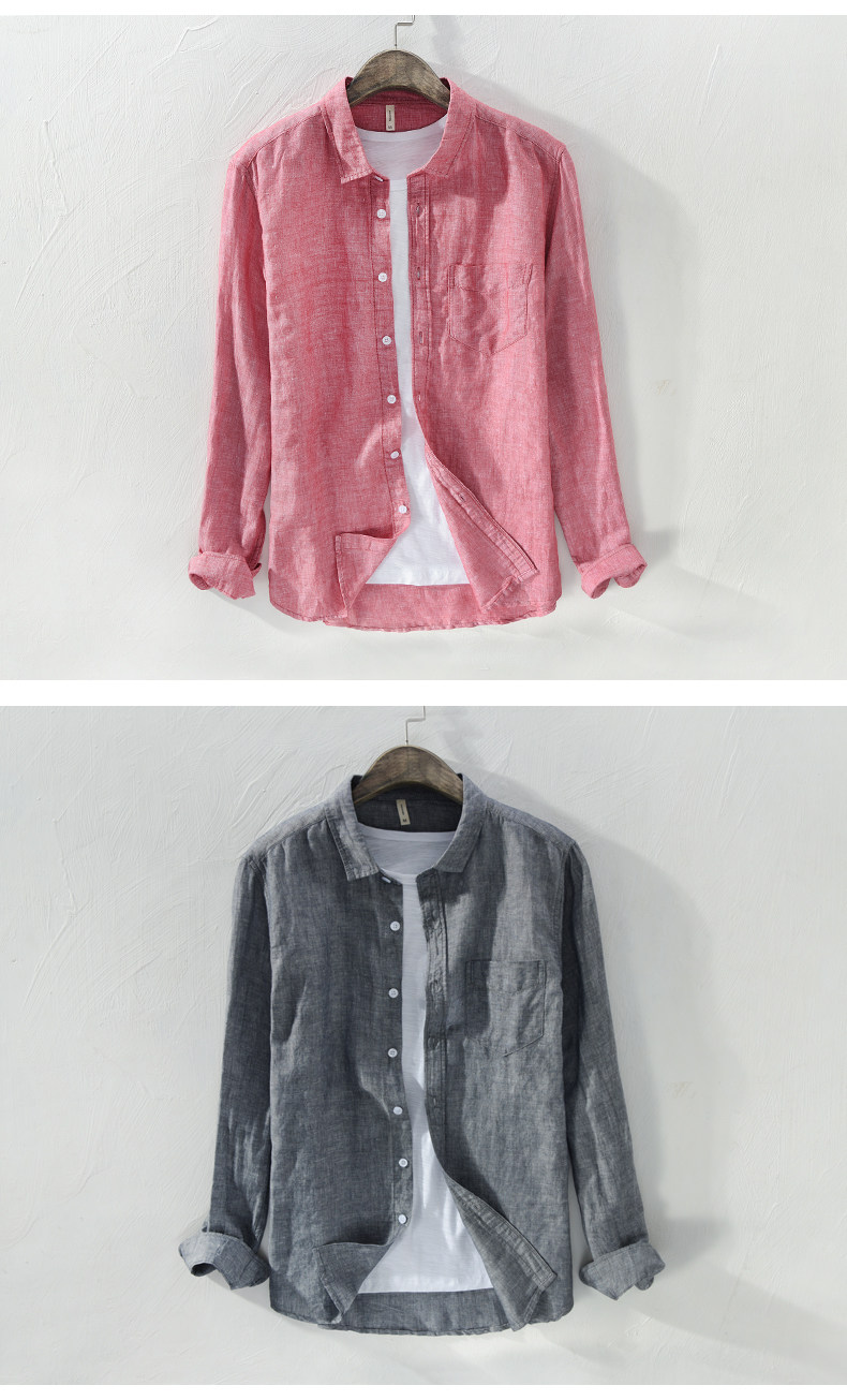 Linen Shirt for Men, Casual, Simple, Long-Sleeved, Loose, Thin, Solid Color, Breathable Top for Spring and Summer, Cotton-Linen Shirt for Outer Wear