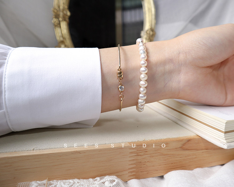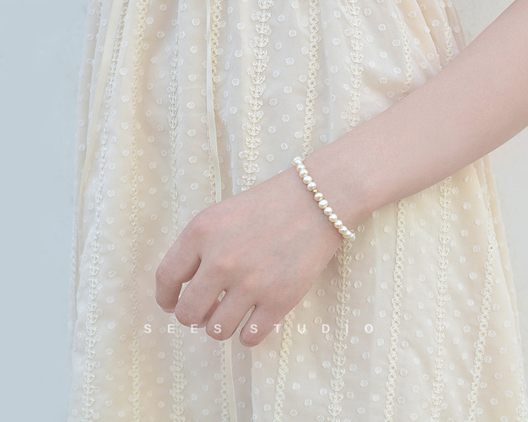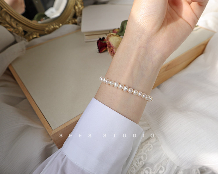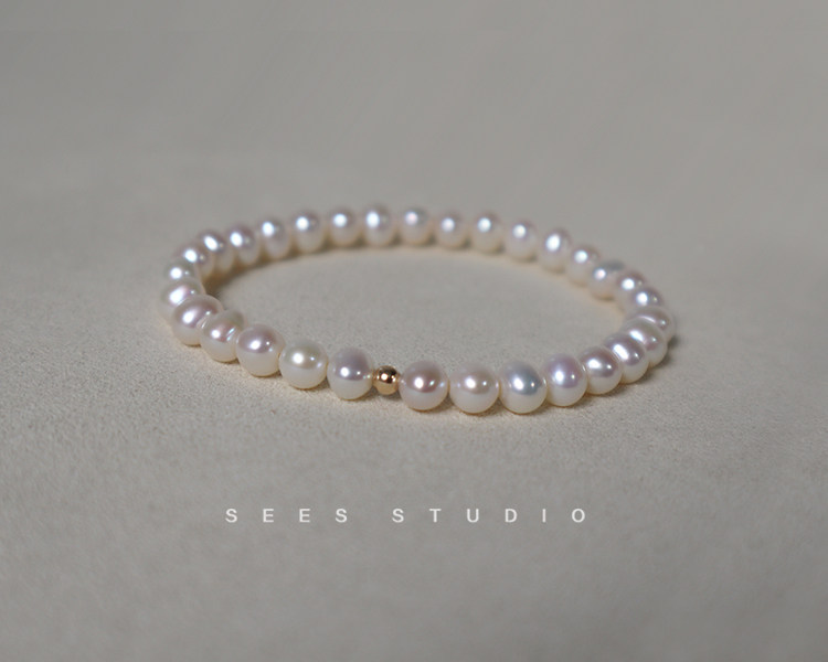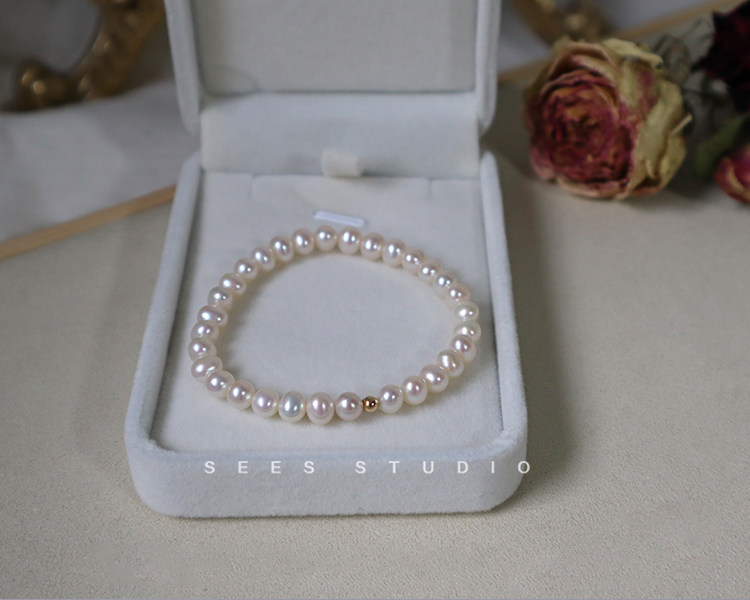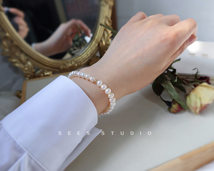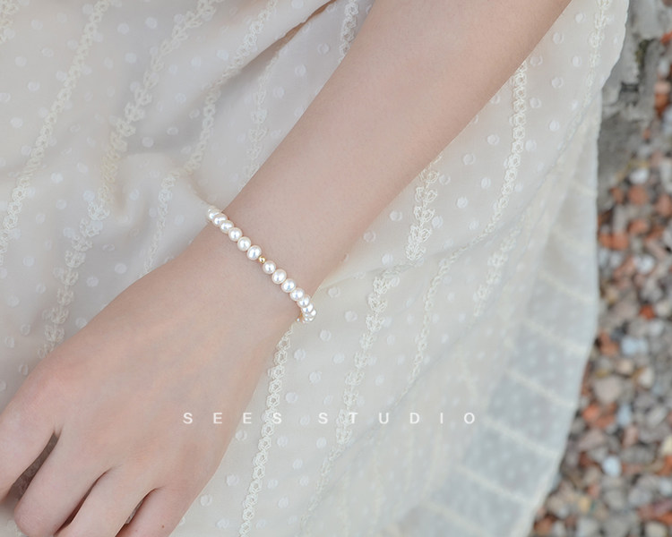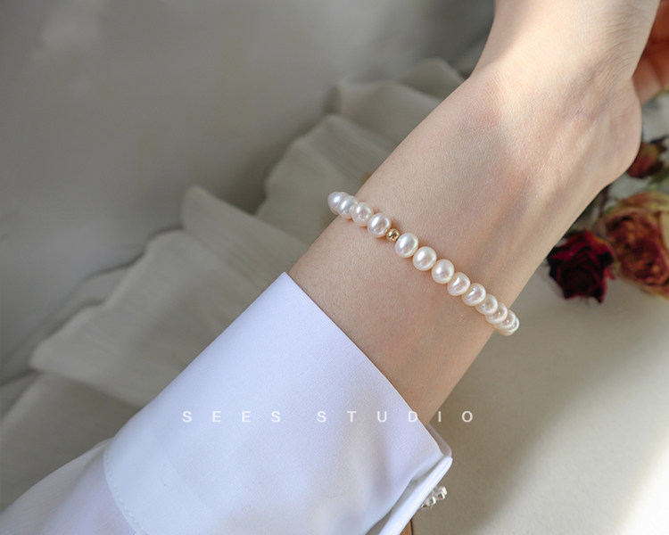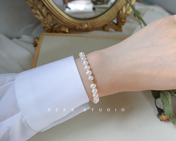 SEES Natural Freshwater High-Light Real Pearl Bracelet for Women Simple Retro 14k Gold Niche Design/Elastic Cord