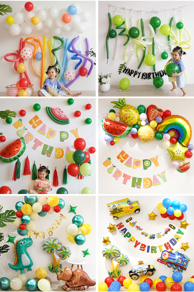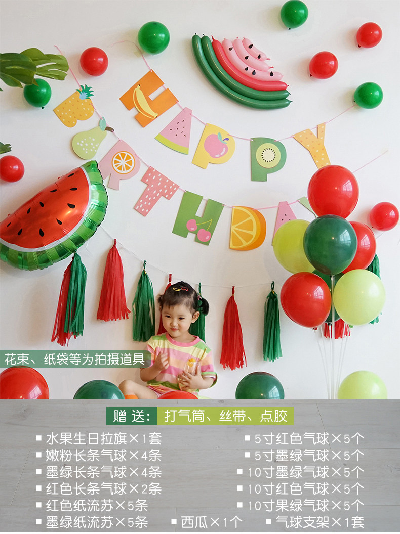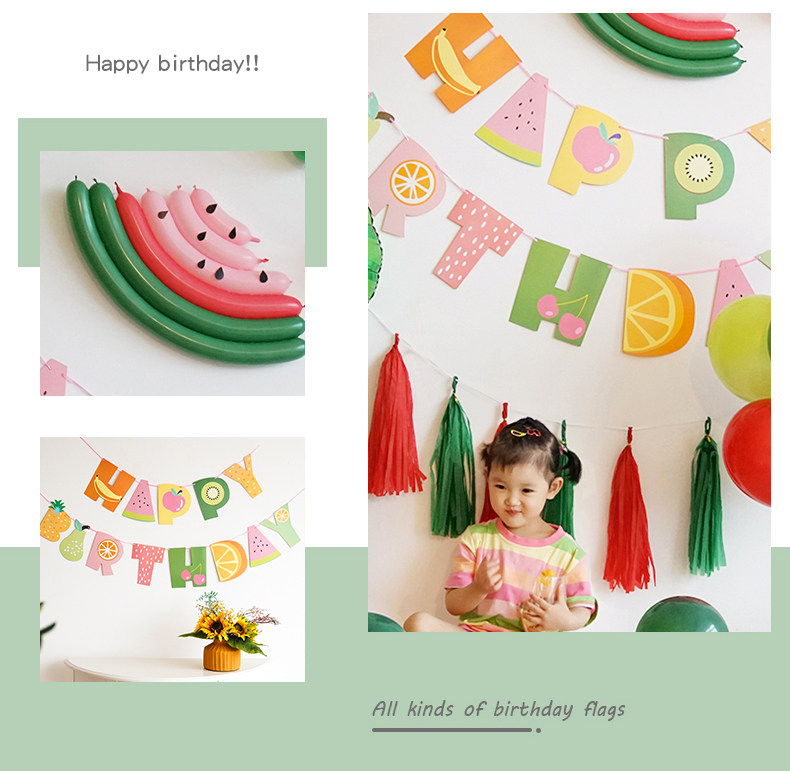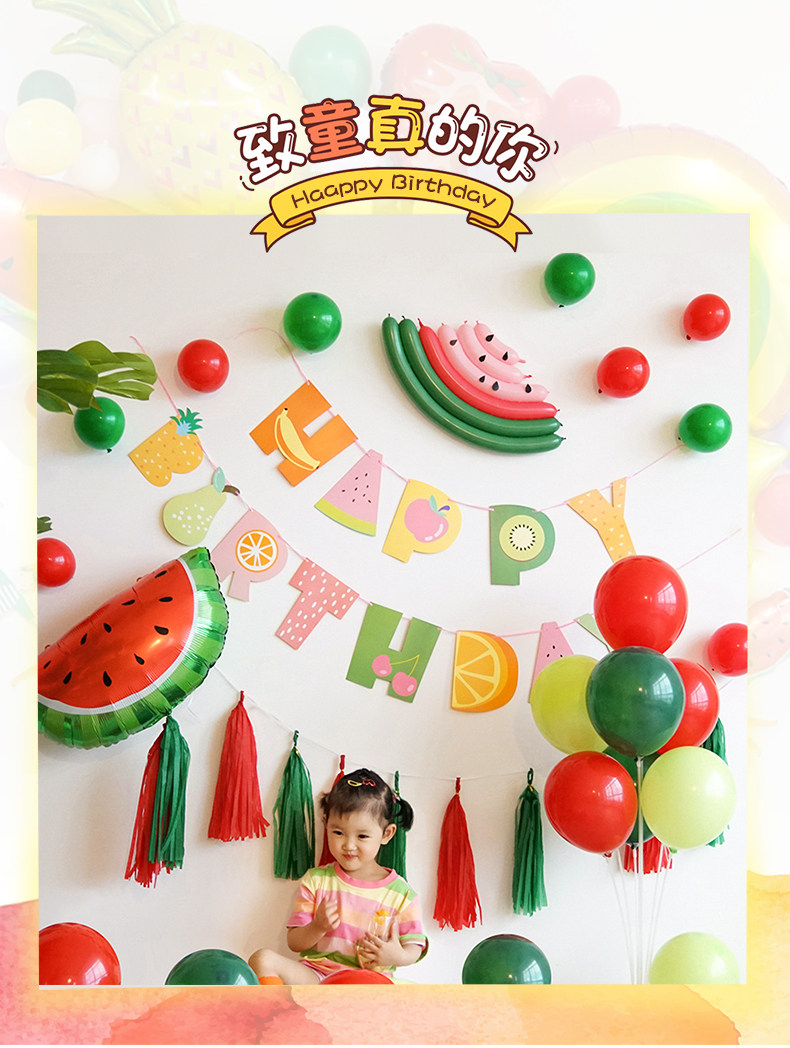 Fruit themed baby first birthday layout internet celebrity ins girl cartoon balloon background wall scene decoration