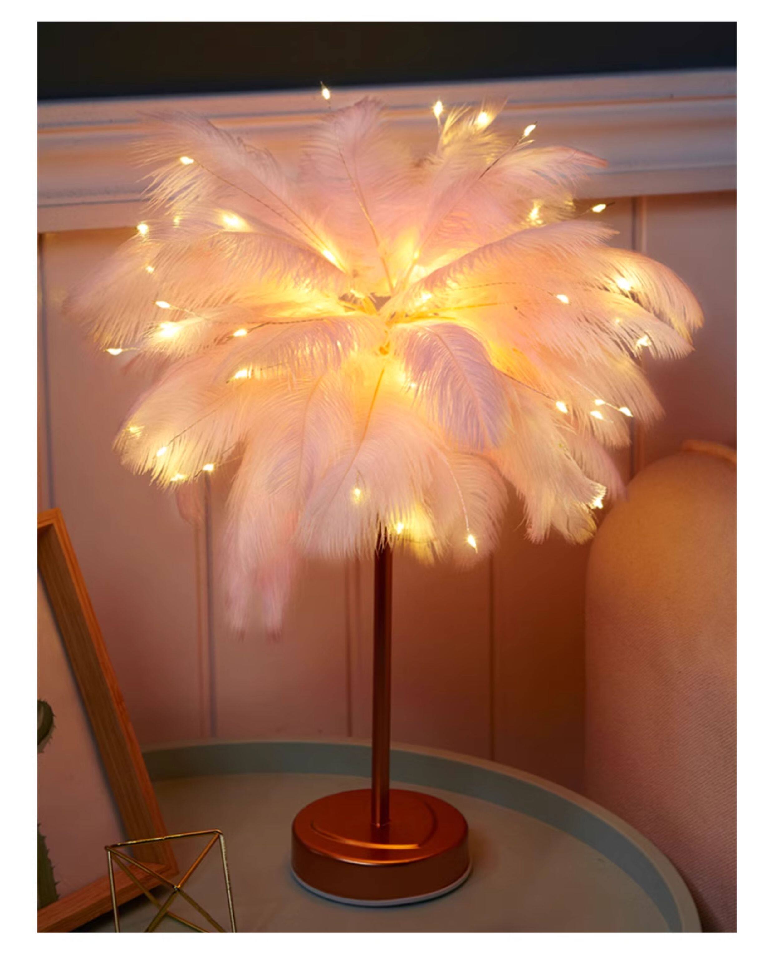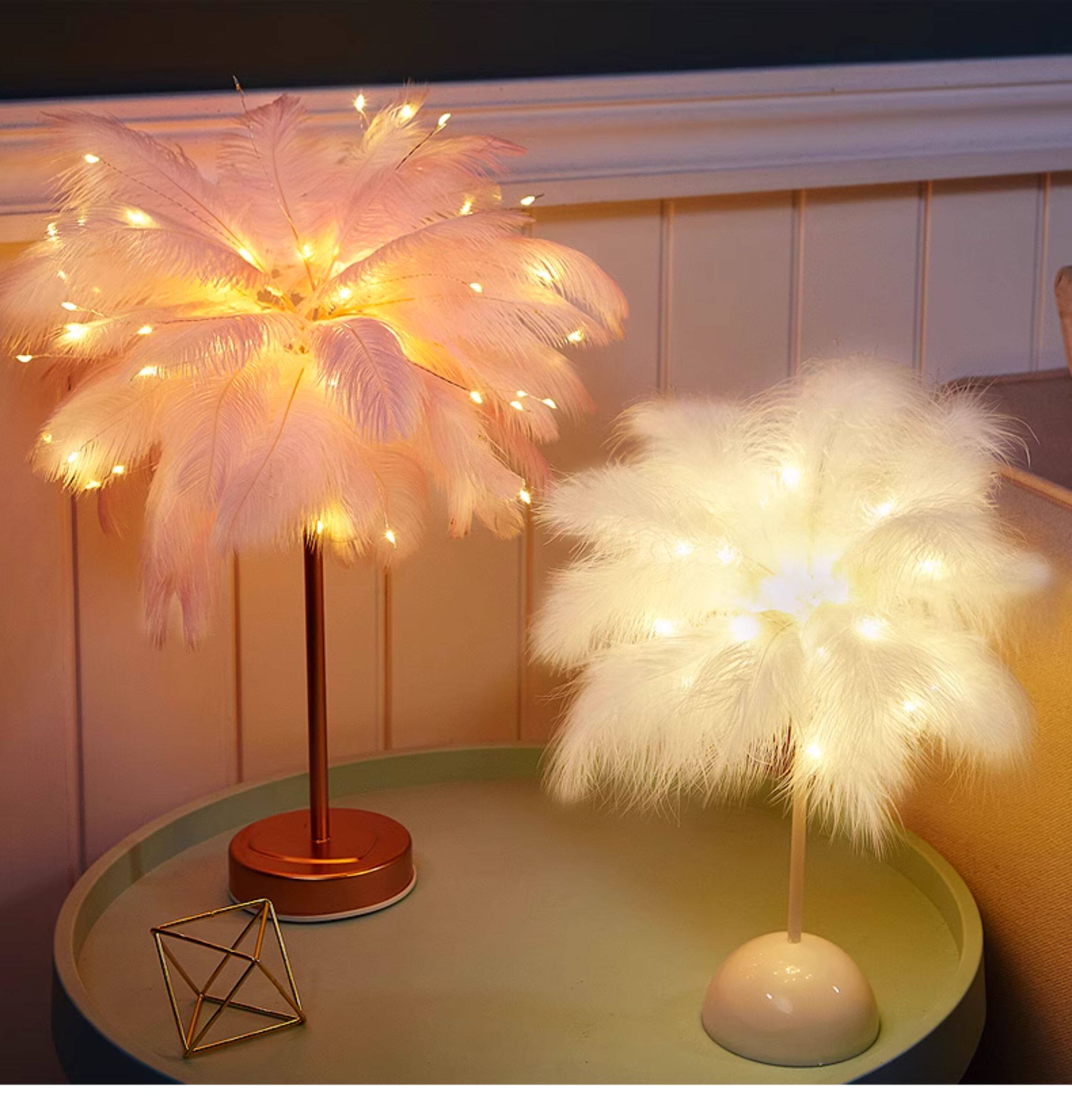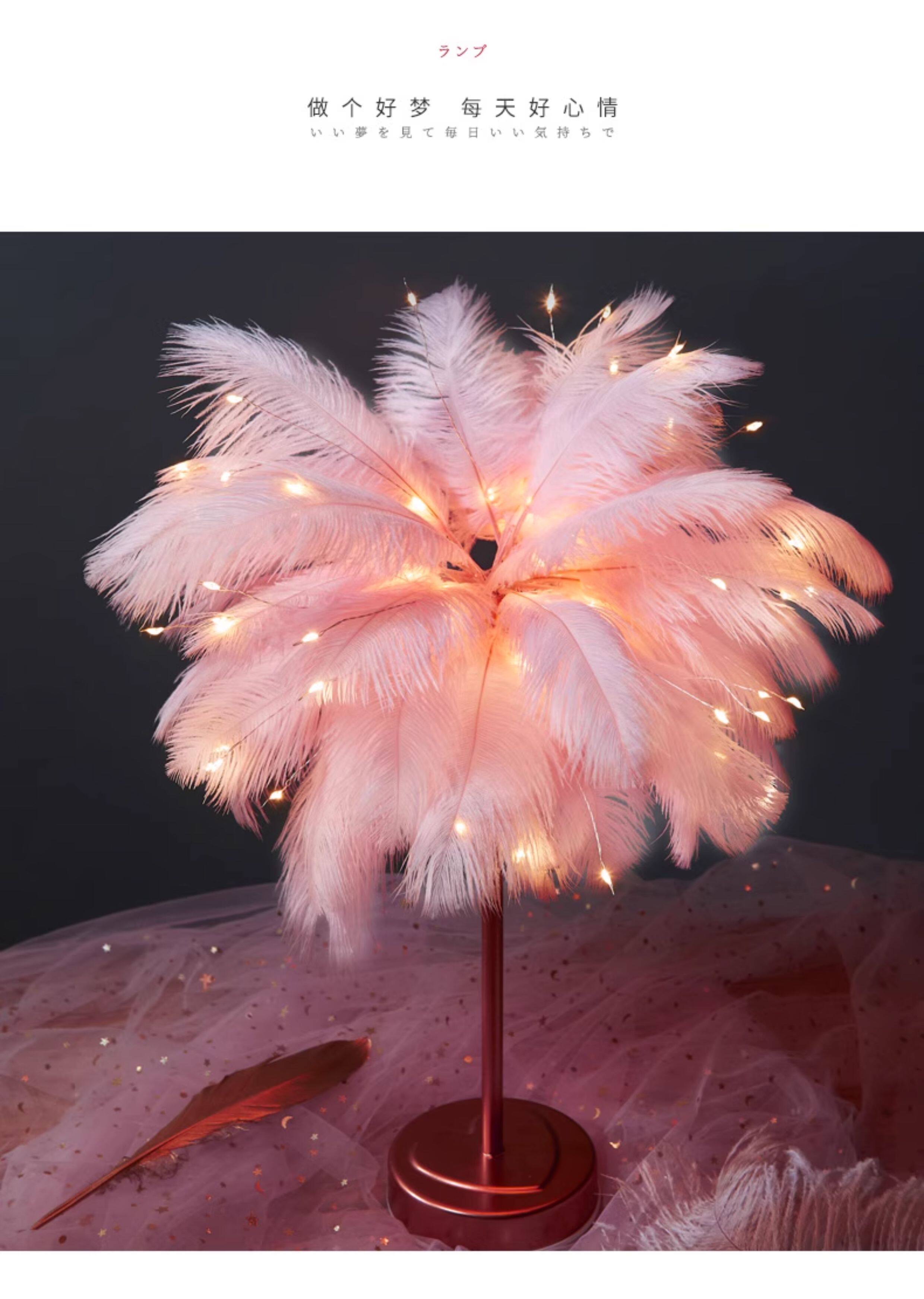 Internet celebrity ins feather decorative lamp creative room lantern bedroom night light layout girl heart birthday gift