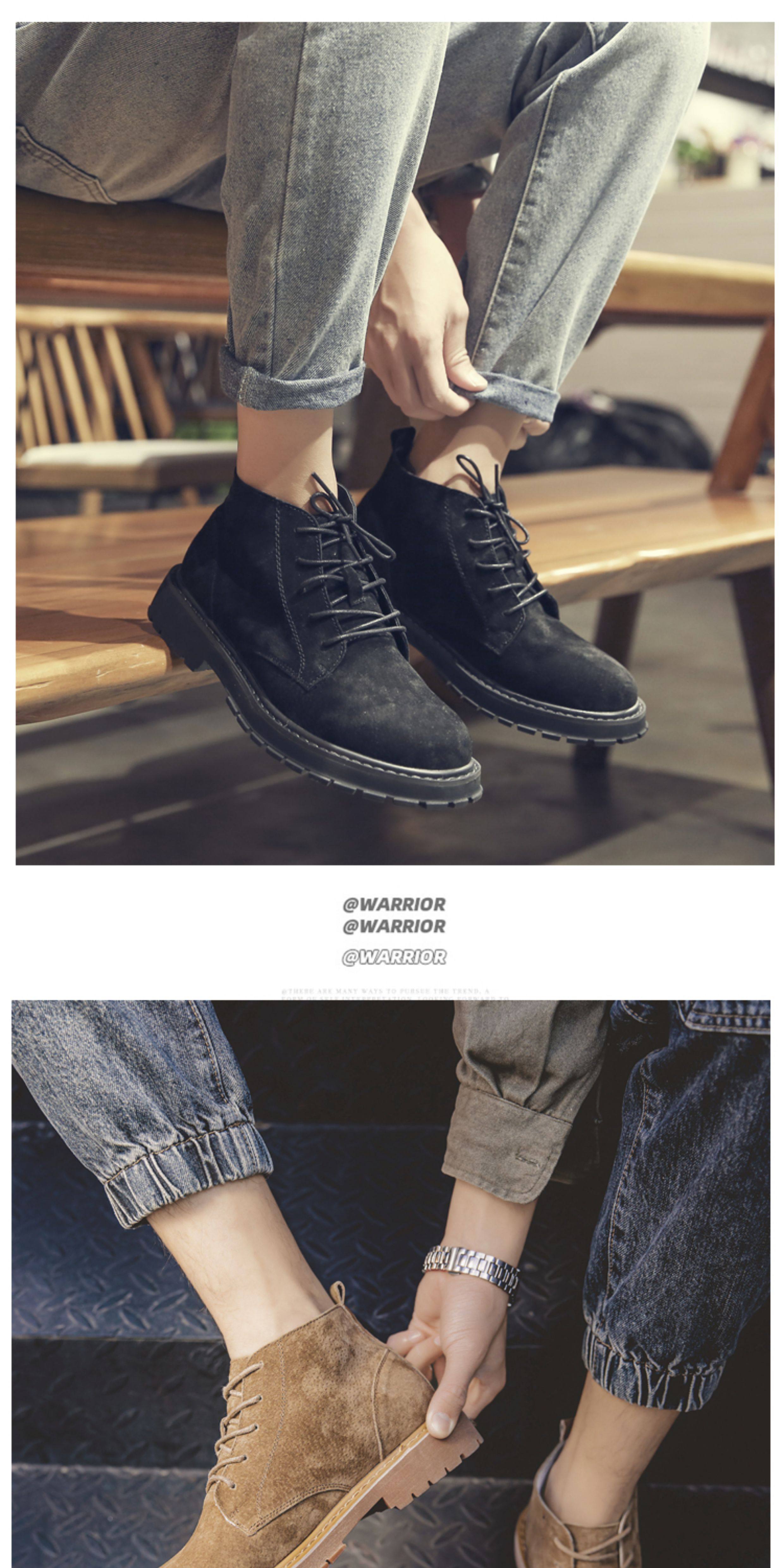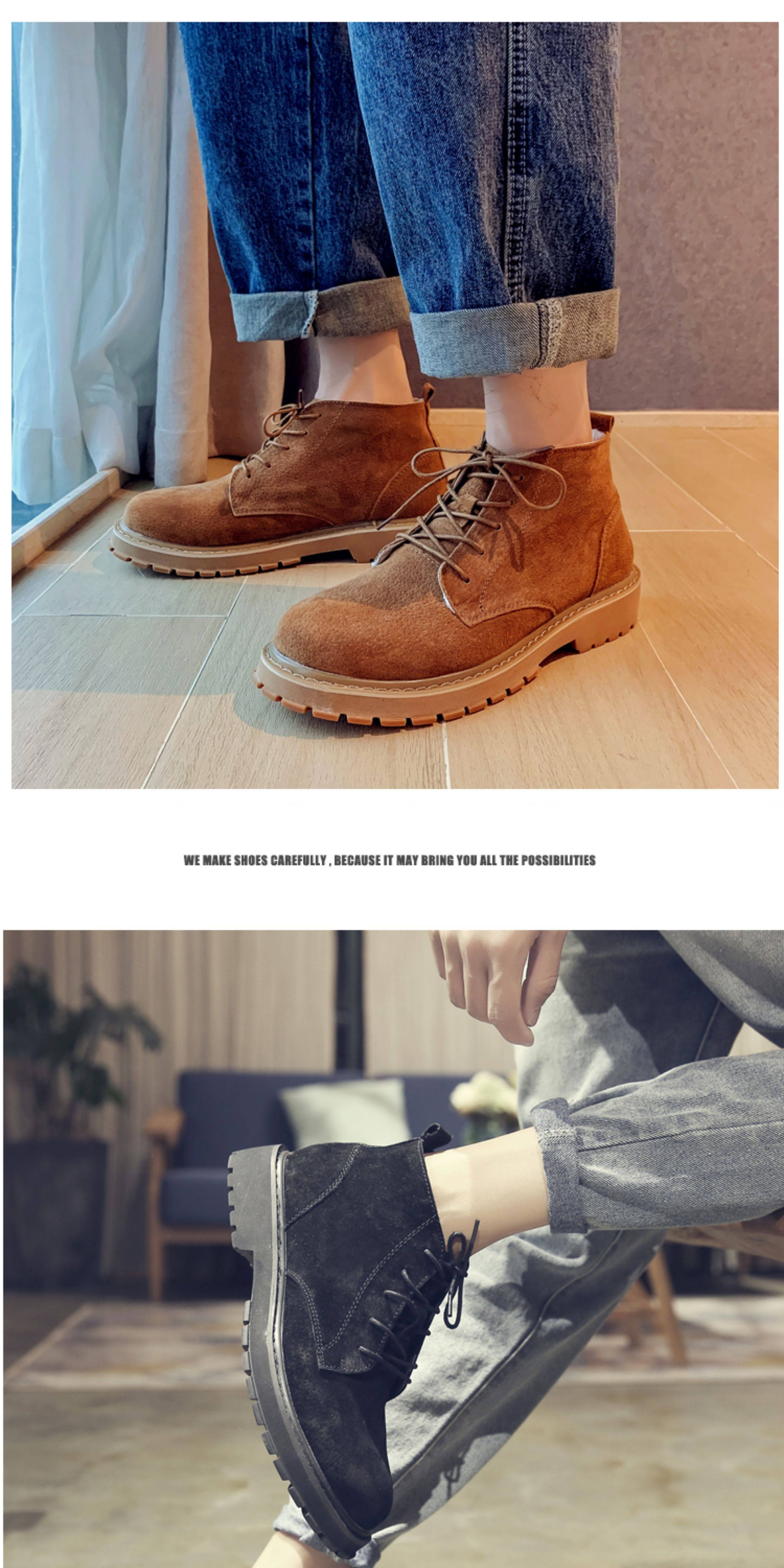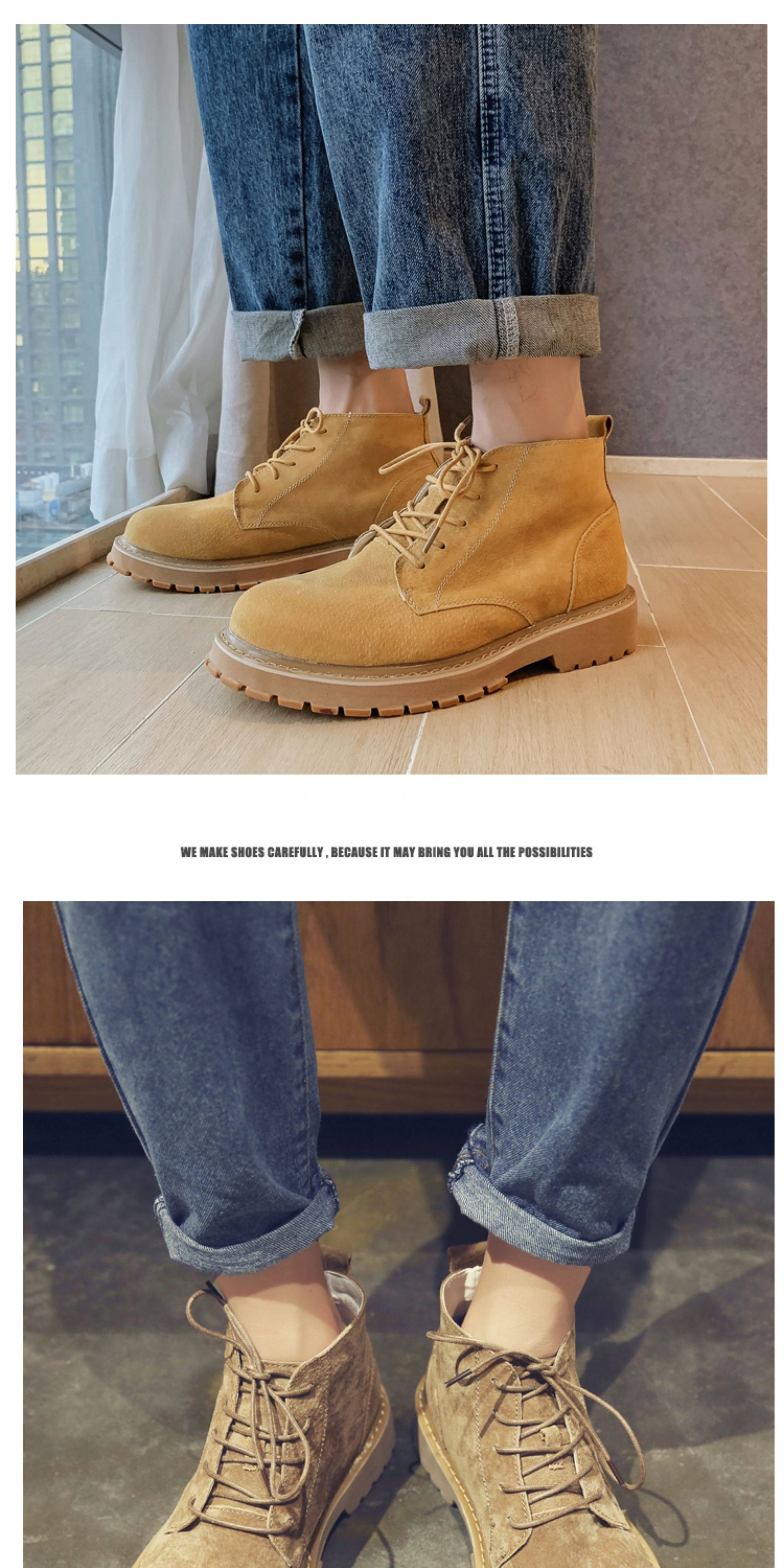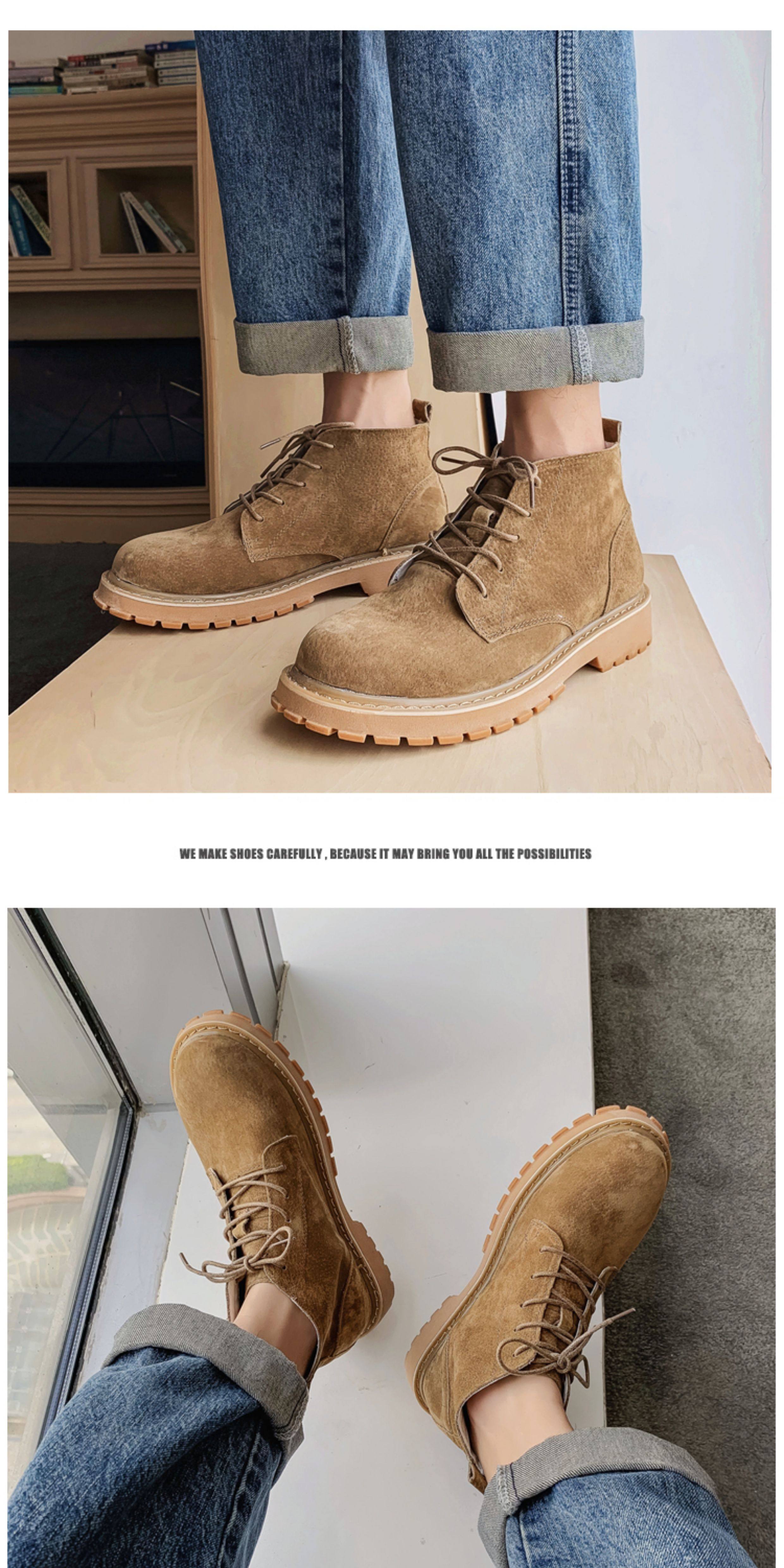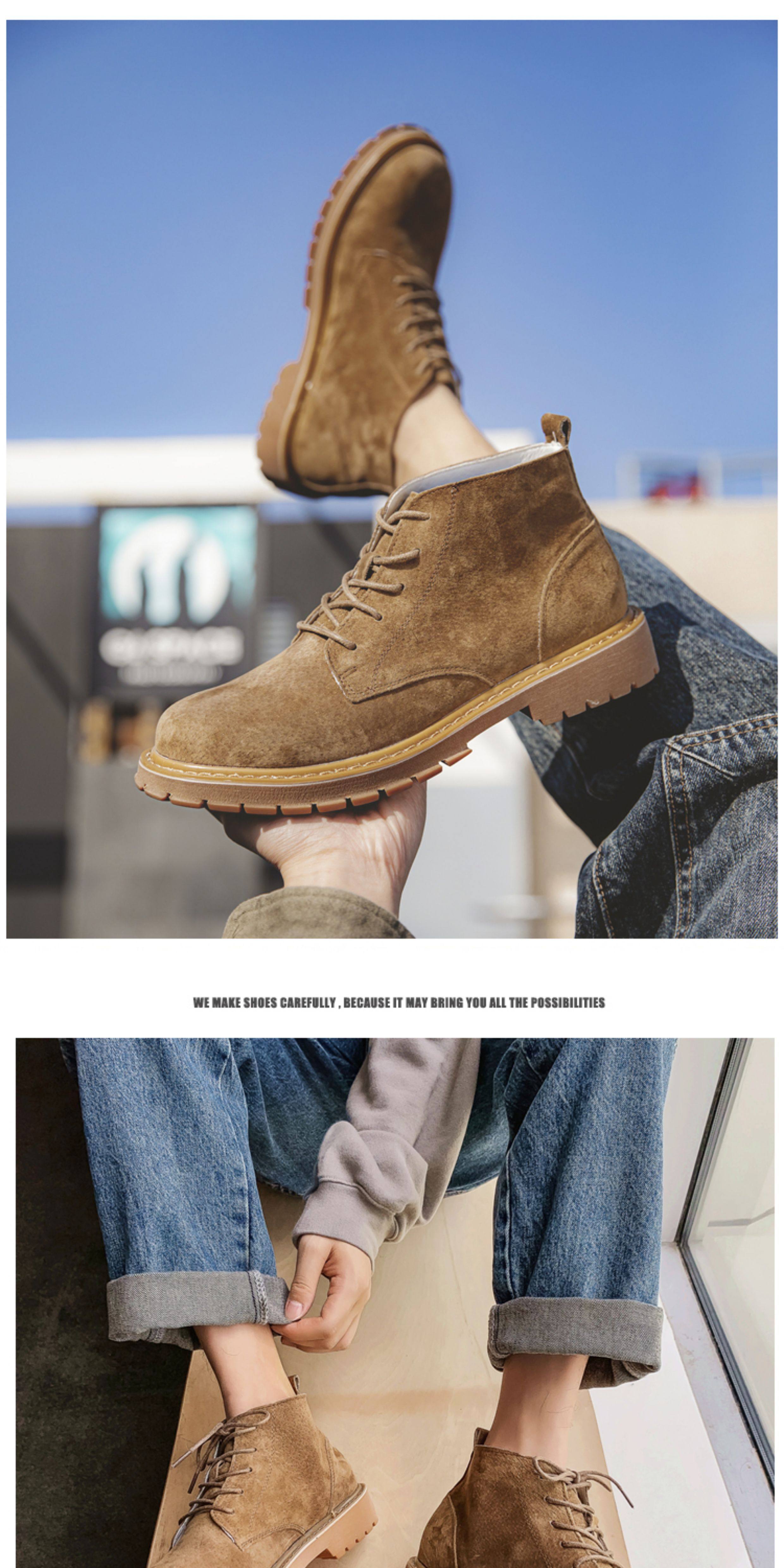 Martin Boots for Men, Winter High-Top Shoes with Plush Lining, British Style Genuine Leather, Korean Version, Retro Trendy Versatile Mid-Top Work Boots