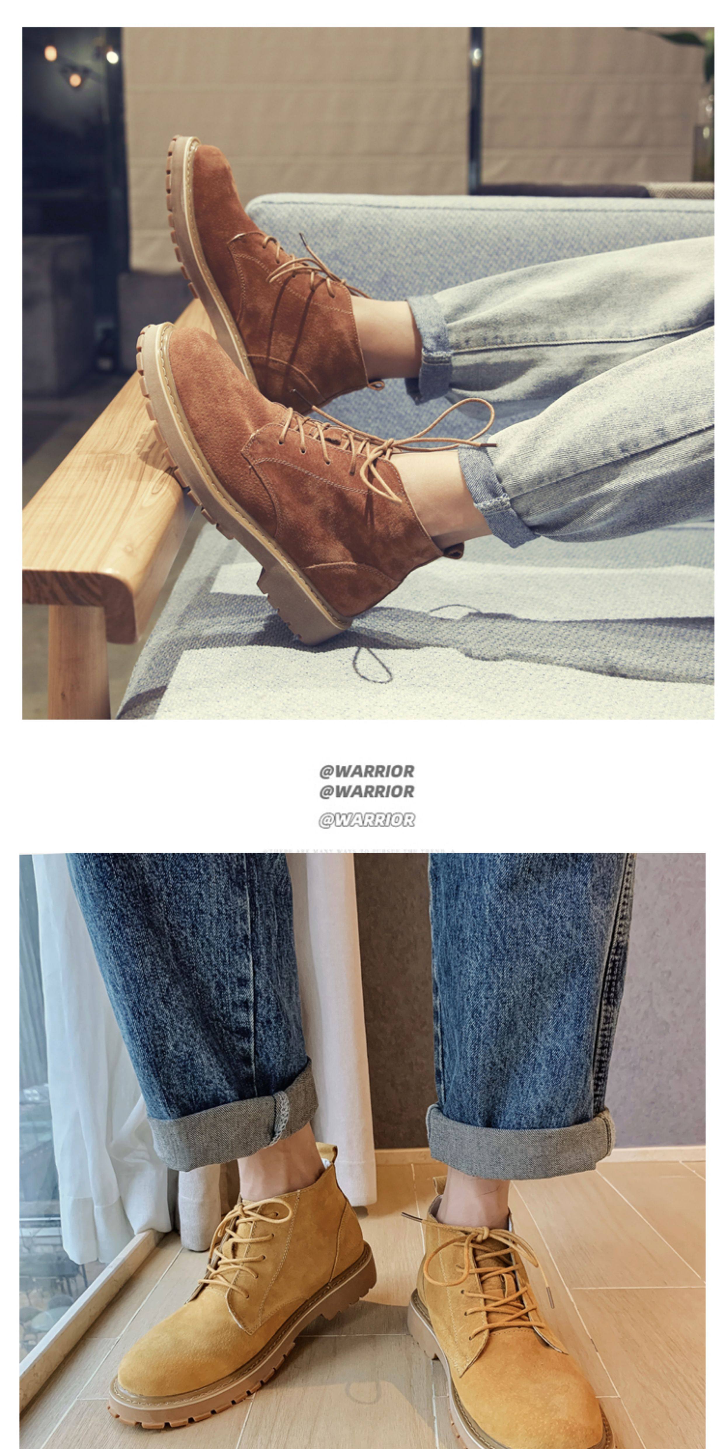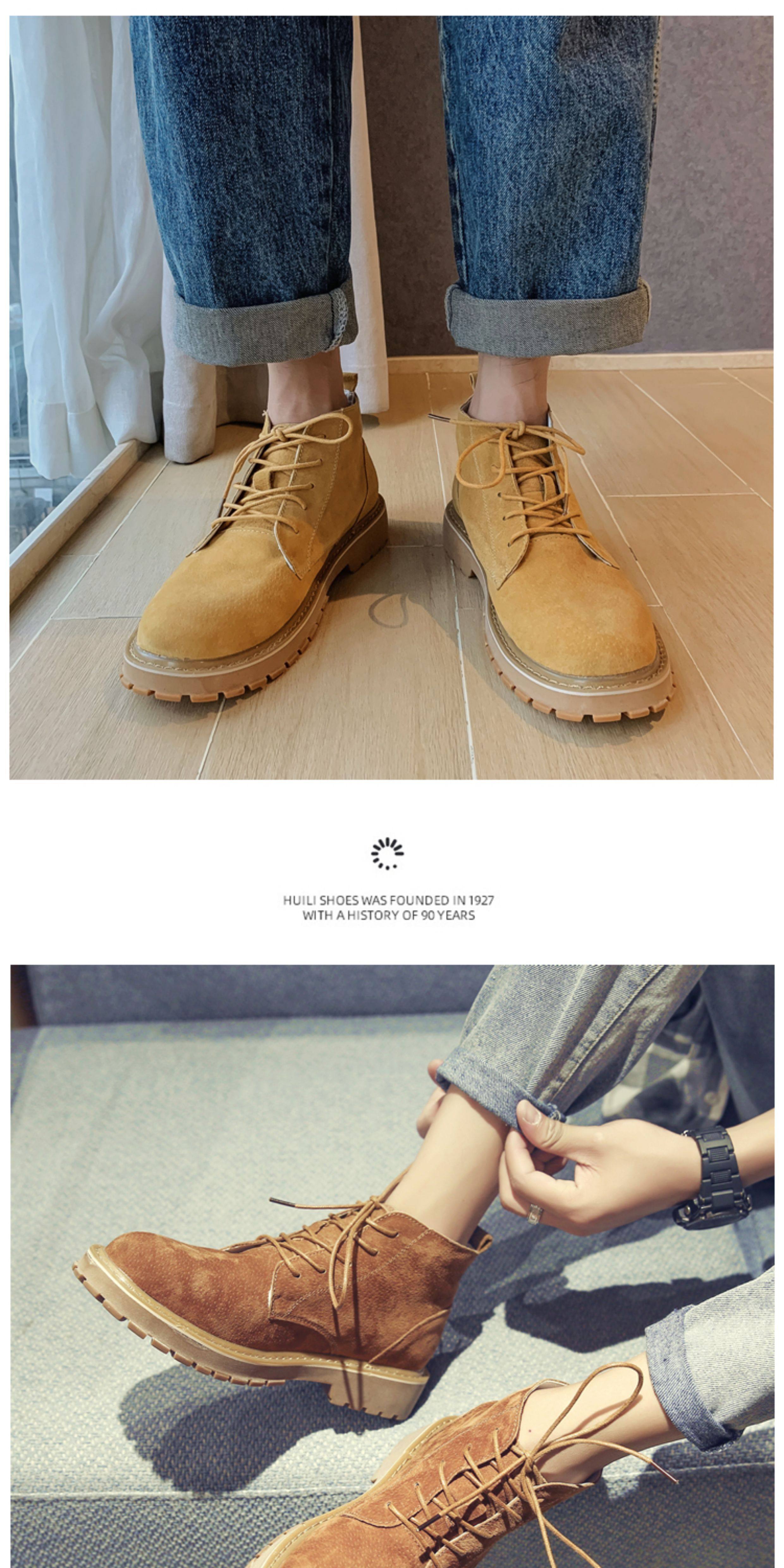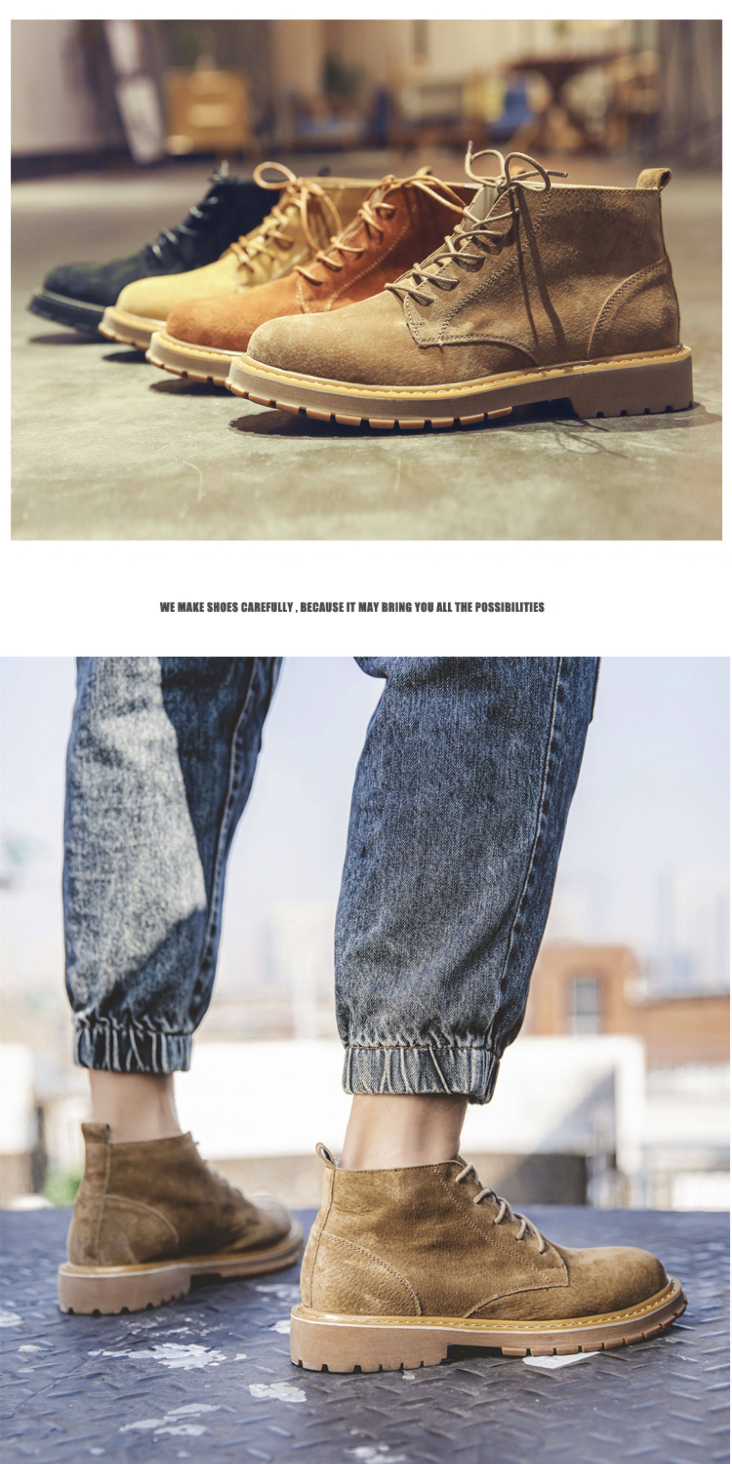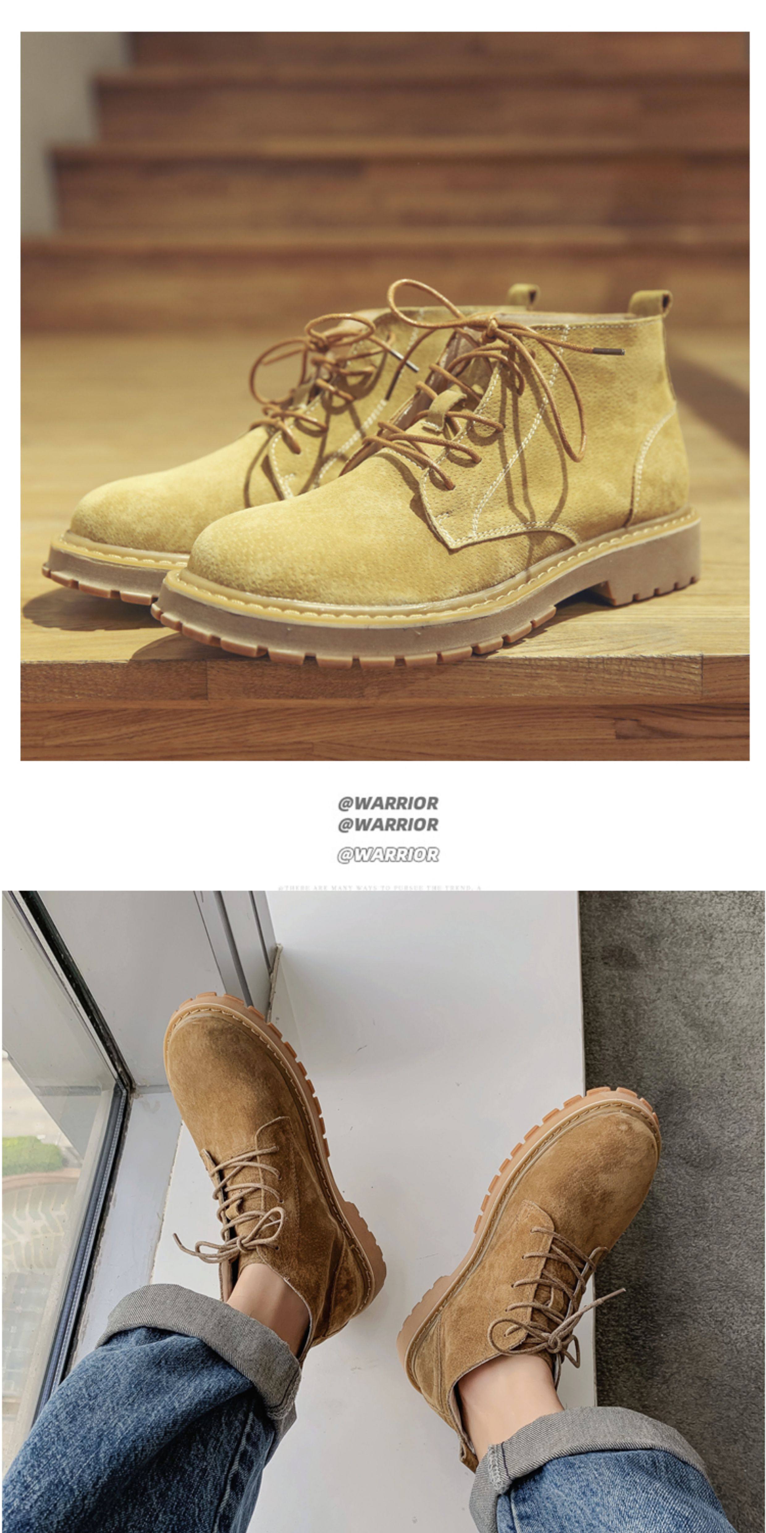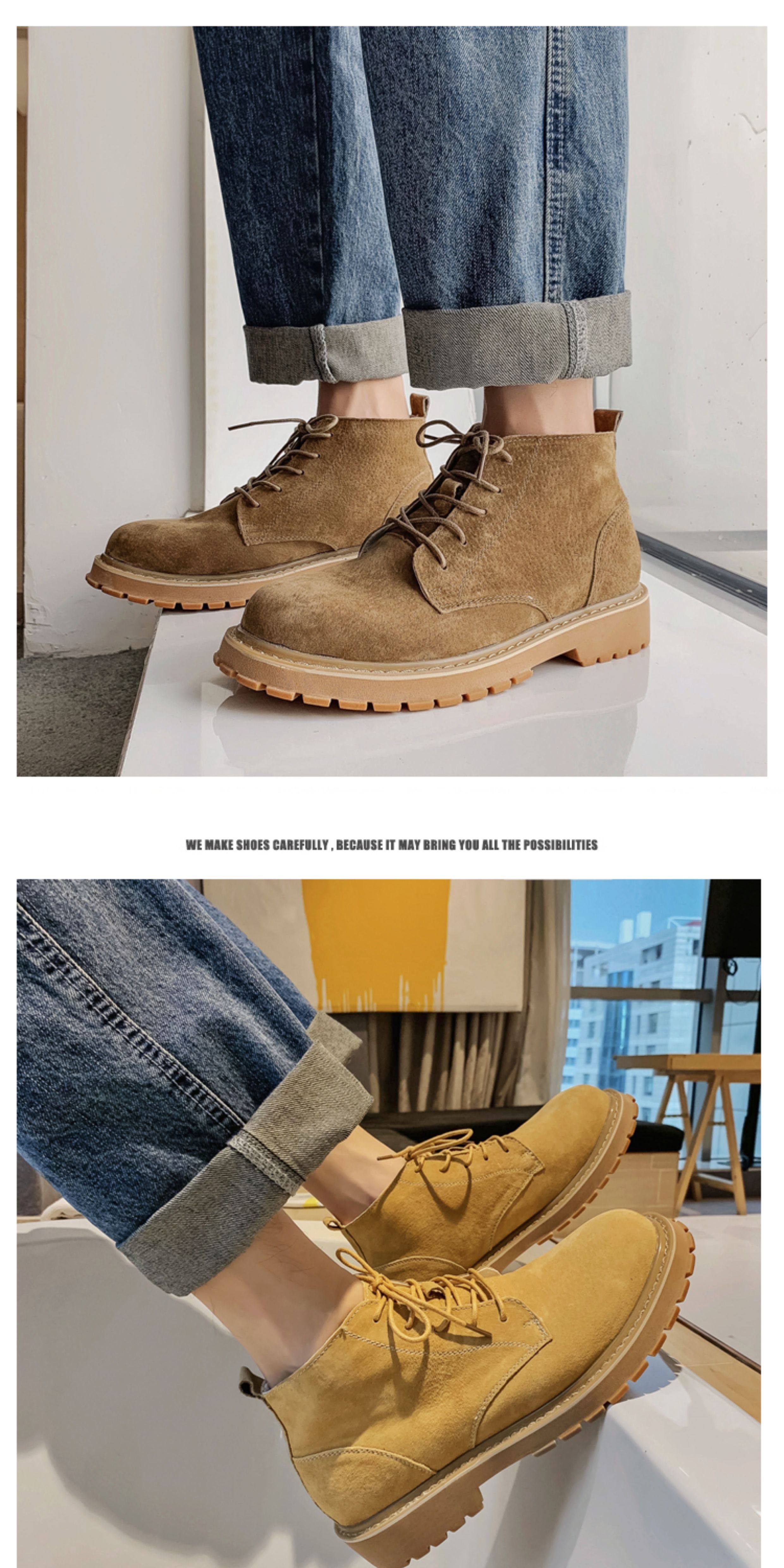 Martin Boots for Men, Winter High-Top Shoes with Plush Lining, British Style Genuine Leather, Korean Version, Retro Trendy Versatile Mid-Top Work Boots