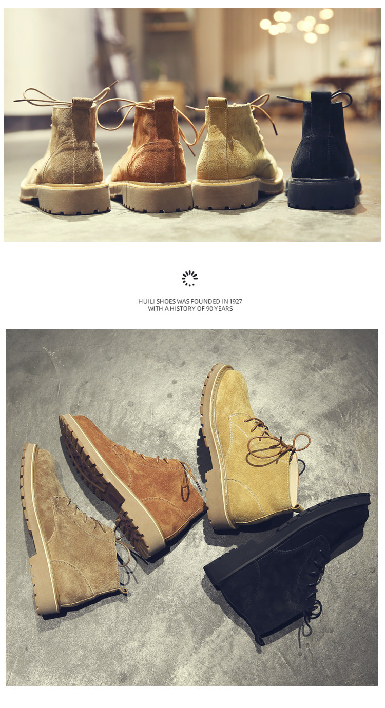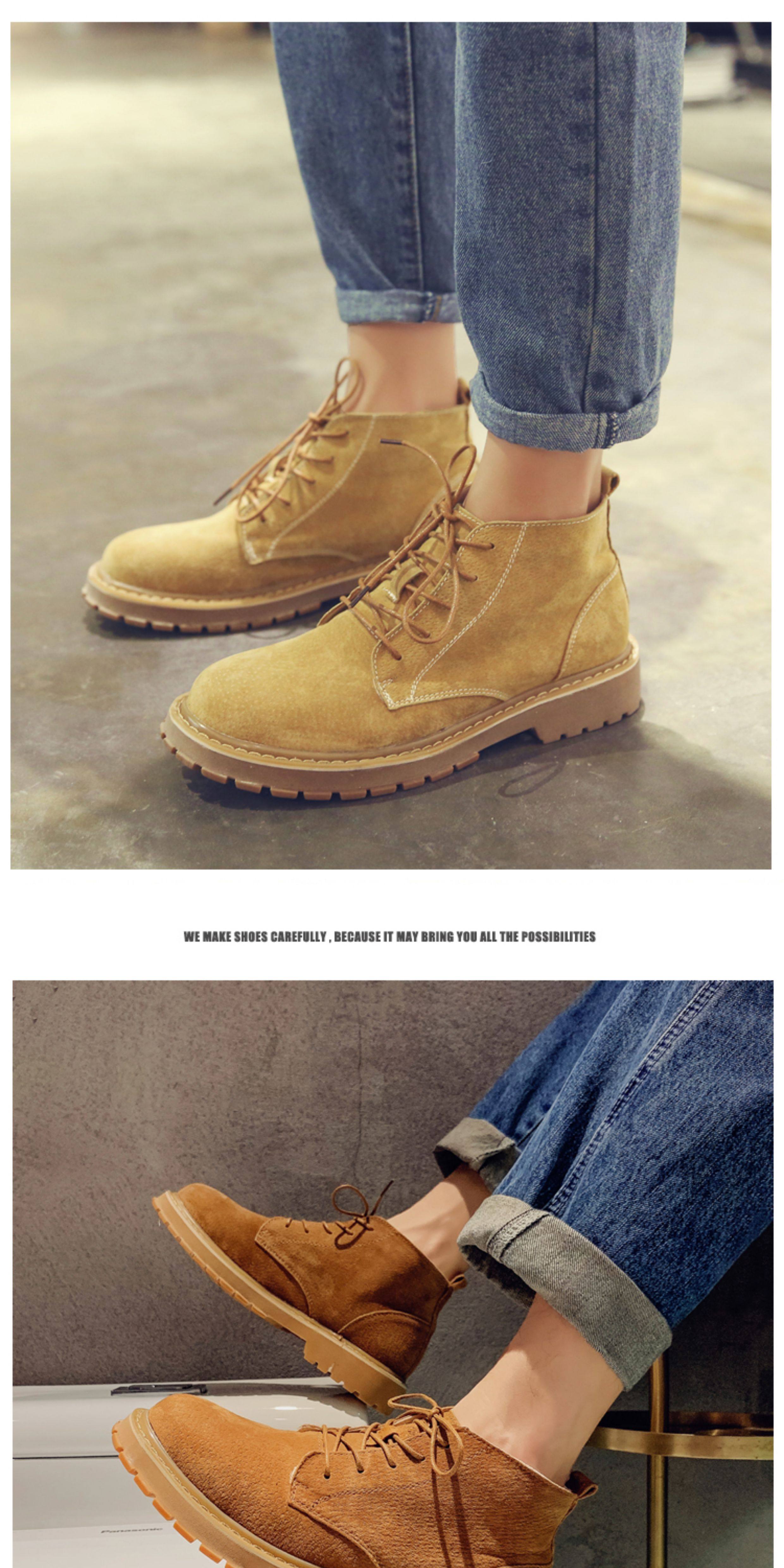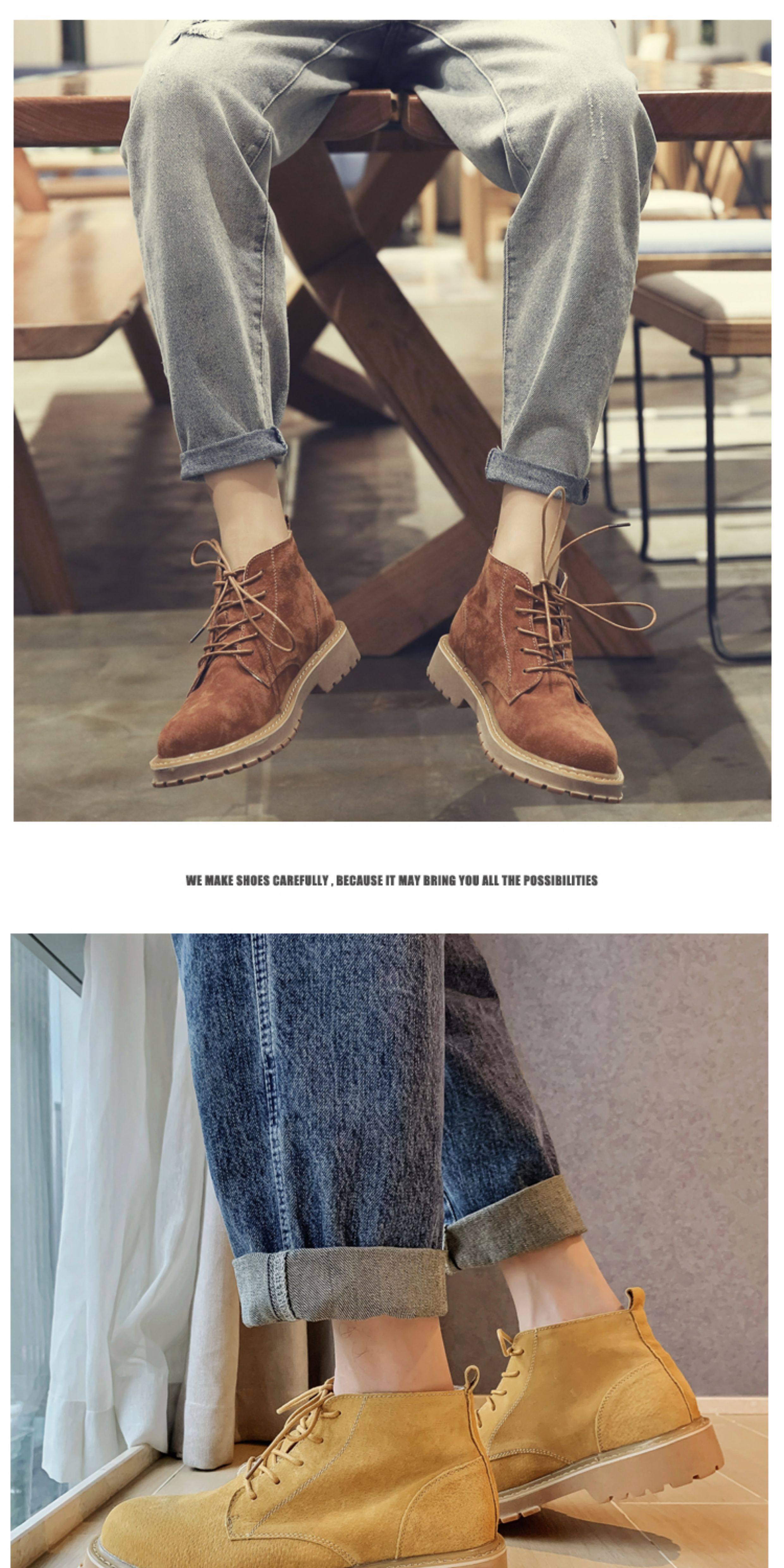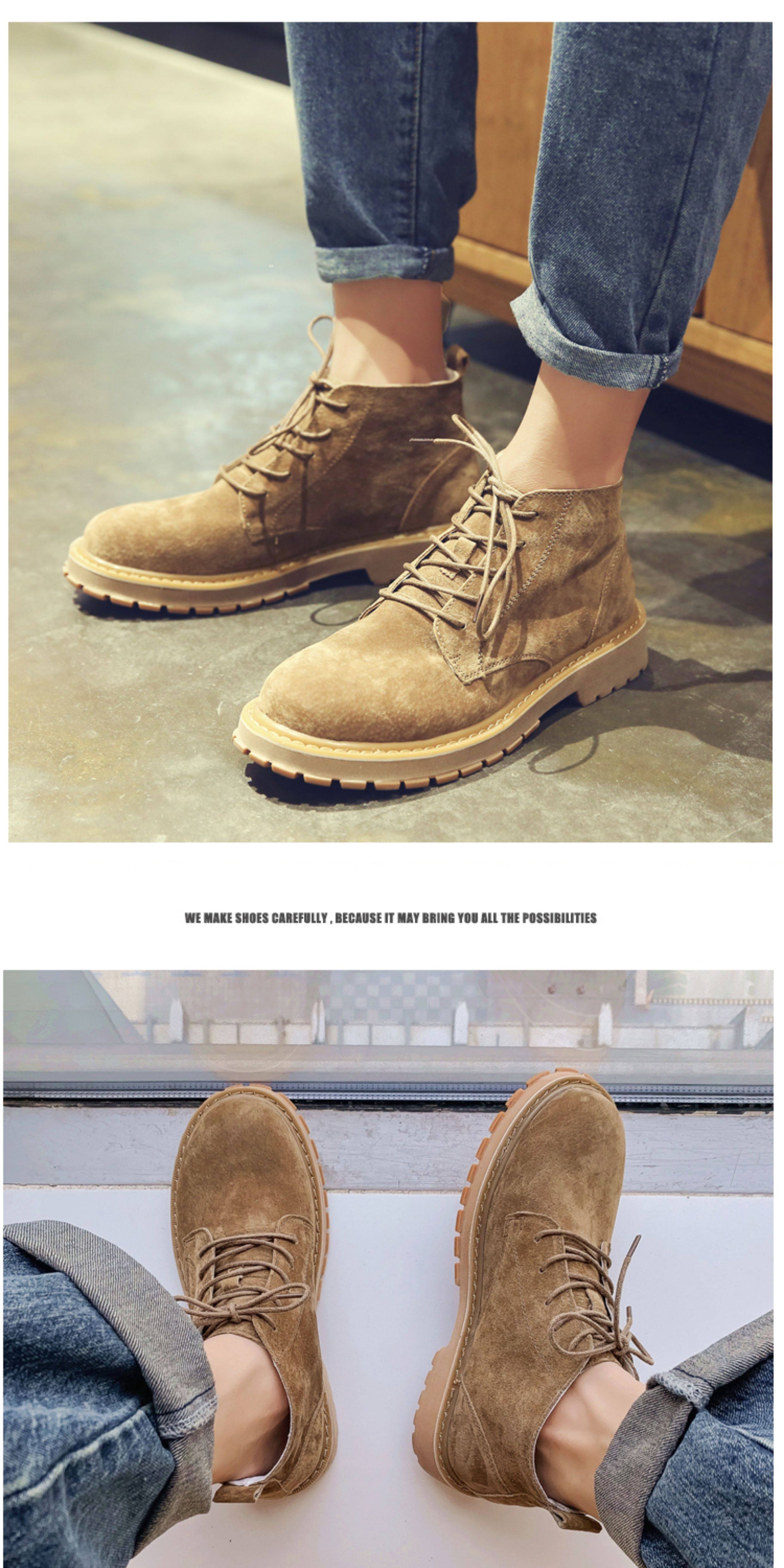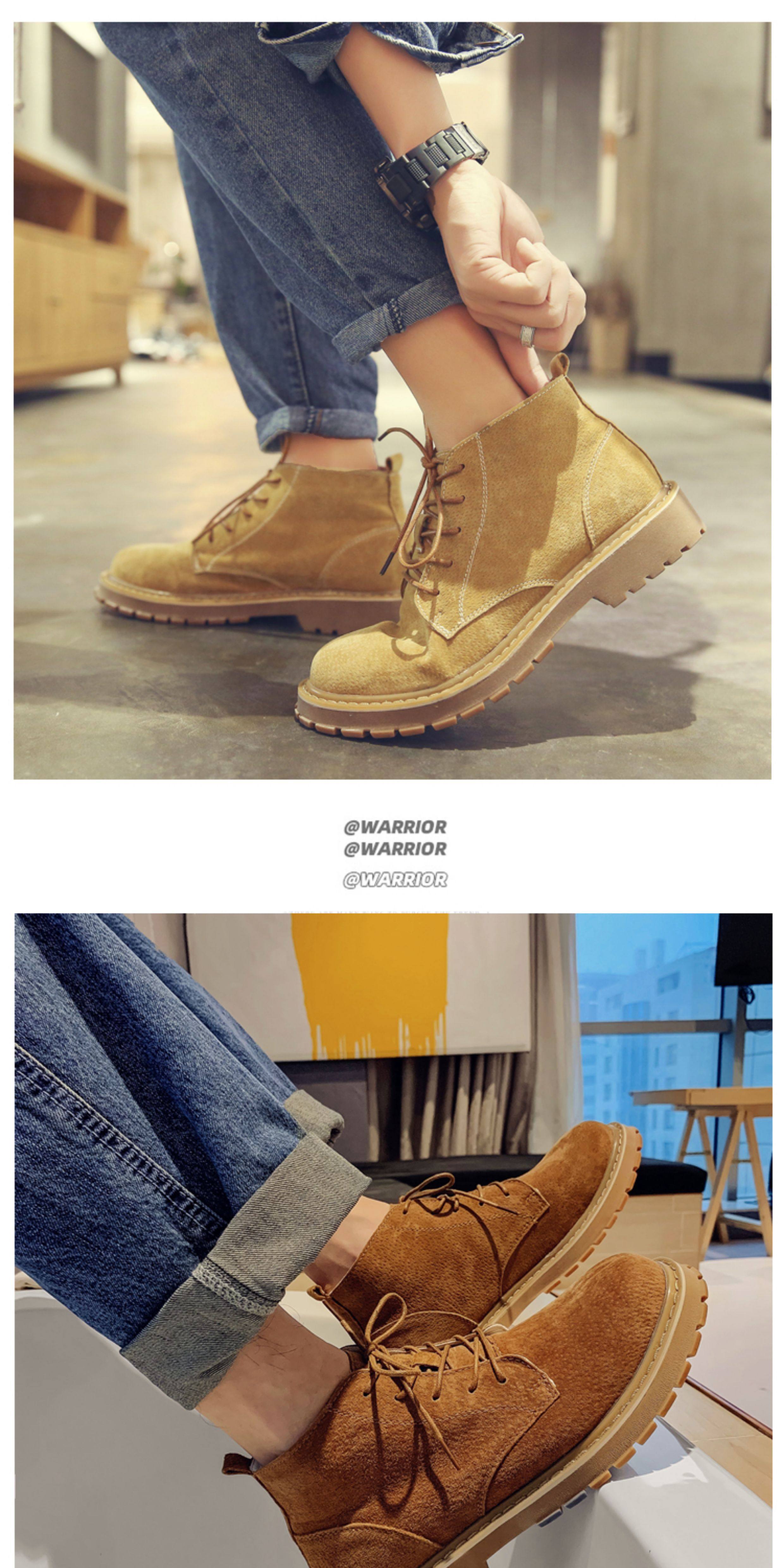 Martin Boots for Men, Winter High-Top Shoes with Plush Lining, British Style Genuine Leather, Korean Version, Retro Trendy Versatile Mid-Top Work Boots