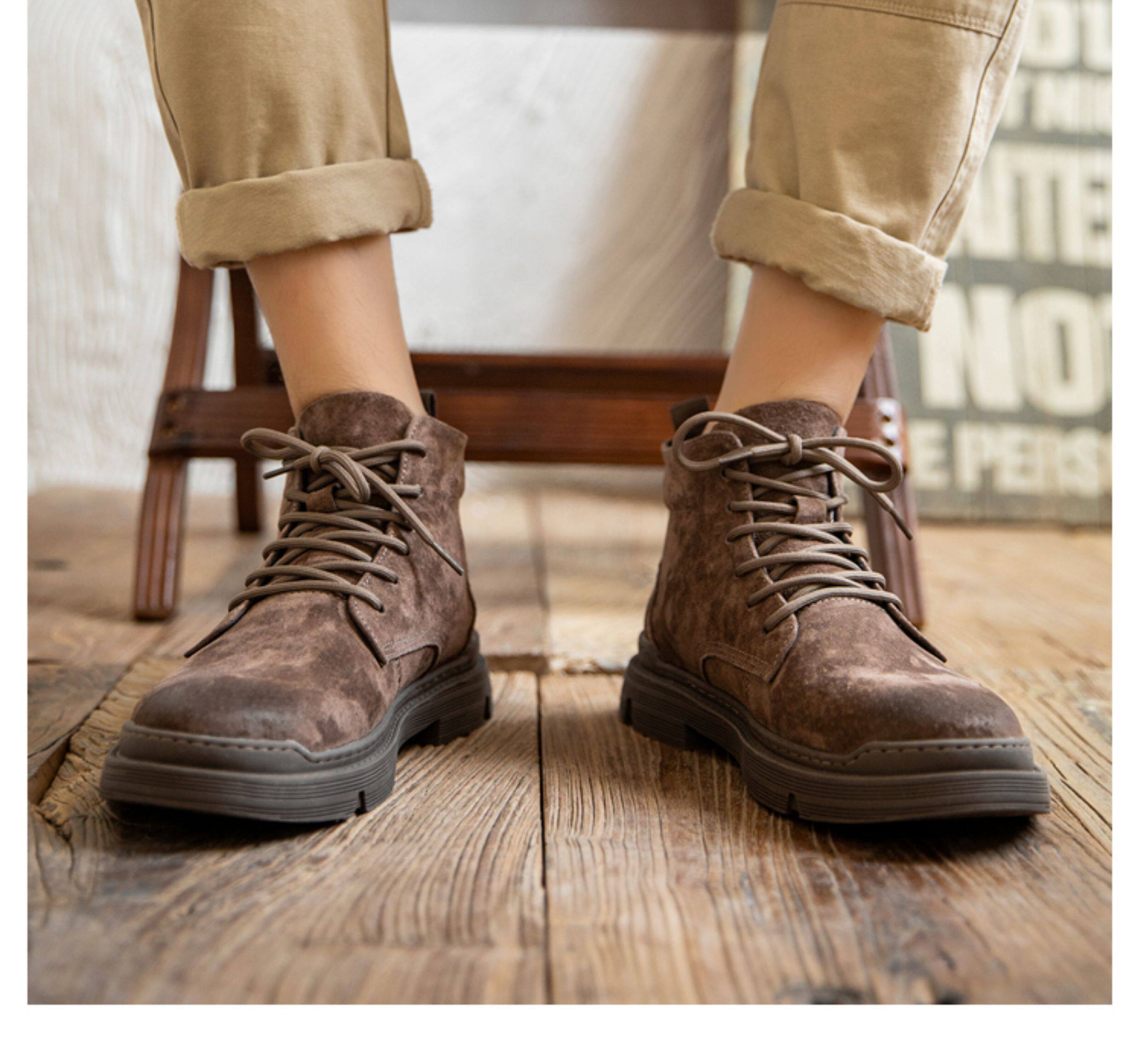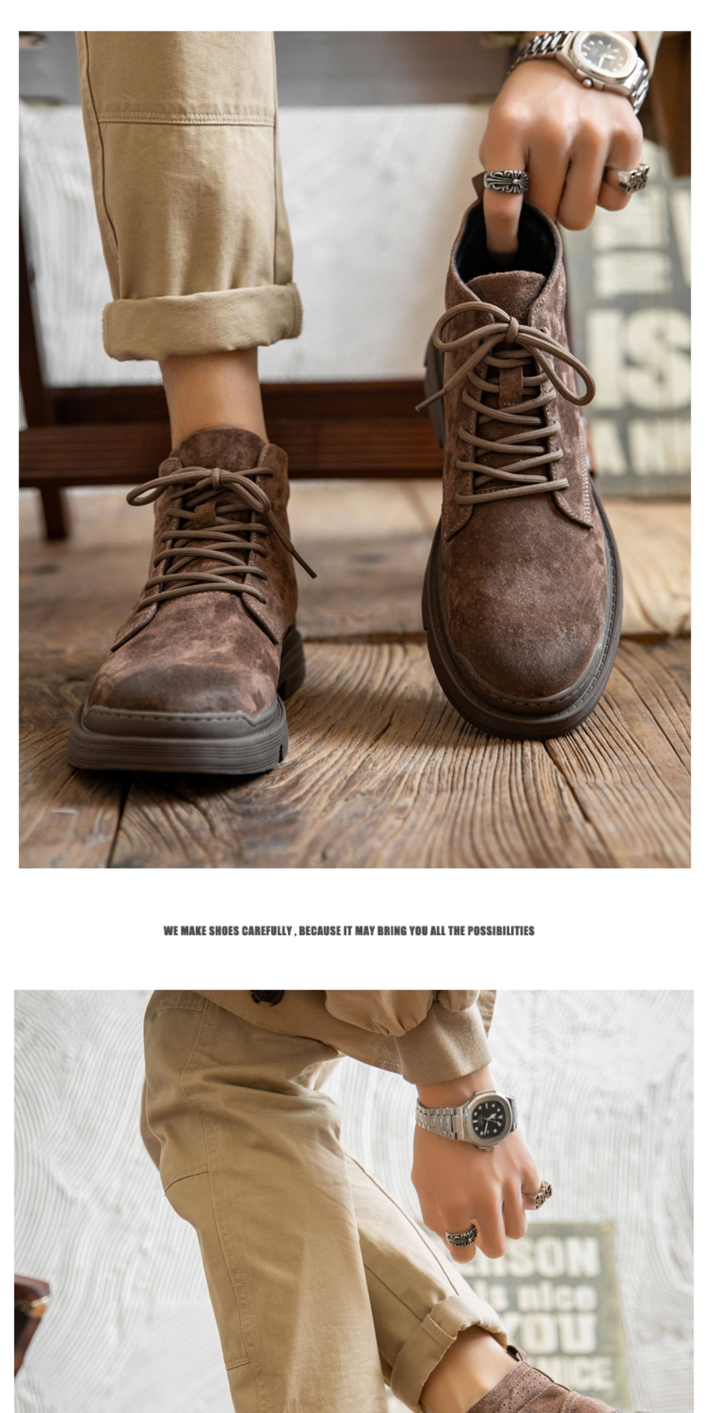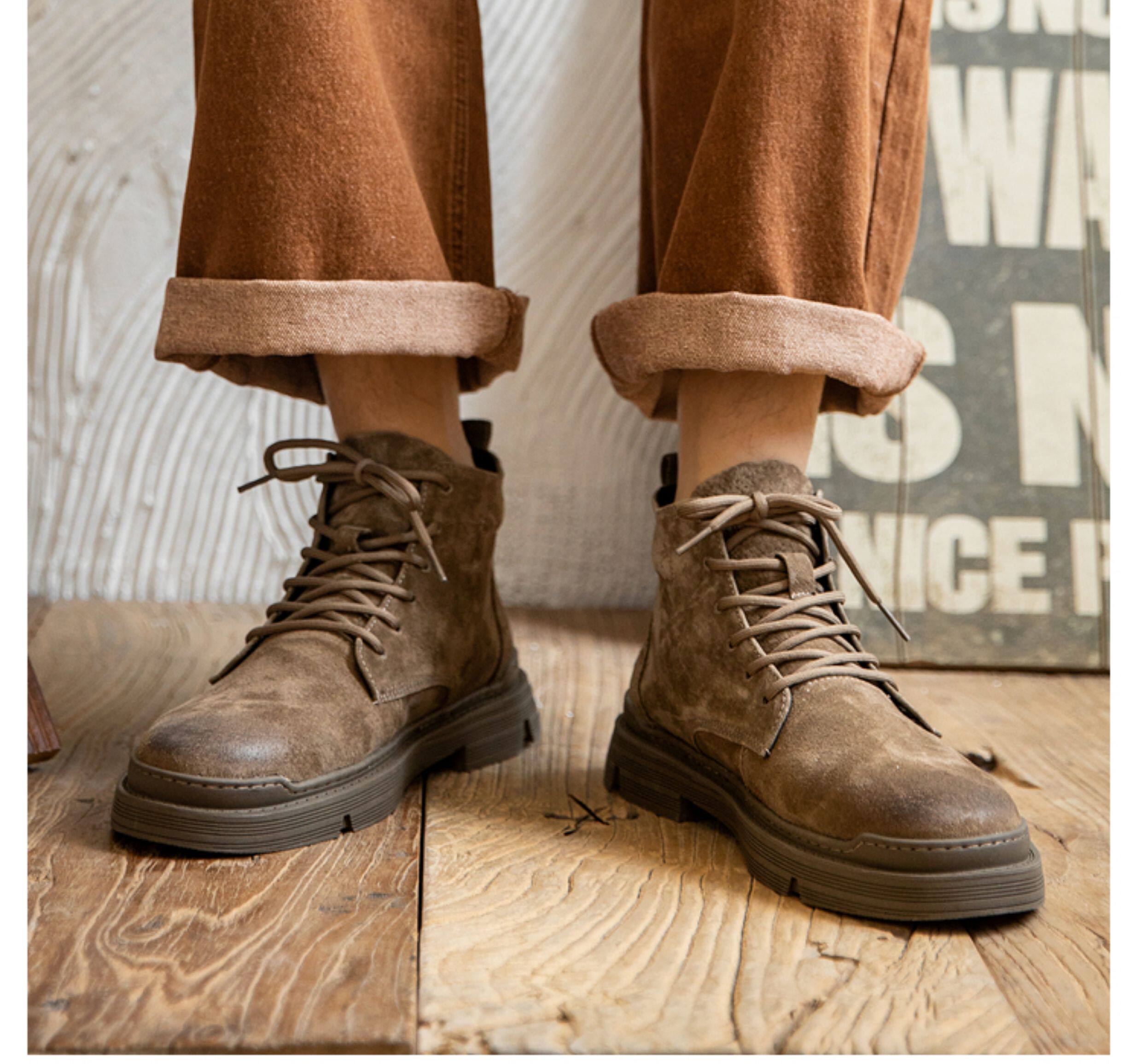 Martin Boots for Men, Winter High-Top Shoes with Fleece Lining, British Style, Genuine Leather, Trendy Mid-Top Retro Korean Style Versatile Work Boots