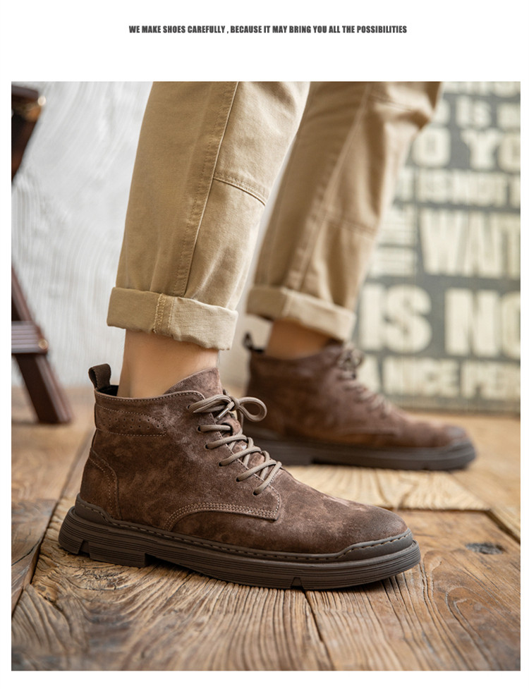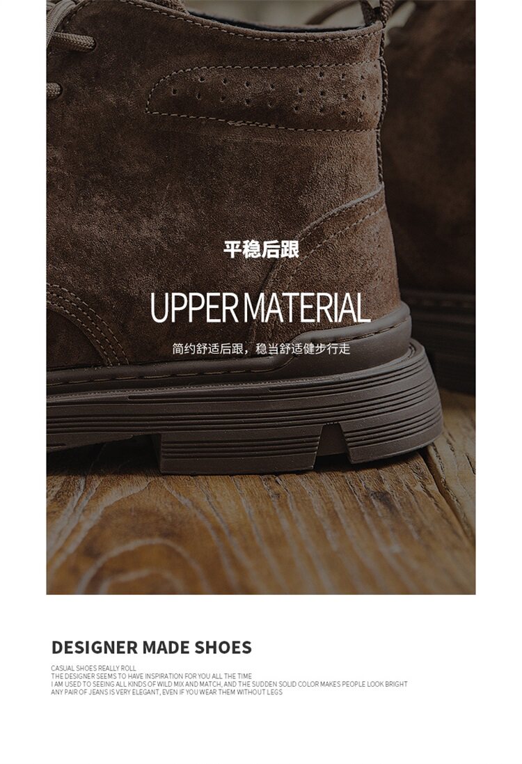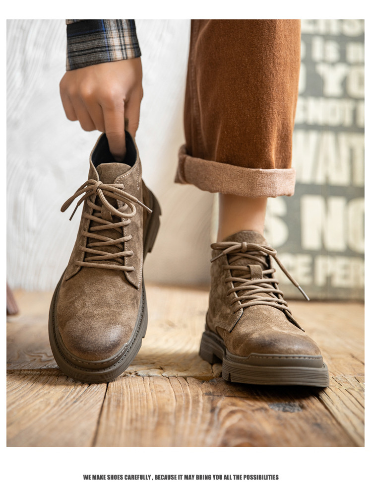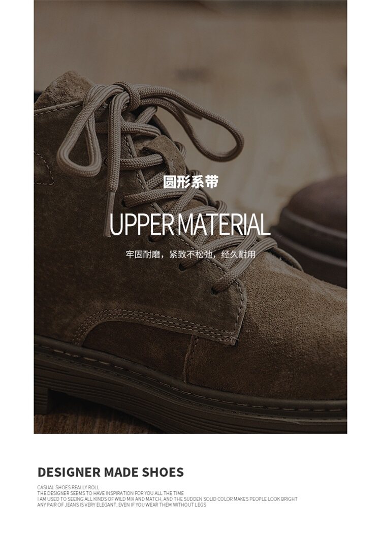 Martin Boots for Men, Winter High-Top Shoes with Fleece Lining, British Style, Genuine Leather, Trendy Mid-Top Retro Korean Style Versatile Work Boots