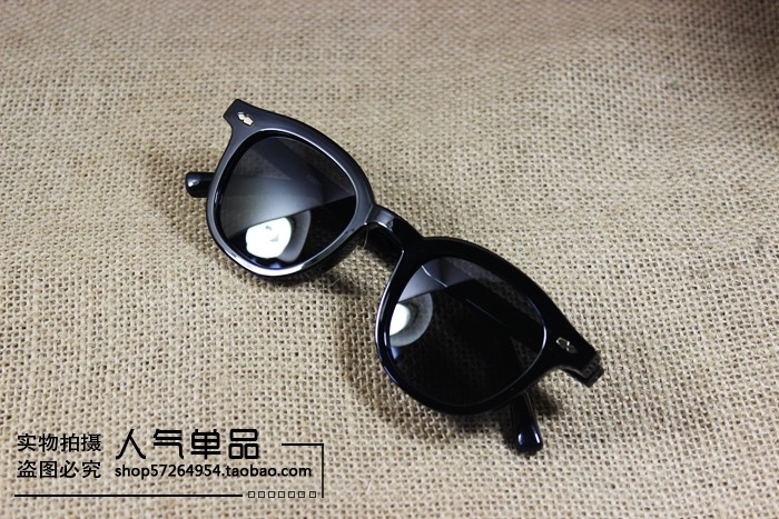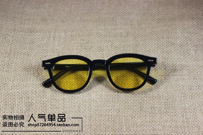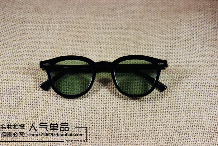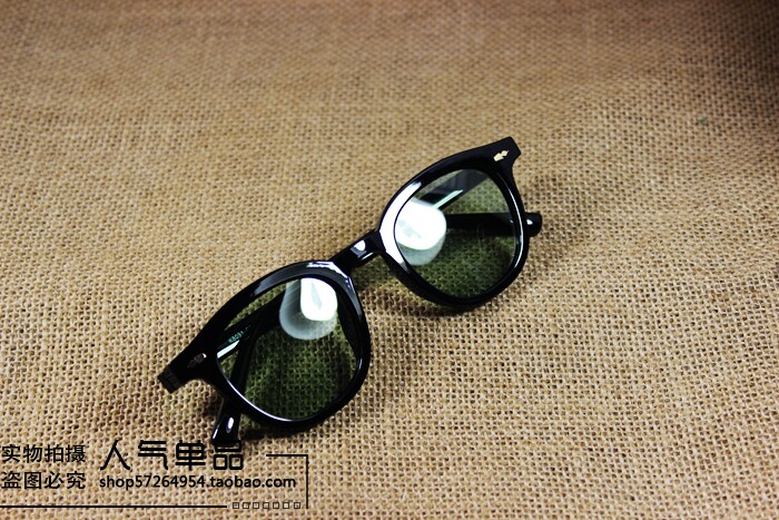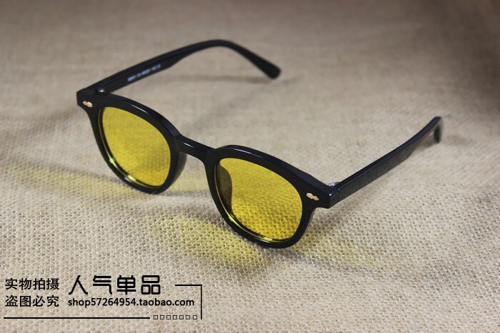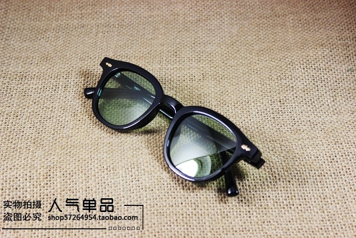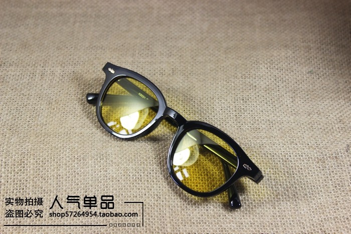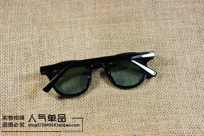 Vintage Japanese Retro Cool Black Frame Green-Yellow Lens Polarized Sunglasses Unisex Trendy Sunglasses