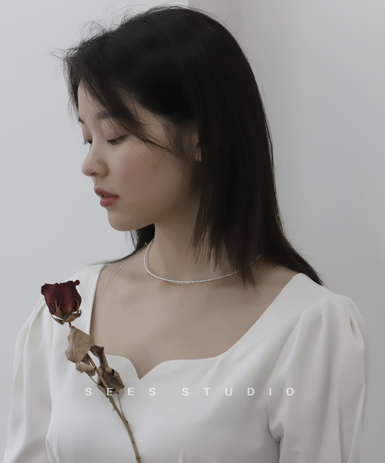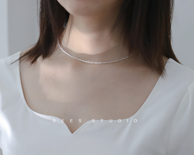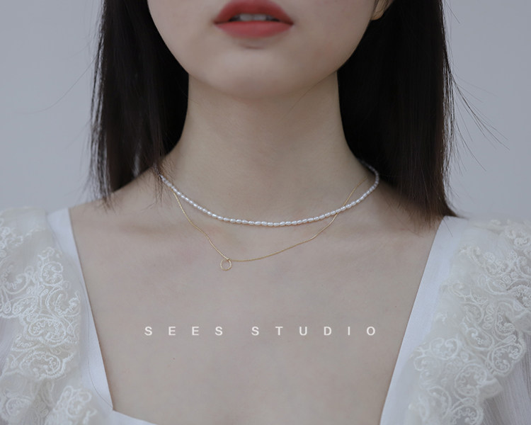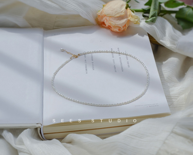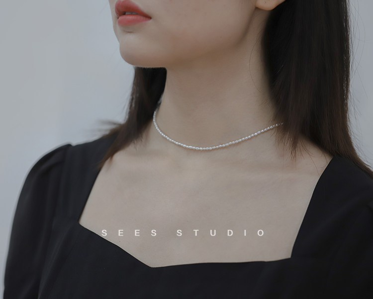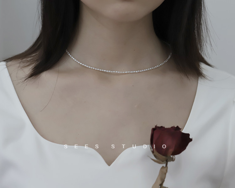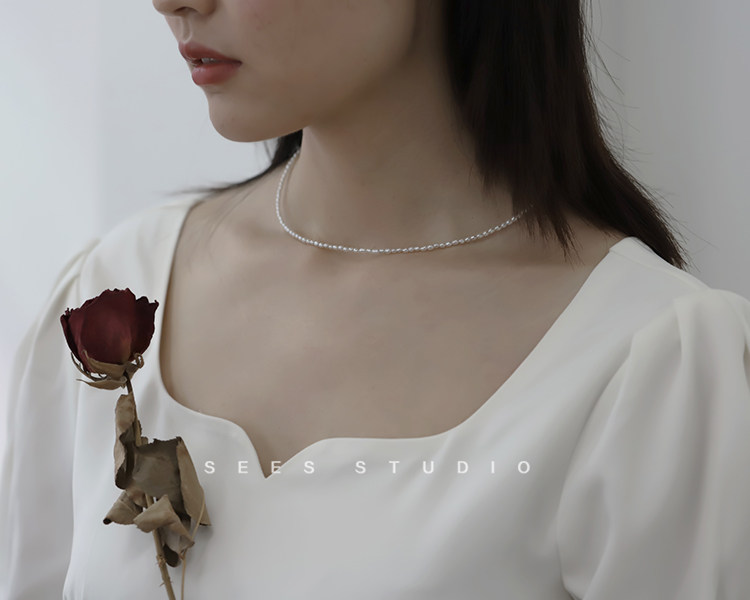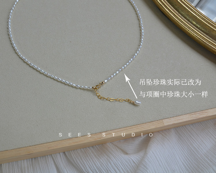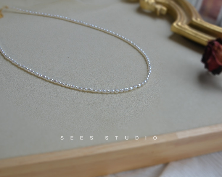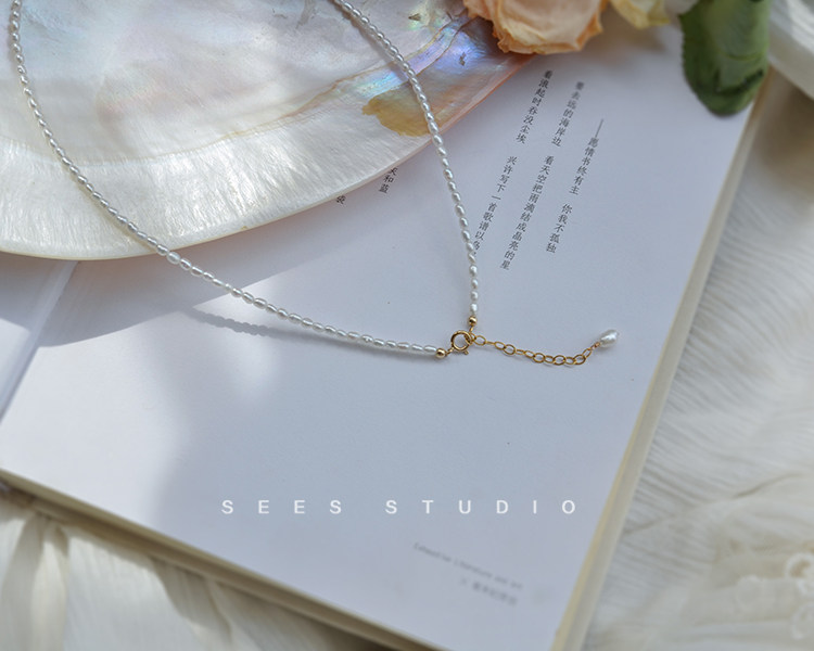 Millet grain natural freshwater pearl necklace ultra-fine ultra-fine retro clavicle chain young fashion/14k gold-filled
