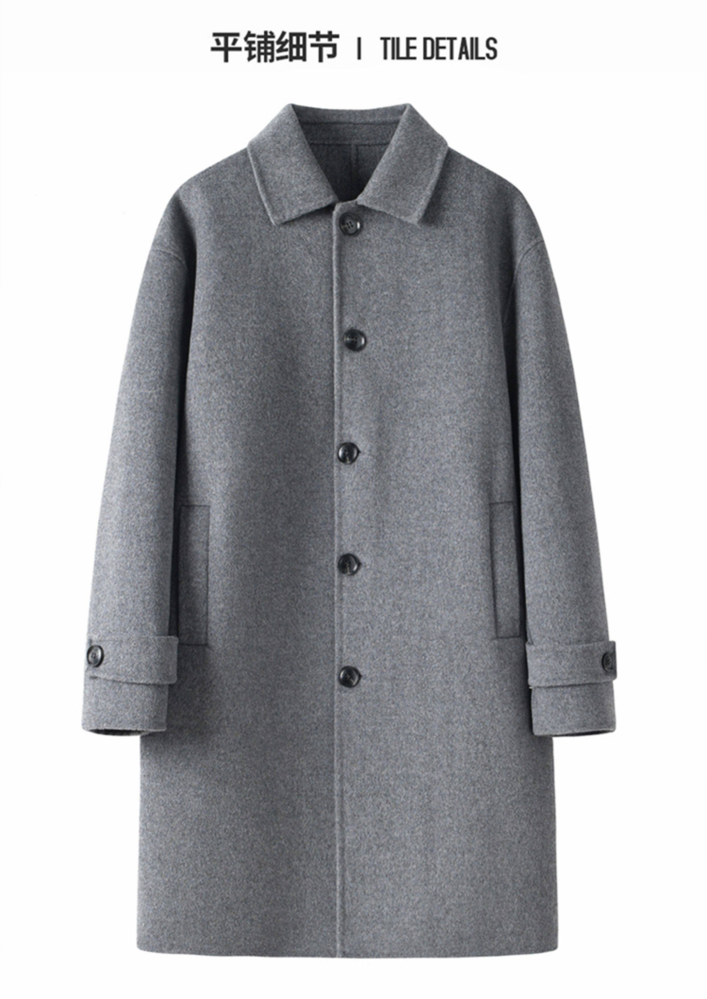Autumn and Winter New Style Lapel 100% Pure Wool Coat Men's Solid Color Double-Sided Woolen Mid-Length Business Casual Jacket