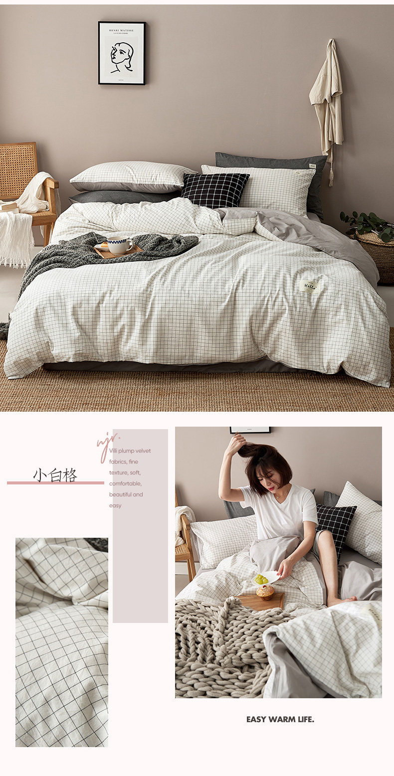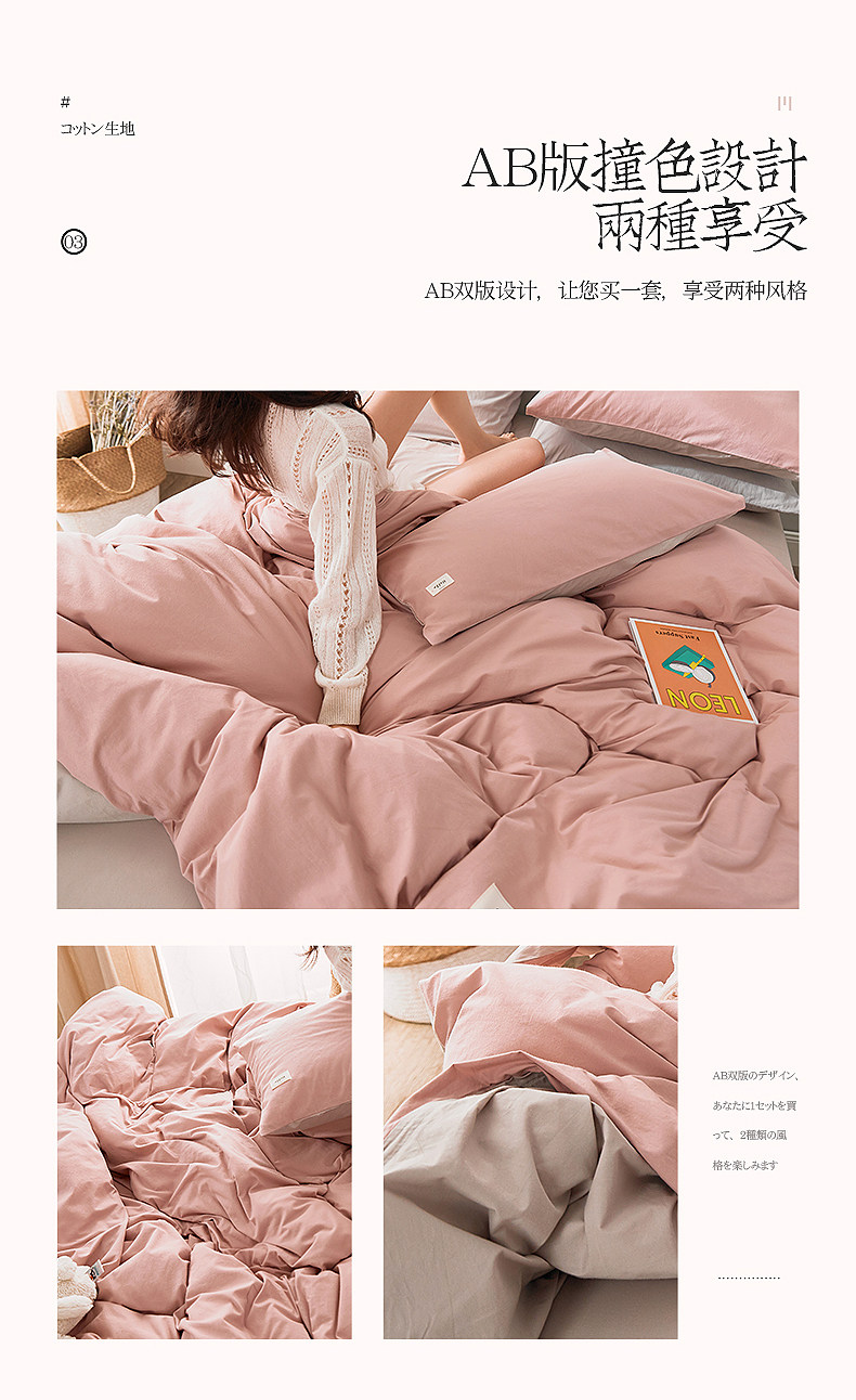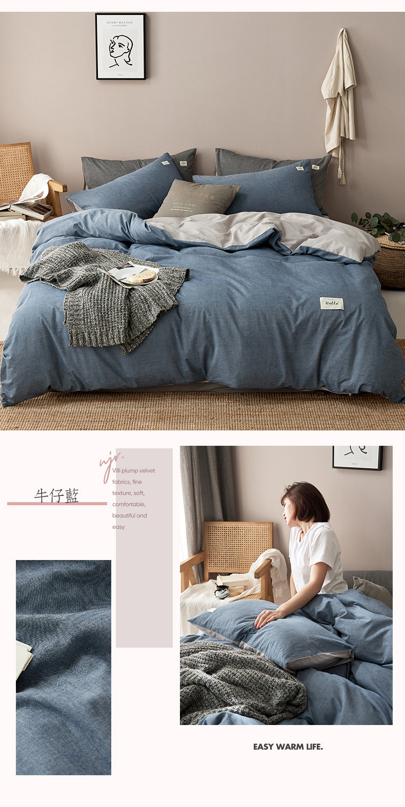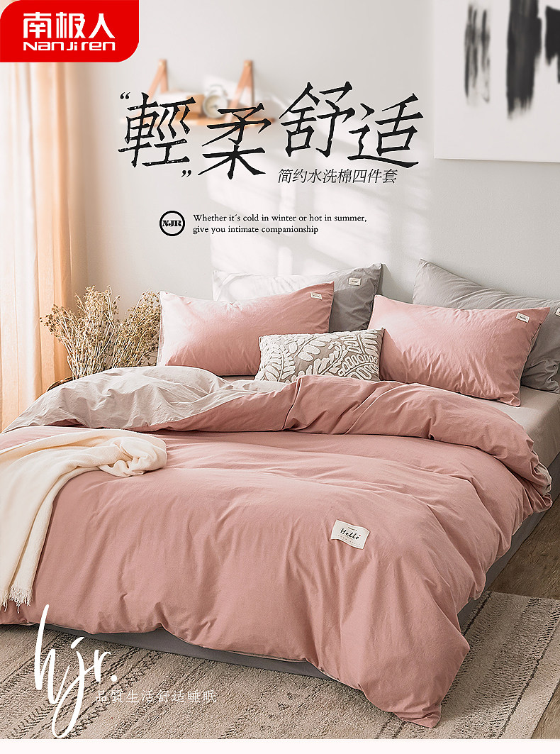 Pure cotton bed four-piece set, pure cotton 100 washed cotton quilt cover, fitted sheet, three-piece bed sheet set, bedding Nordic 4