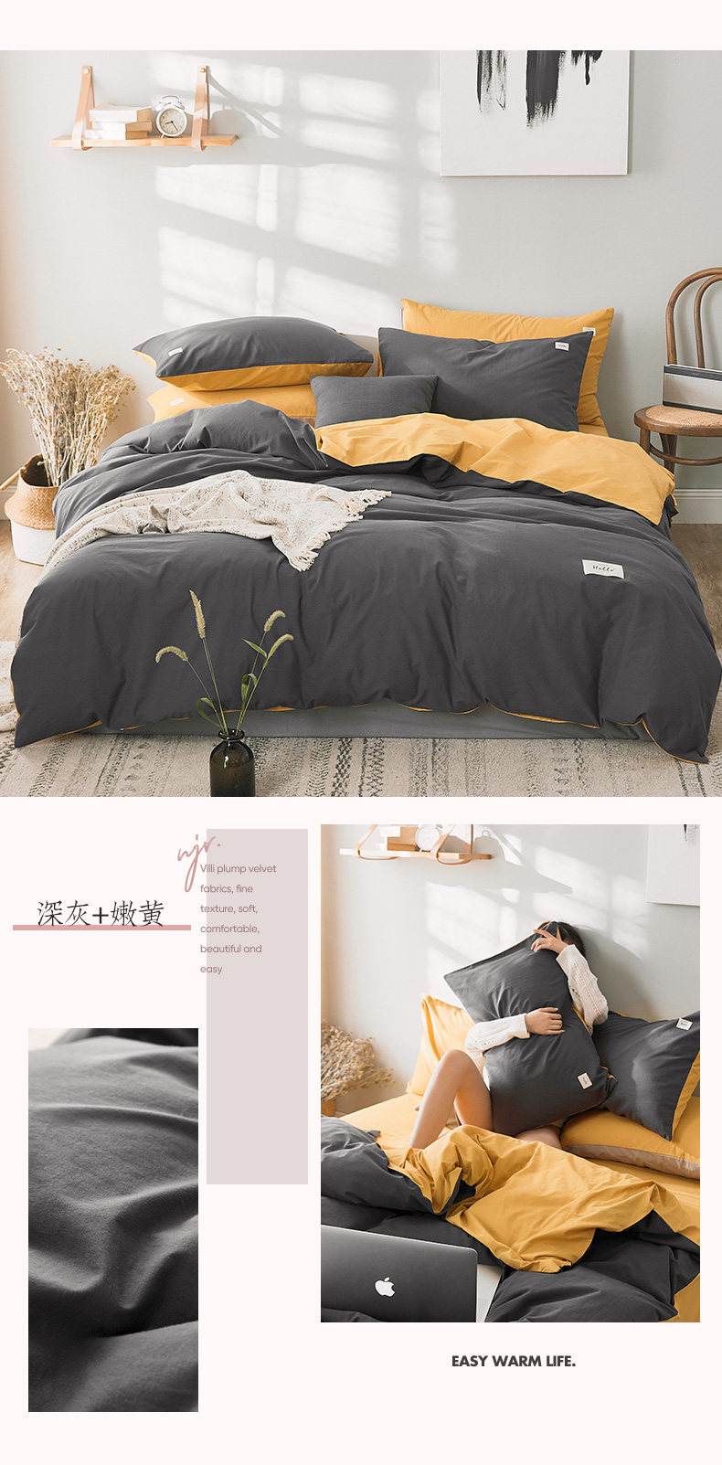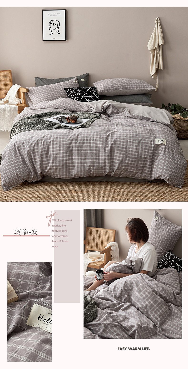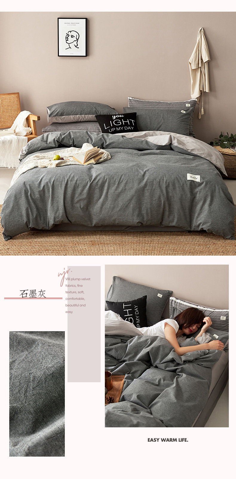 Pure cotton bed four-piece set, pure cotton 100 washed cotton quilt cover, fitted sheet, three-piece bed sheet set, bedding Nordic 4