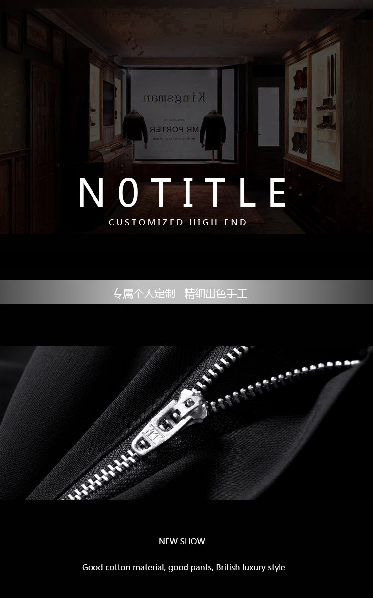 高定进口微弹面料手工款轻奢微正装小直筒西裤显瘦修身男士休闲裤
