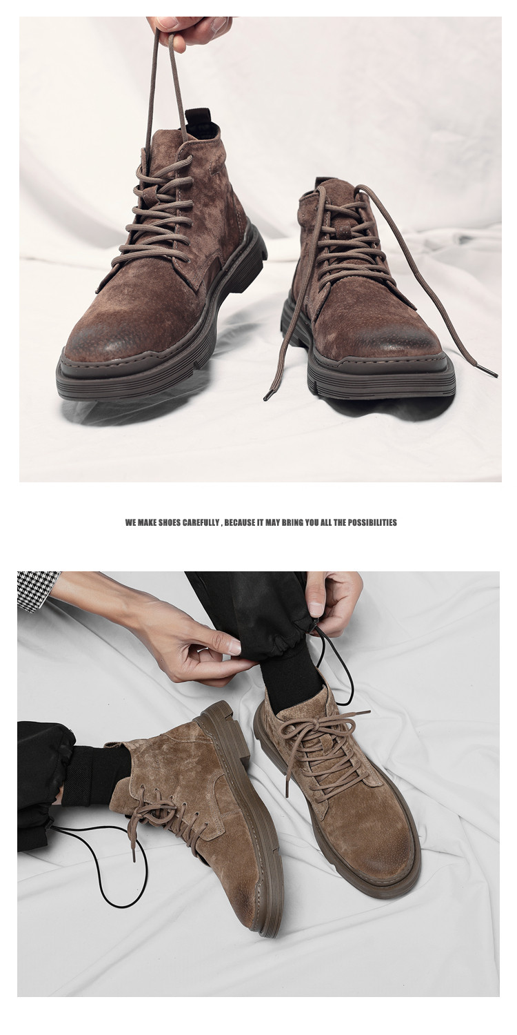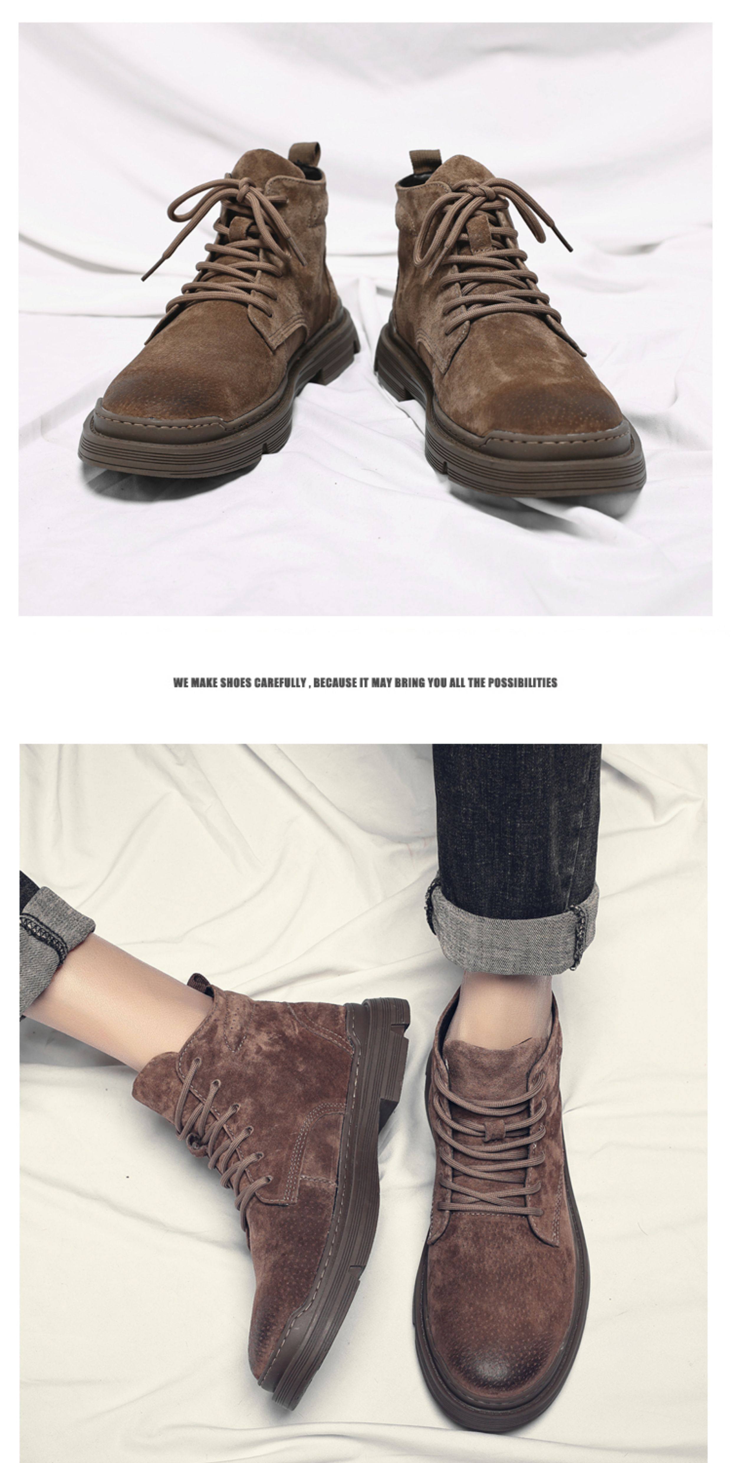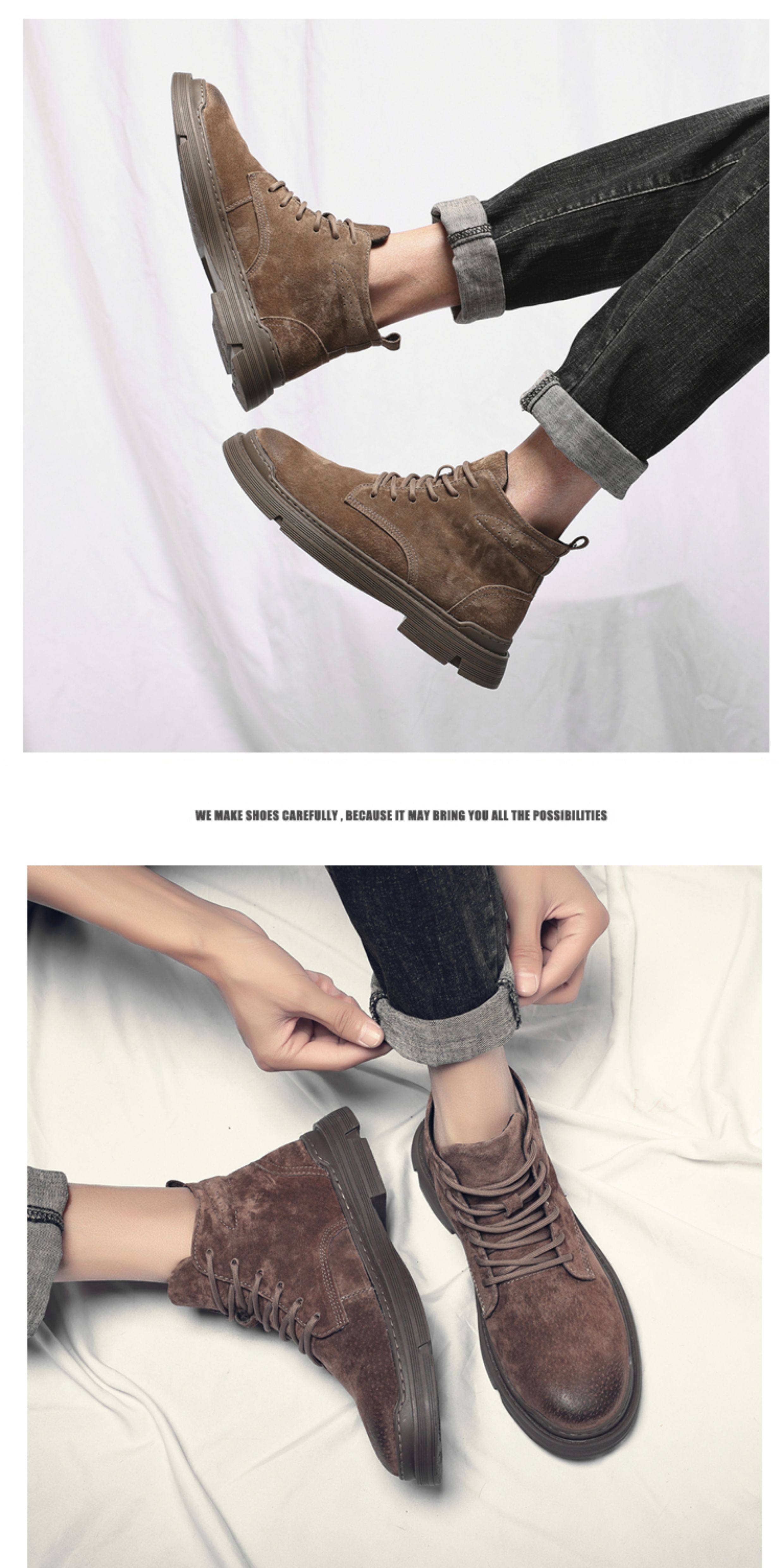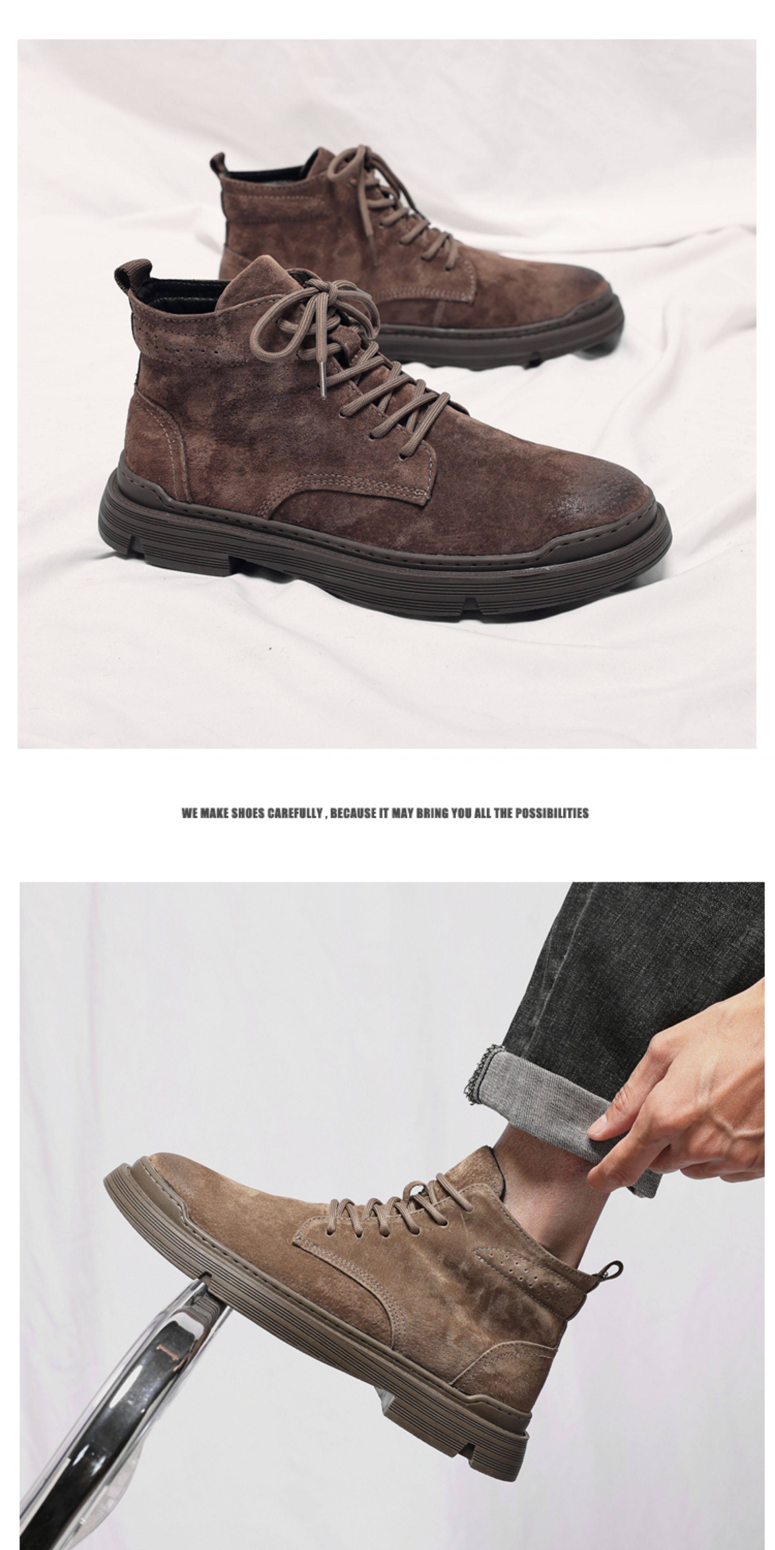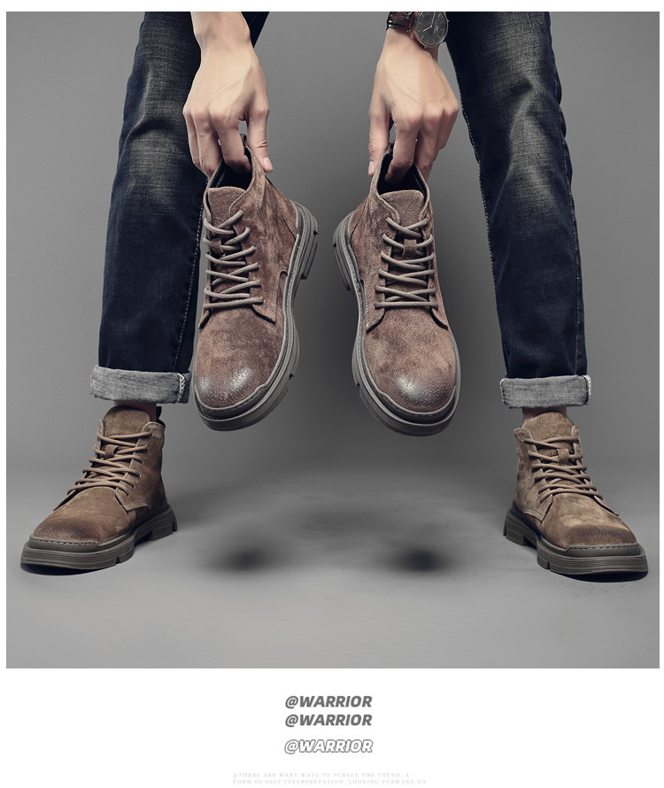 Martin Boots for Men, Winter High-Top Shoes, Trendy British Style Short Boots, Versatile Fleece-Lined Korean Style Genuine Leather Snow Work Boots