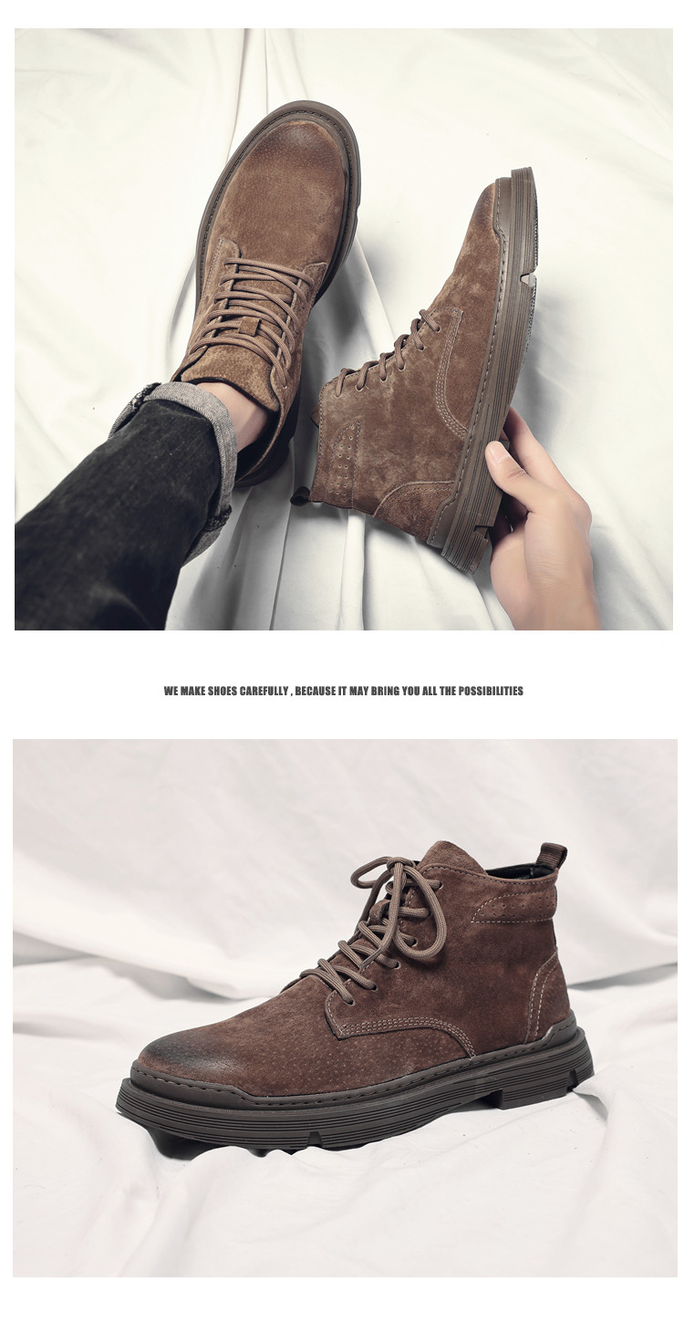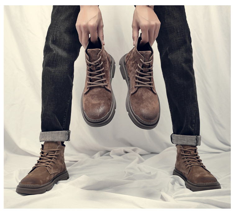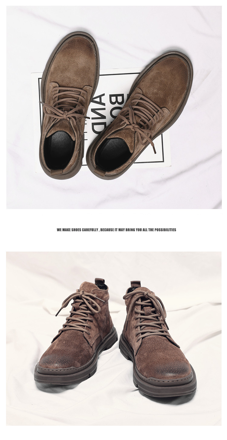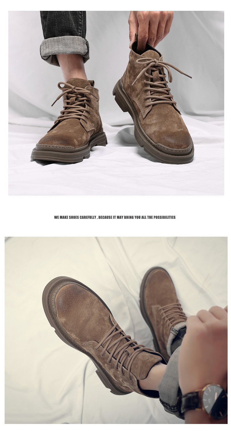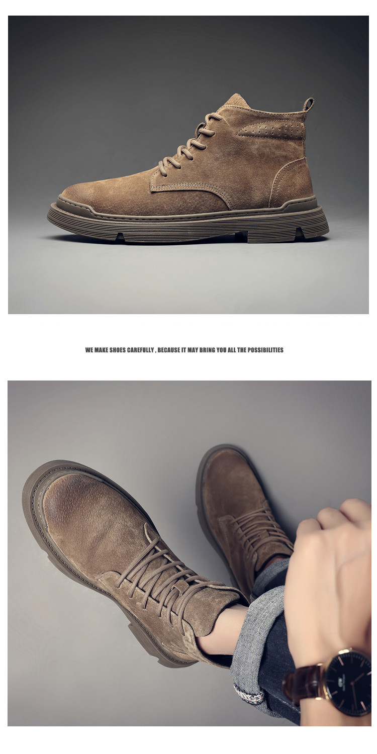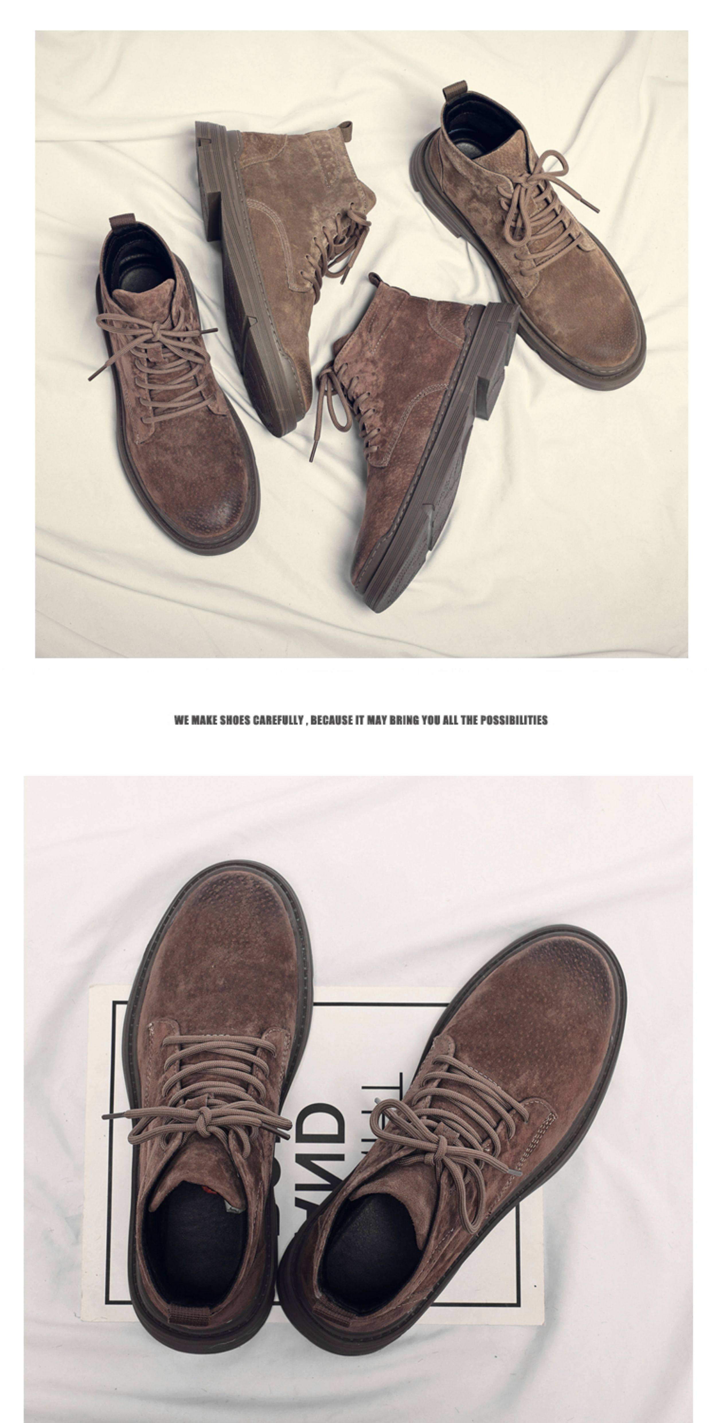 Martin Boots for Men, Winter High-Top Shoes, Trendy British Style Short Boots, Versatile Fleece-Lined Korean Style Genuine Leather Snow Work Boots