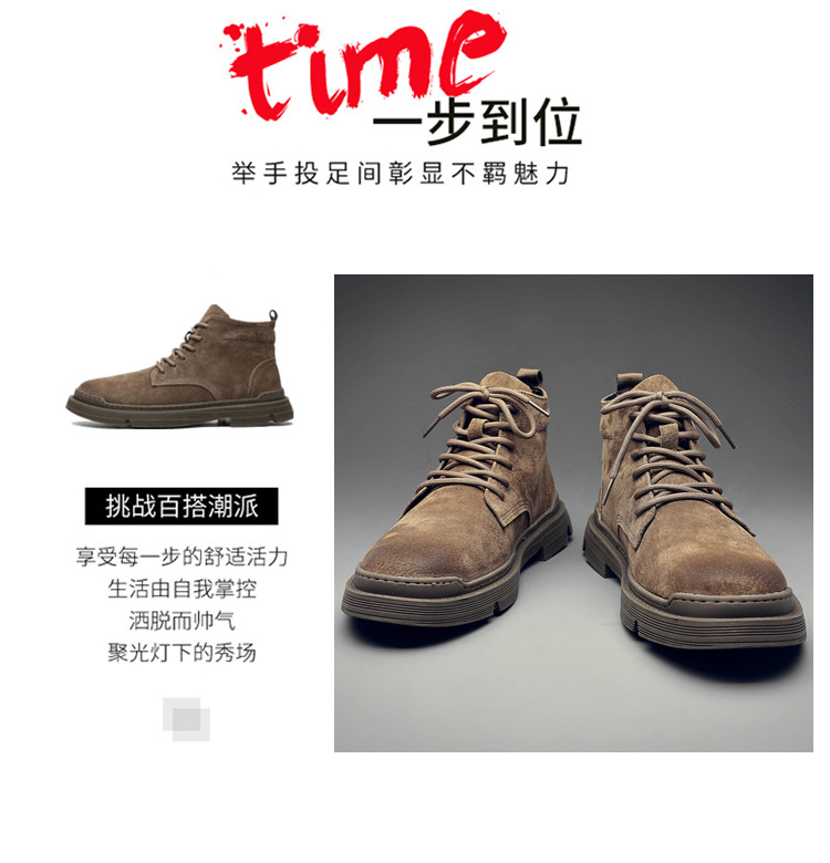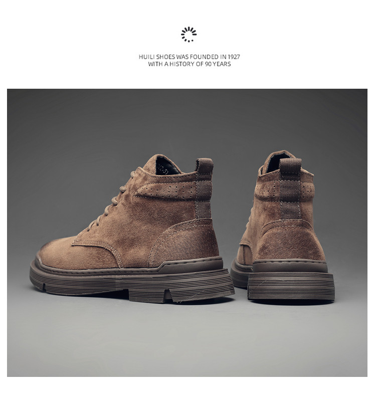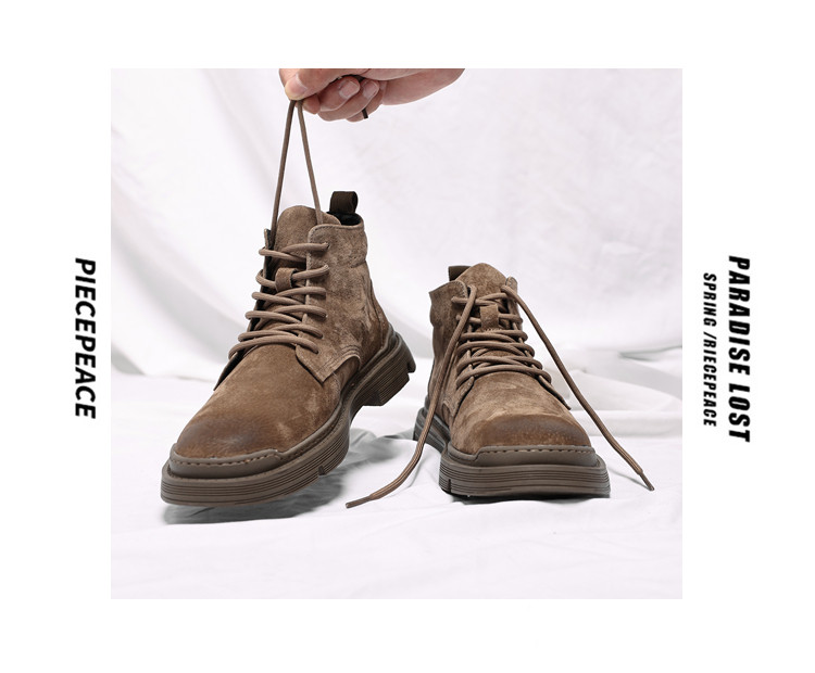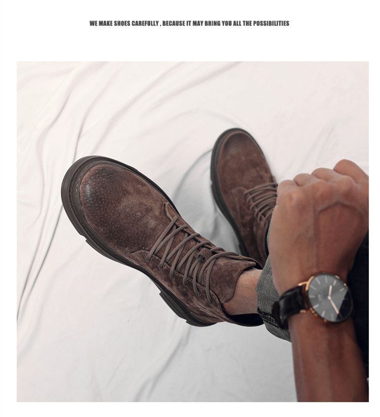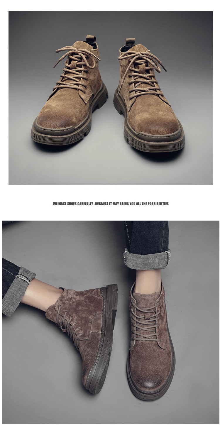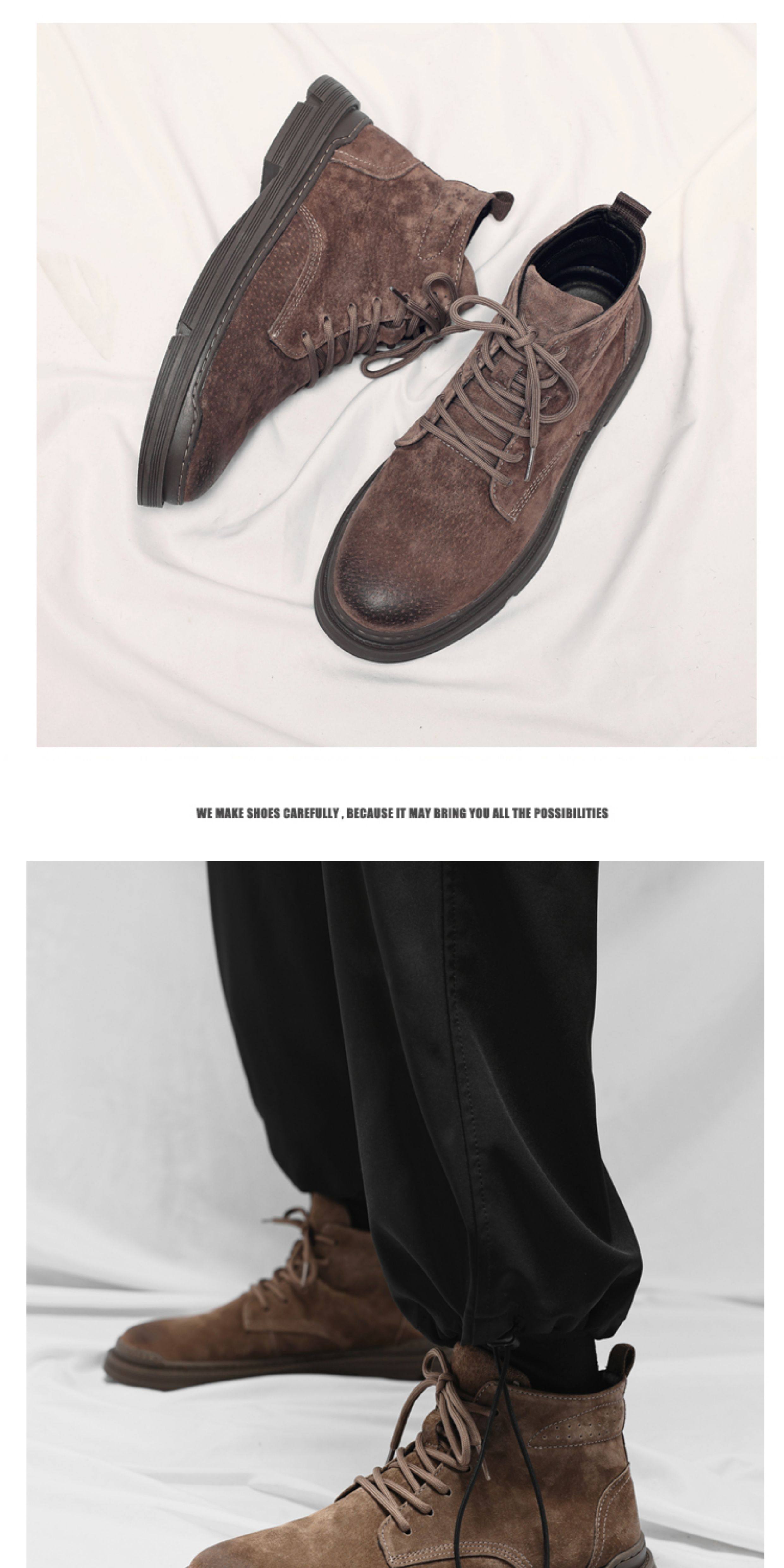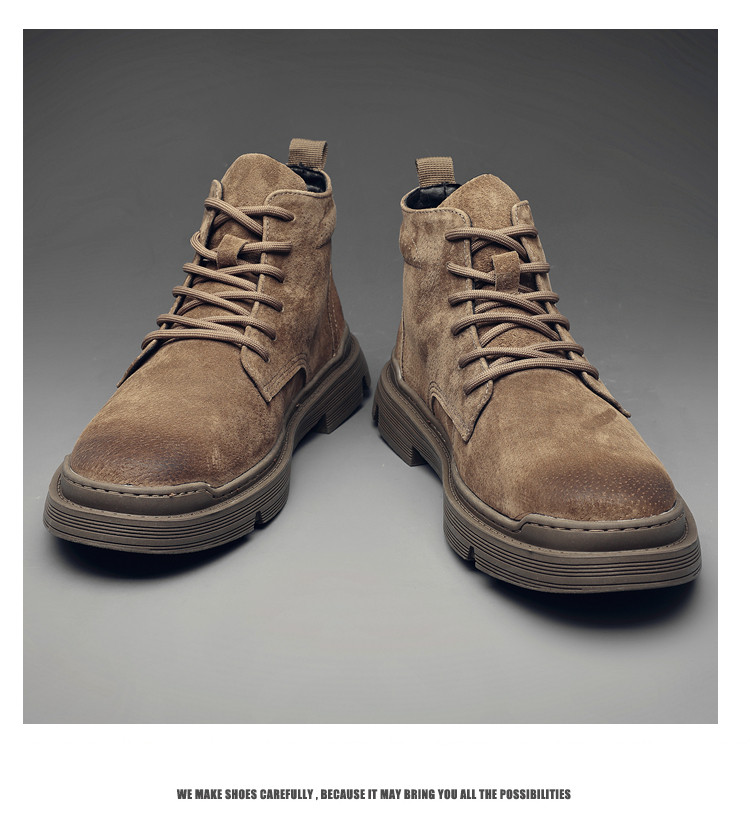 Martin Boots for Men, Winter High-Top Shoes, Trendy British Style Short Boots, Versatile Fleece-Lined Korean Style Genuine Leather Snow Work Boots