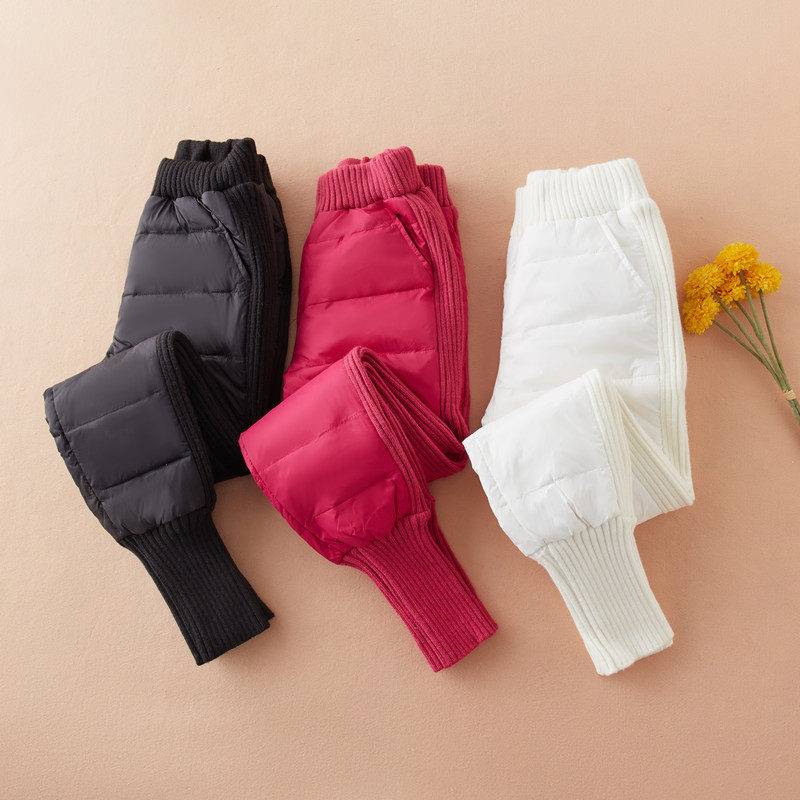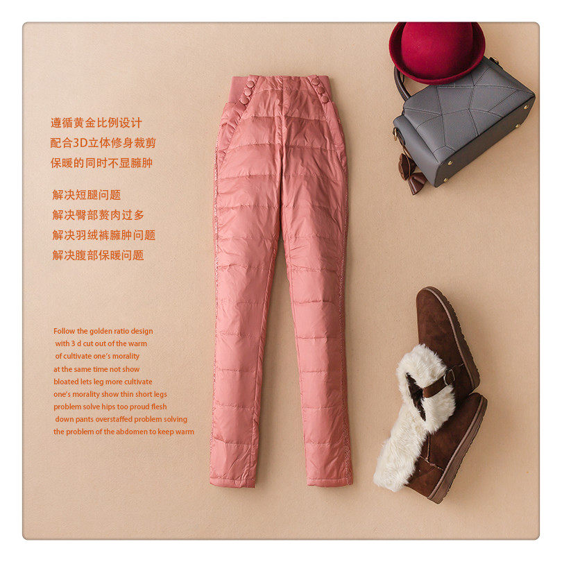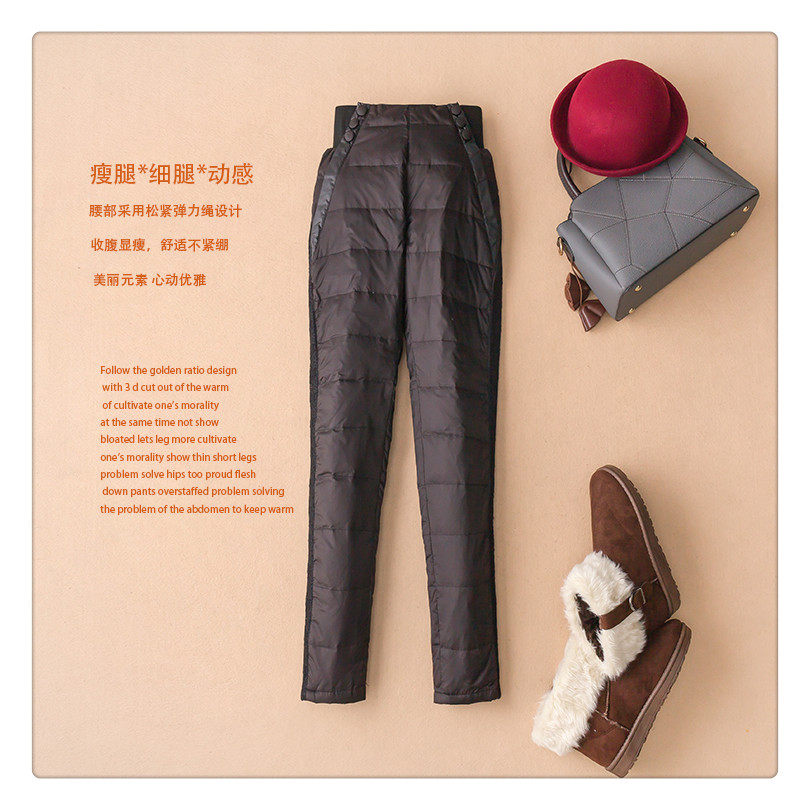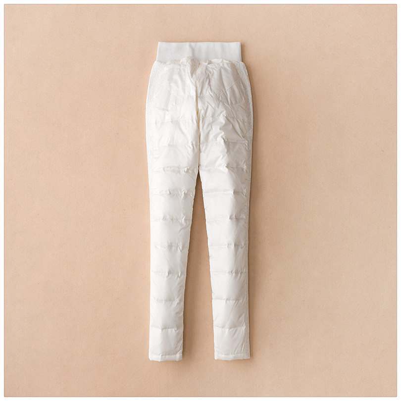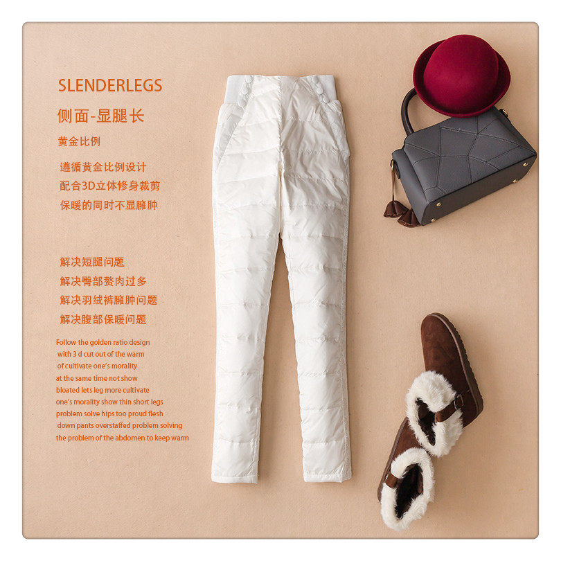European Station High Waist Down Pants Women's Outerwear Stretch Slim Thick White Duck Down Cotton Pants 2024 Winter Women