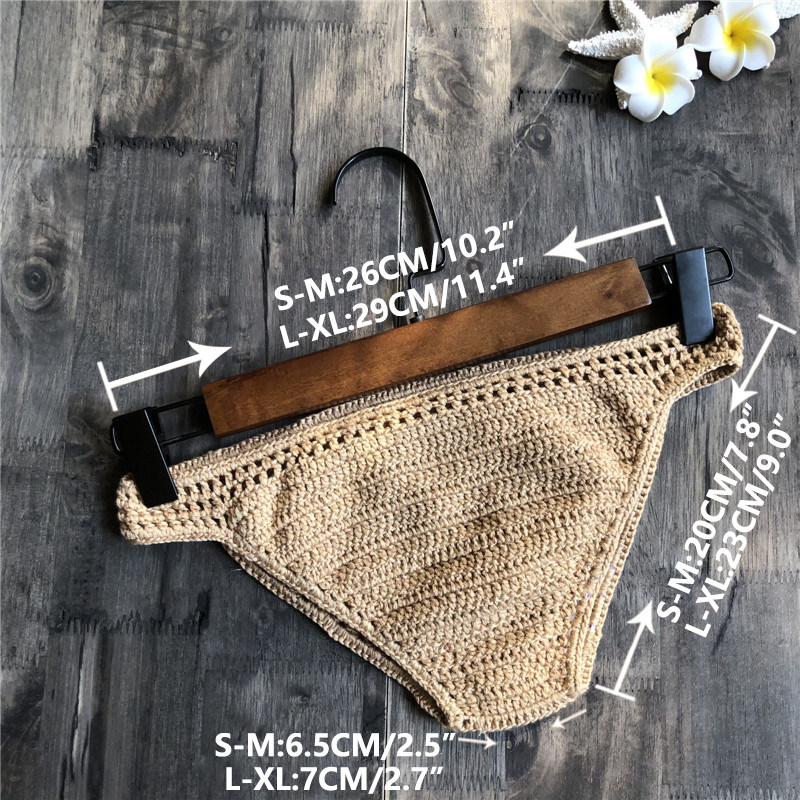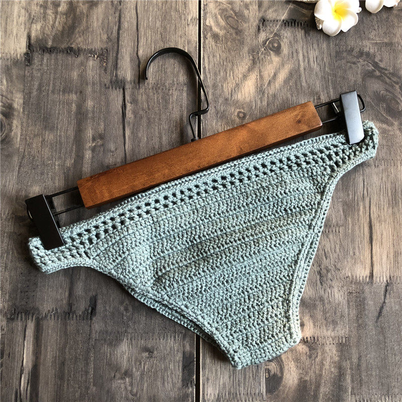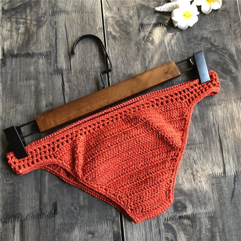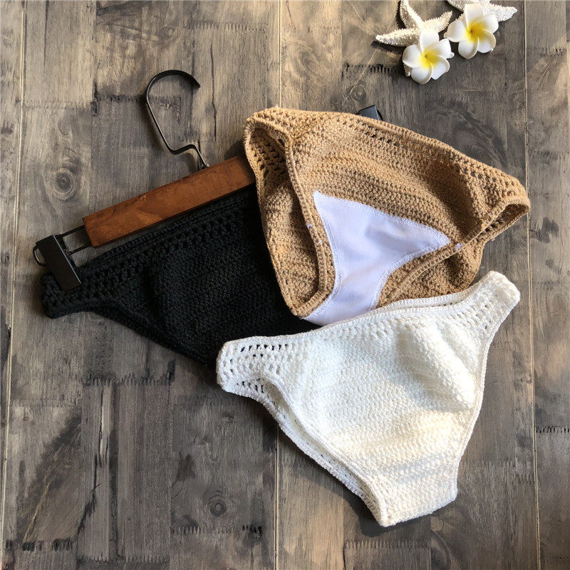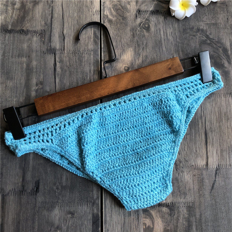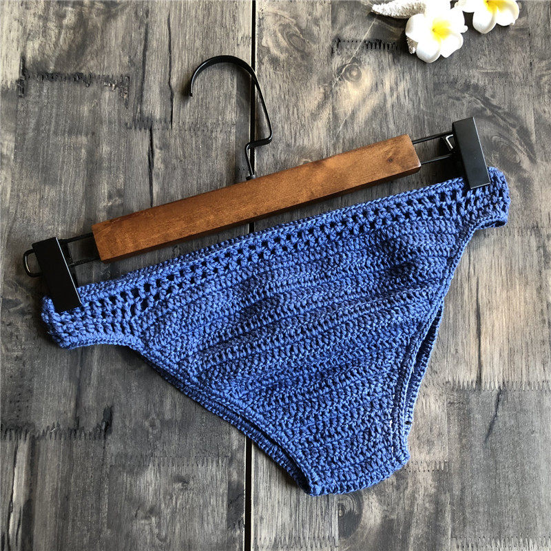Trendy Handmade Pure Cotton Triangle Shorts Beach Bikini Solid Color Swim Trunks