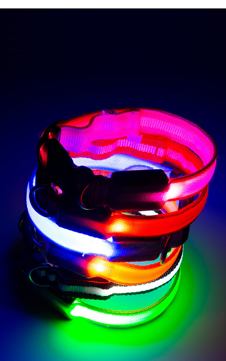 Dog luminous collar multi-color optional LED rechargeable anti-lost dog tag size ring universal Teddy Golden Retriever