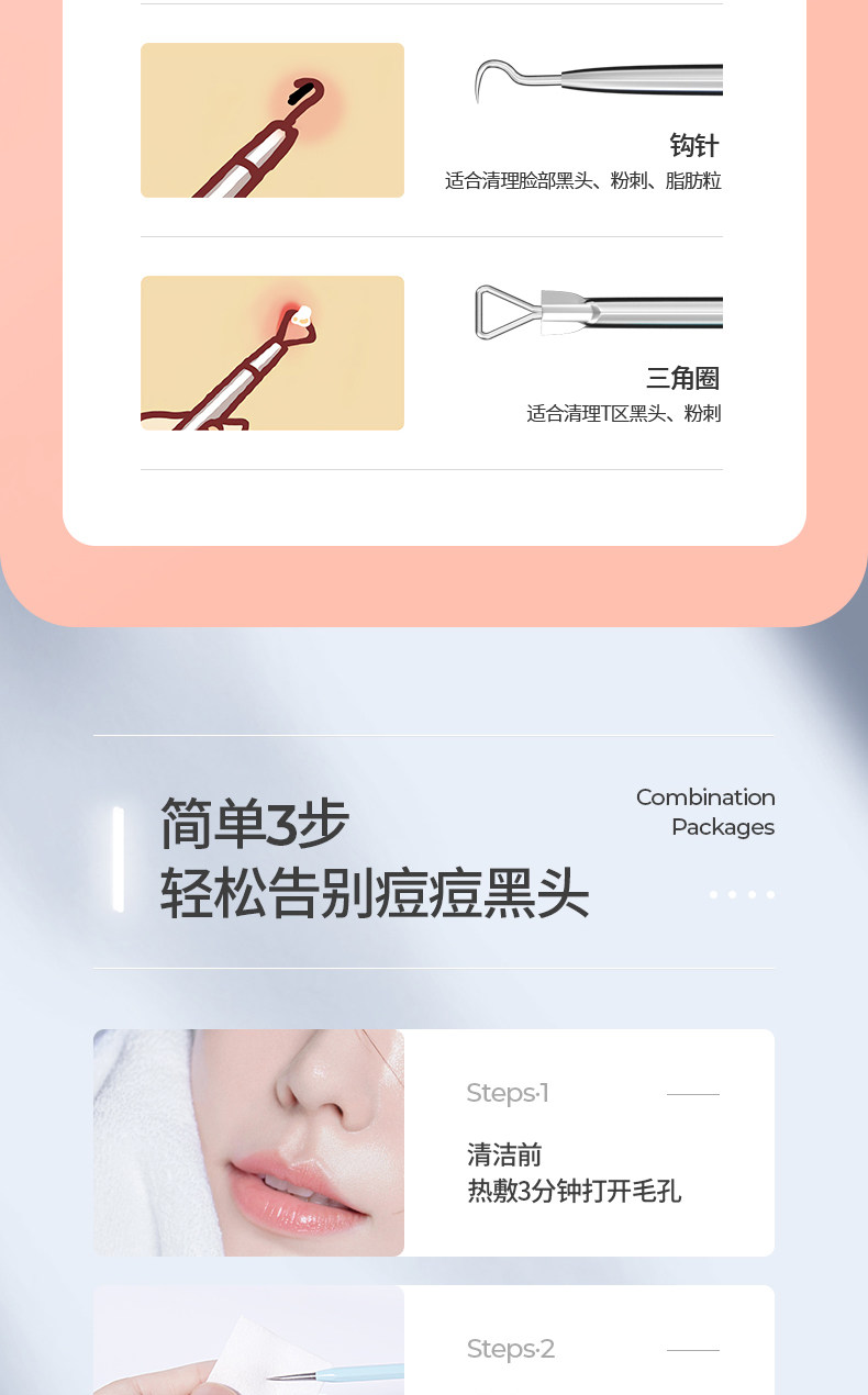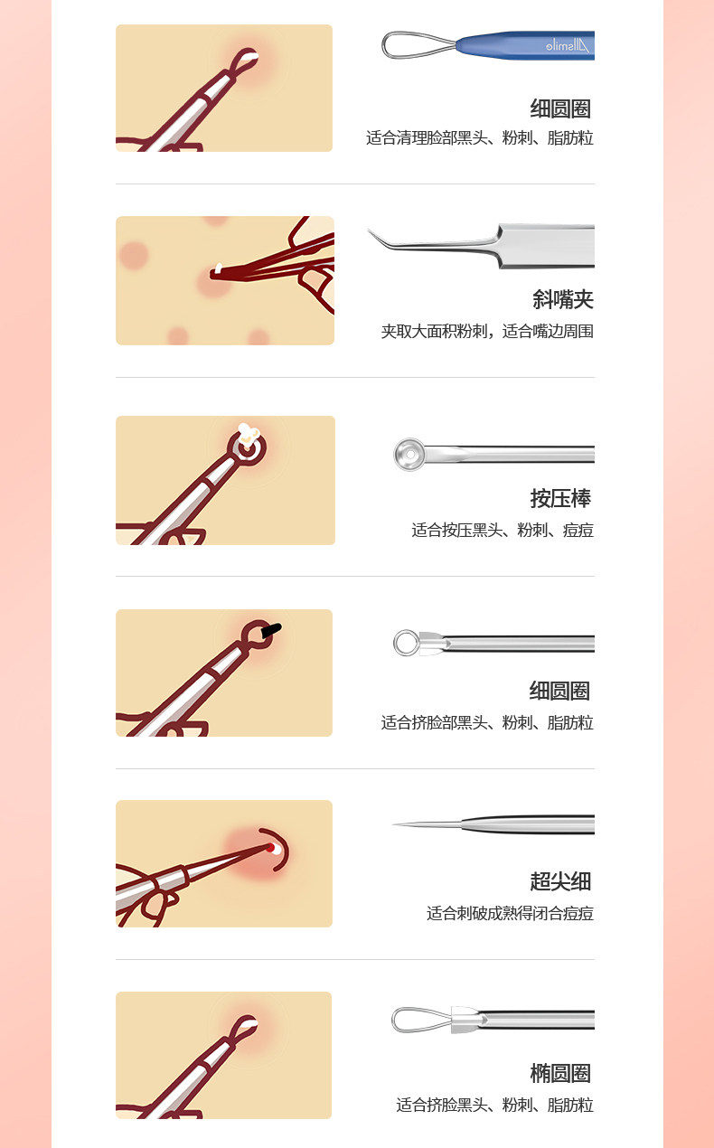 Allsmile Closed Mouth Acne Needle Set Squeeze Pick Acne Remove Blackhead Needle Cell Clip Tweezers Special for Beauty Salon