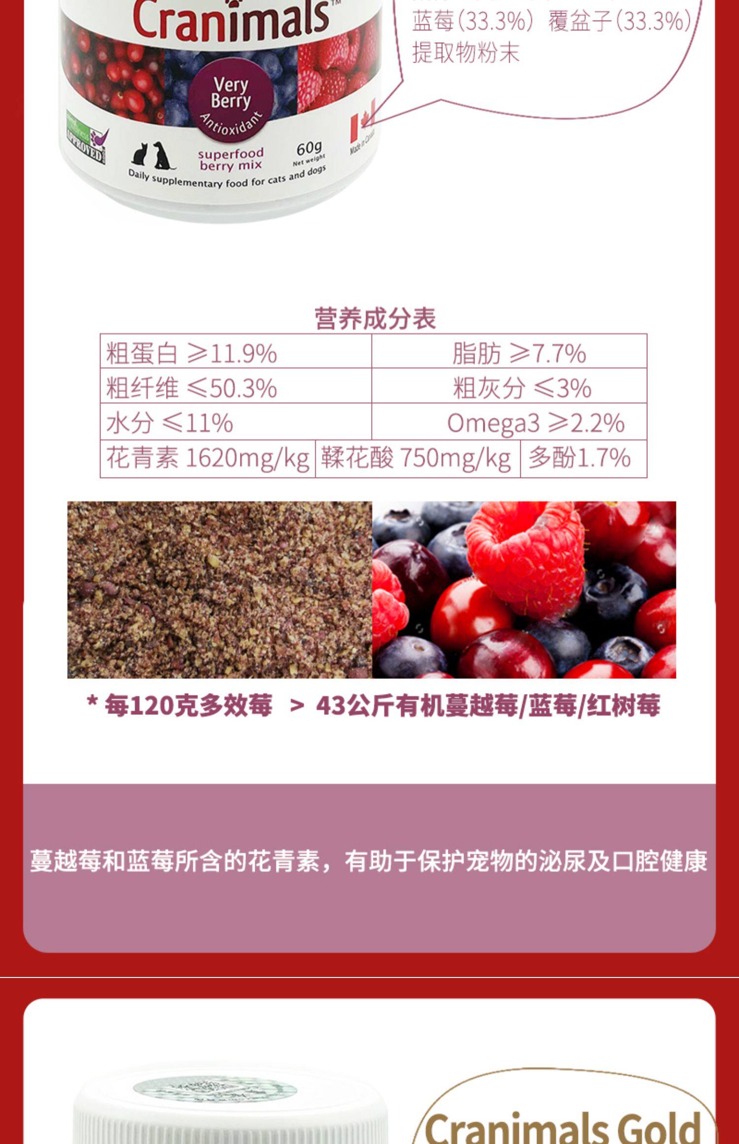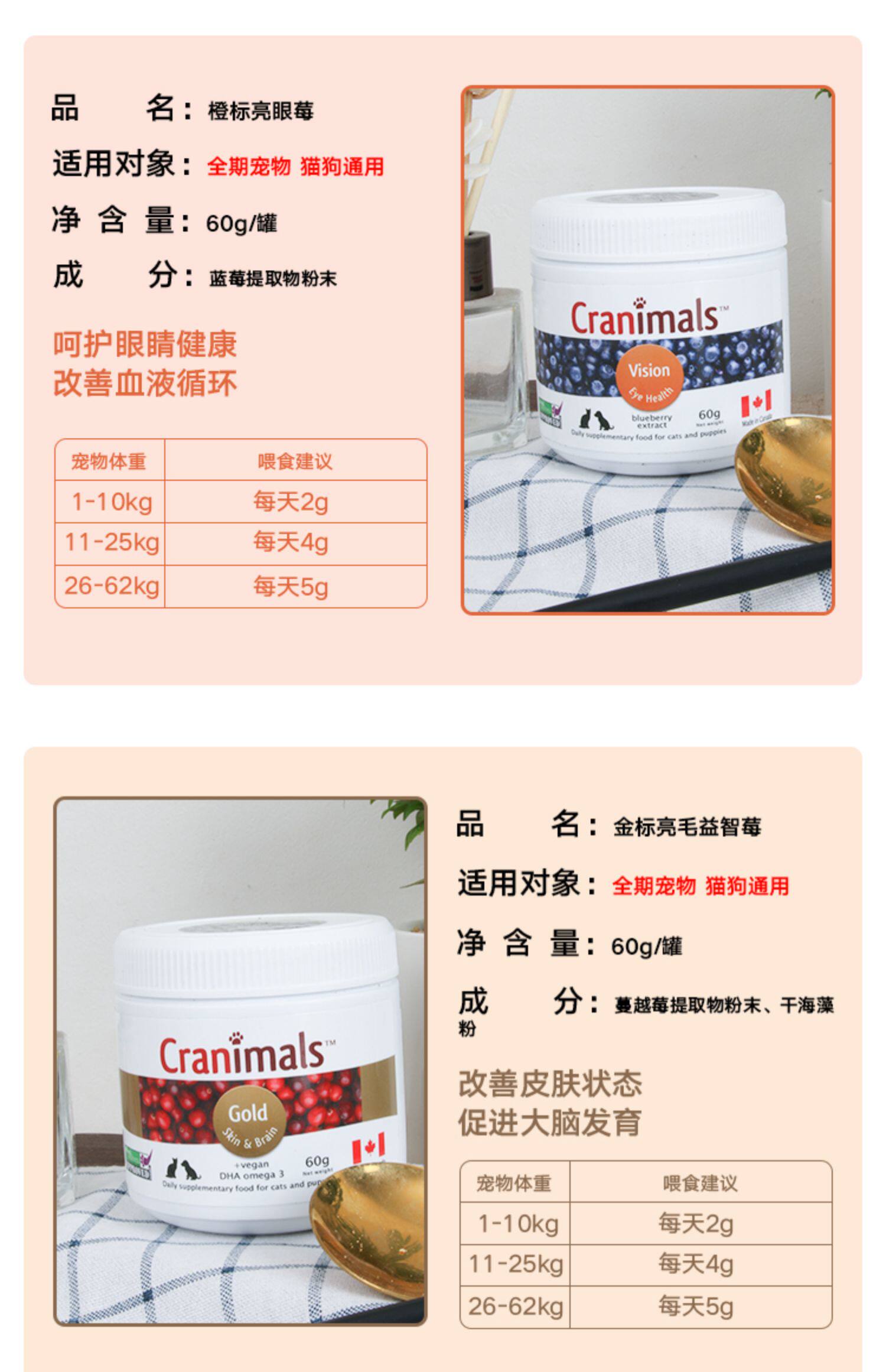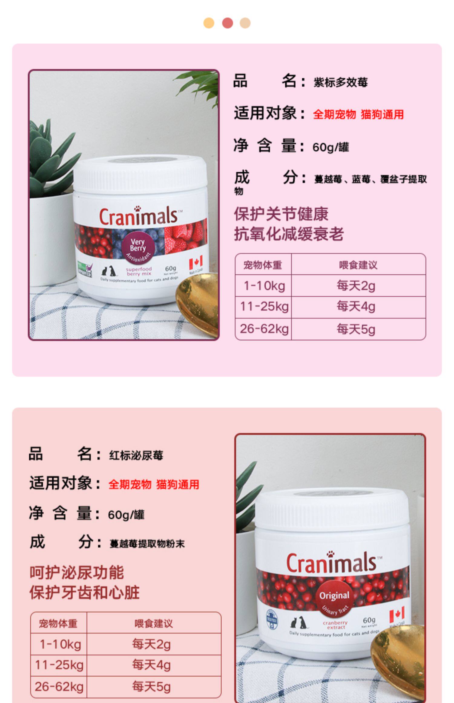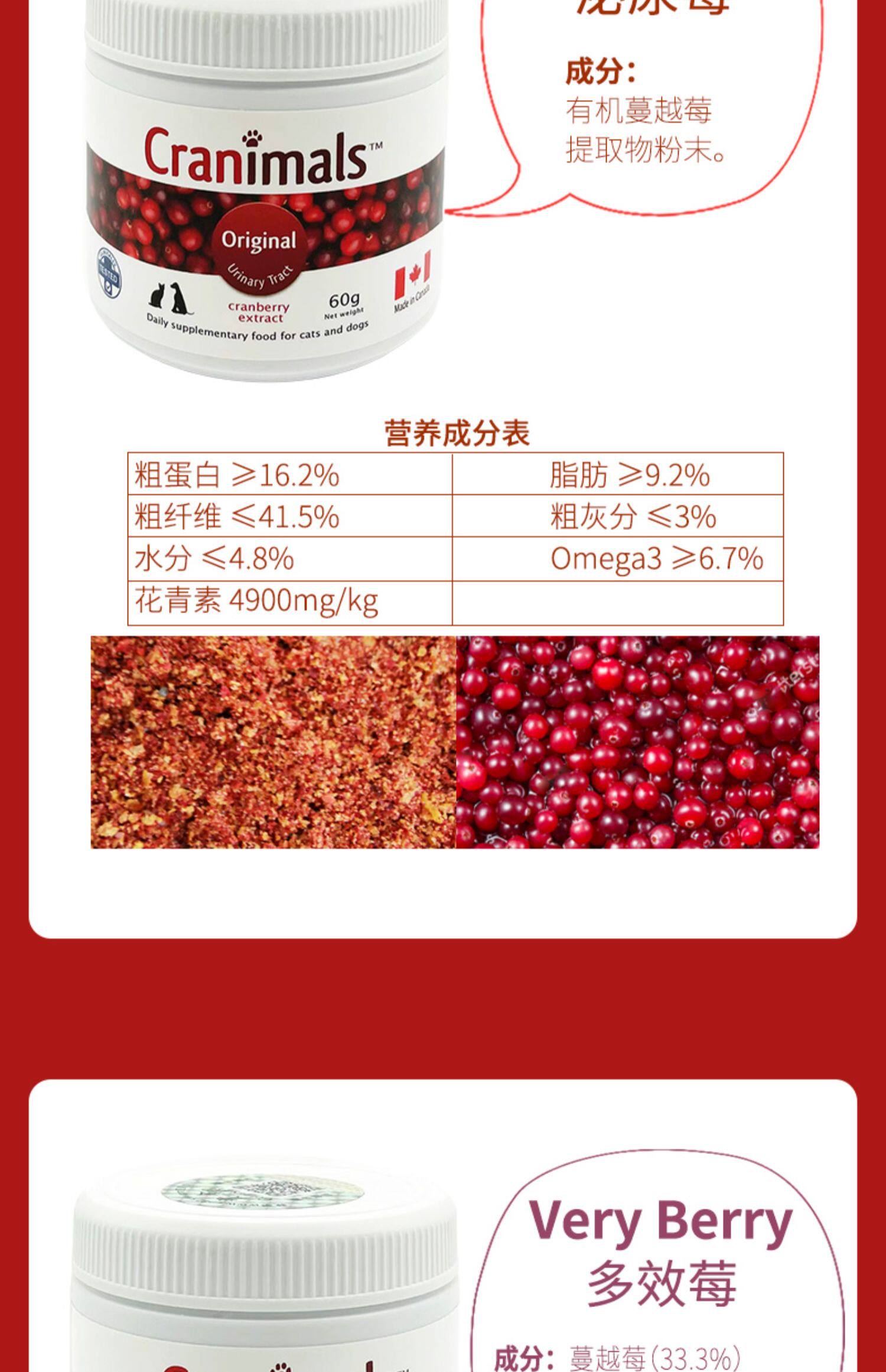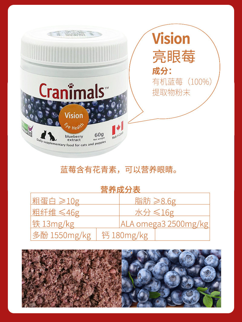 Canadian Cranimals pet dogs and cats cranberry powder three kinds of berries blueberry eye urinary liver health care
