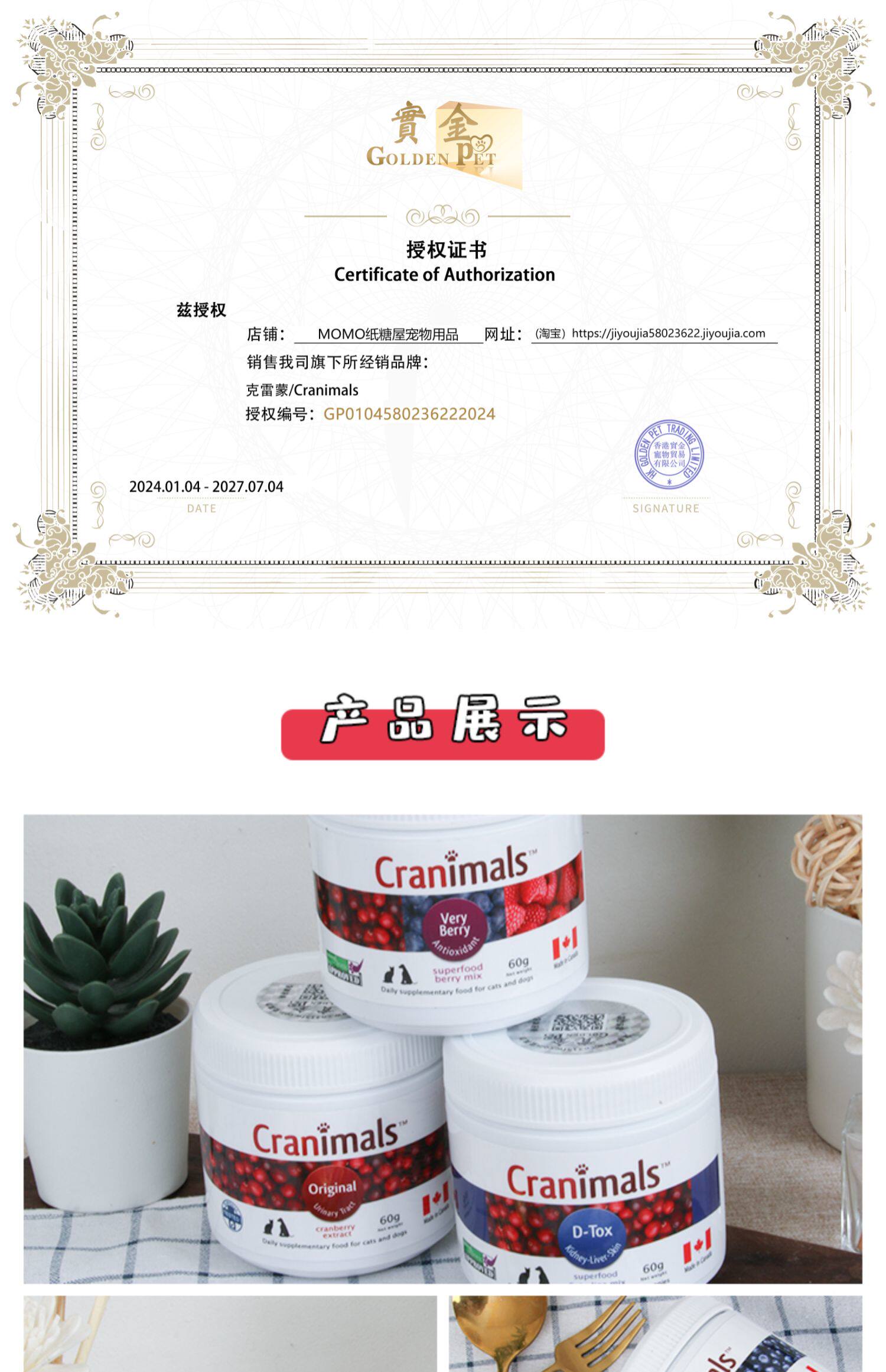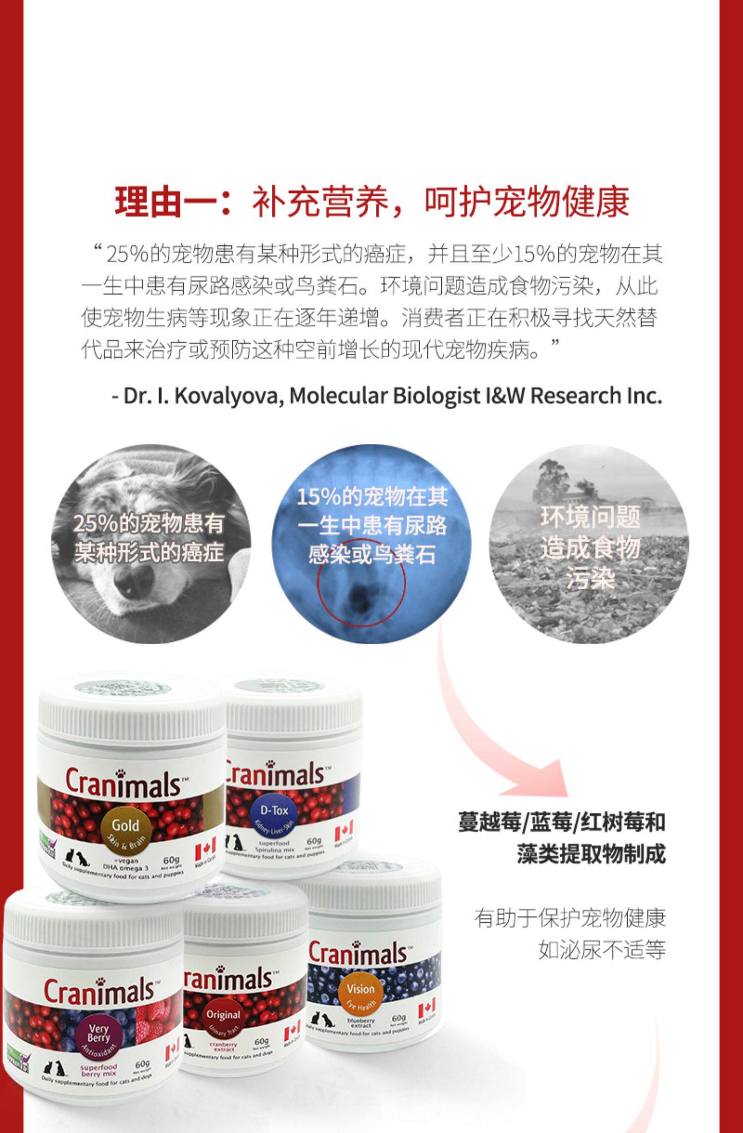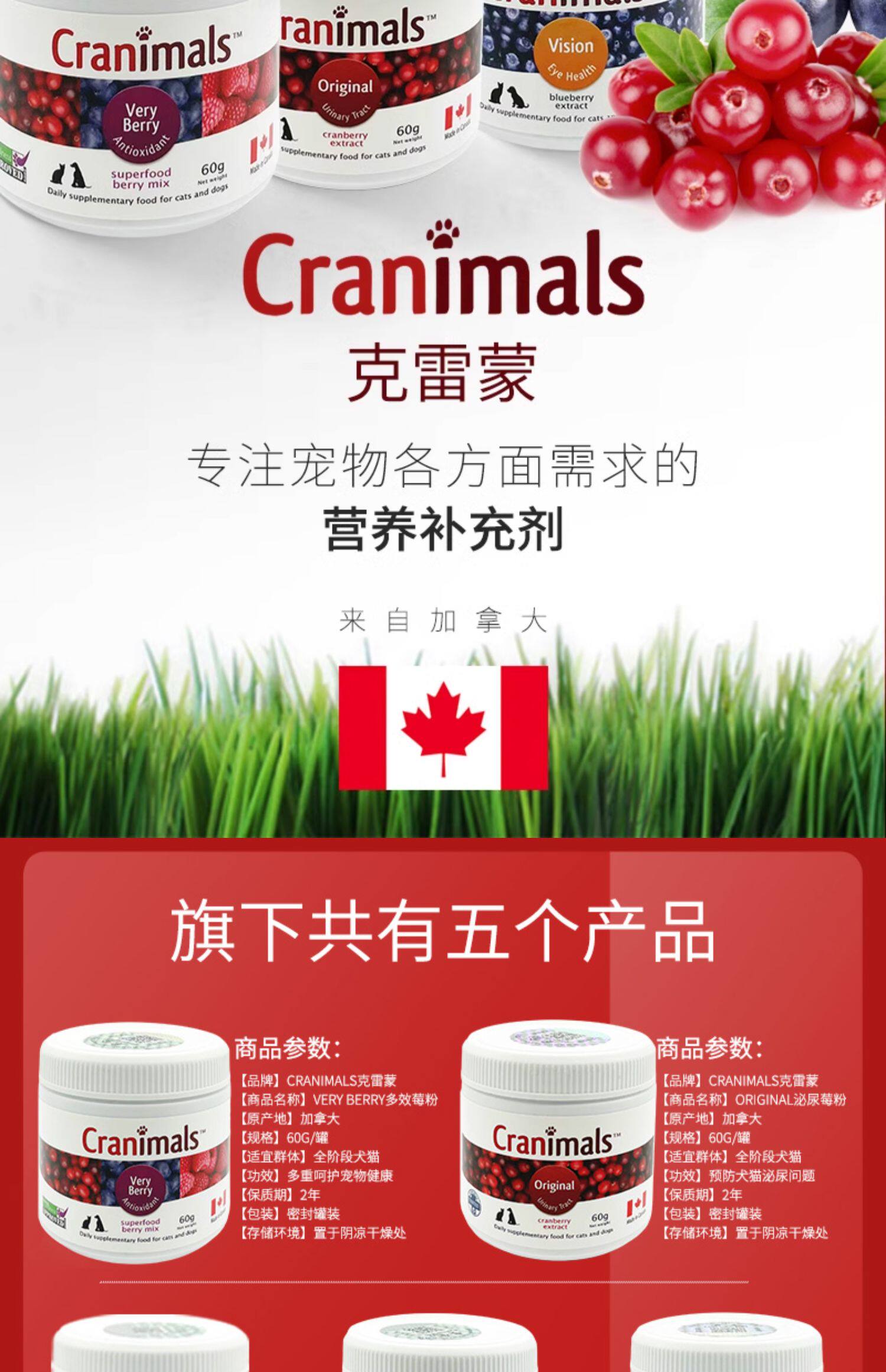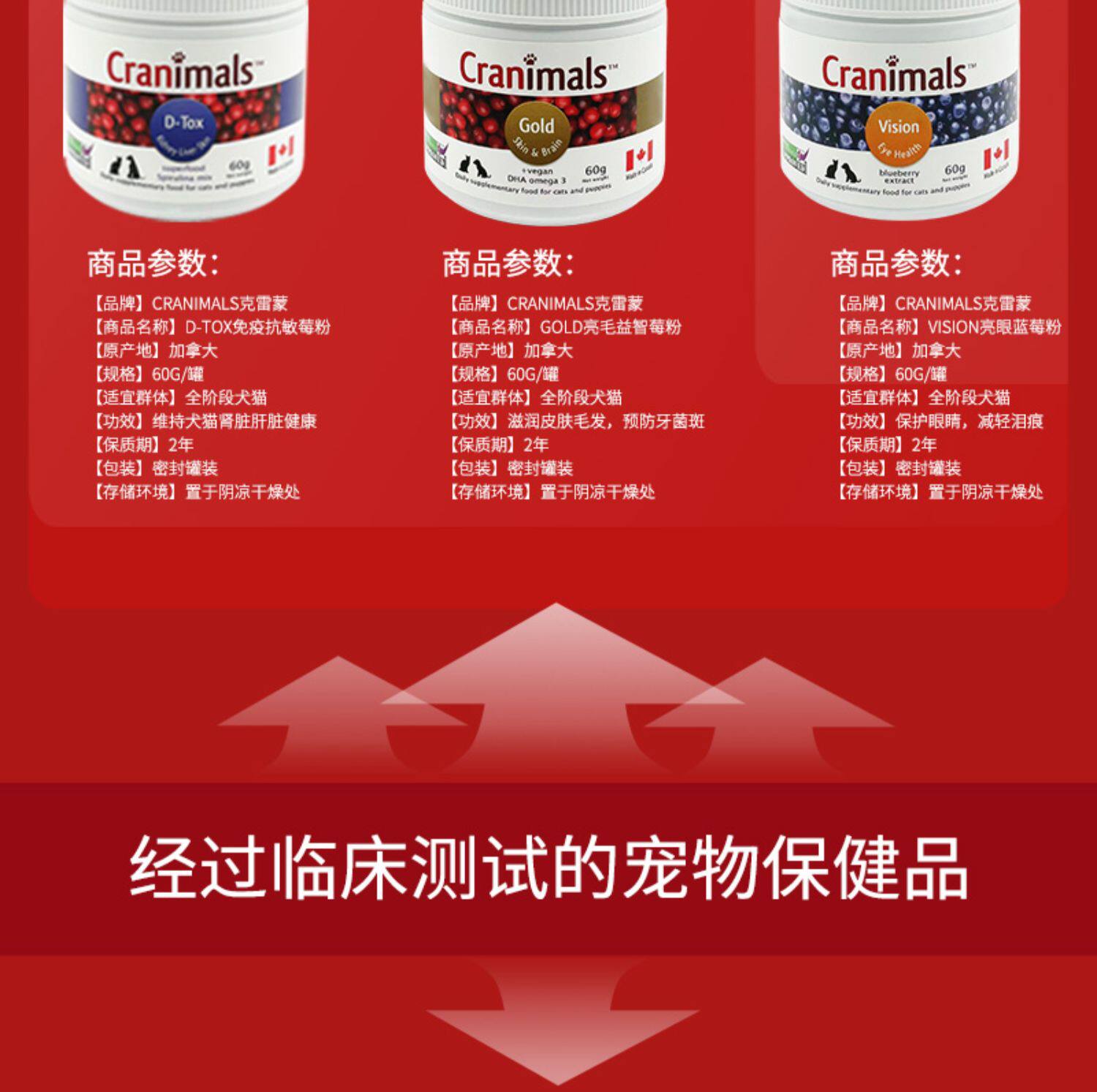 Canadian Cranimals pet dogs and cats cranberry powder three kinds of berries blueberry eye urinary liver health care