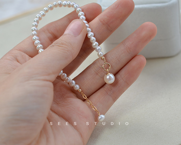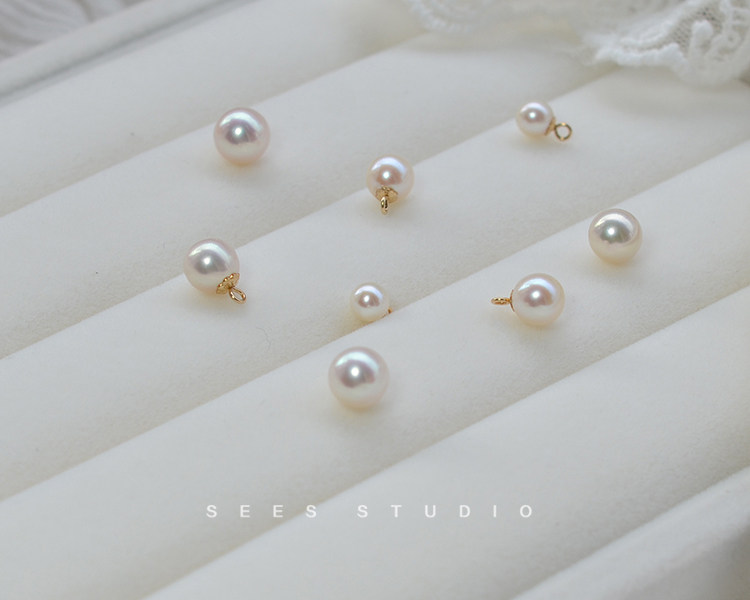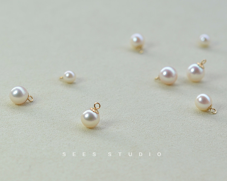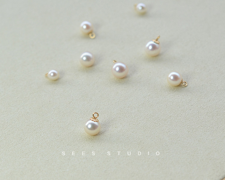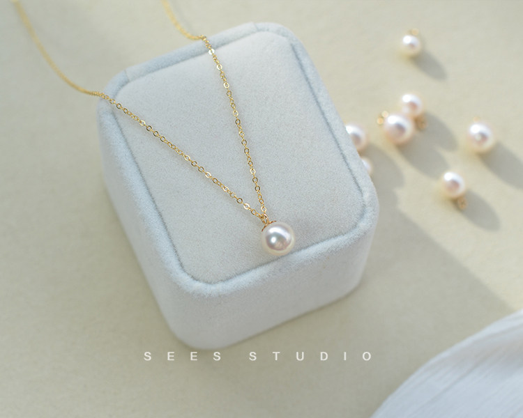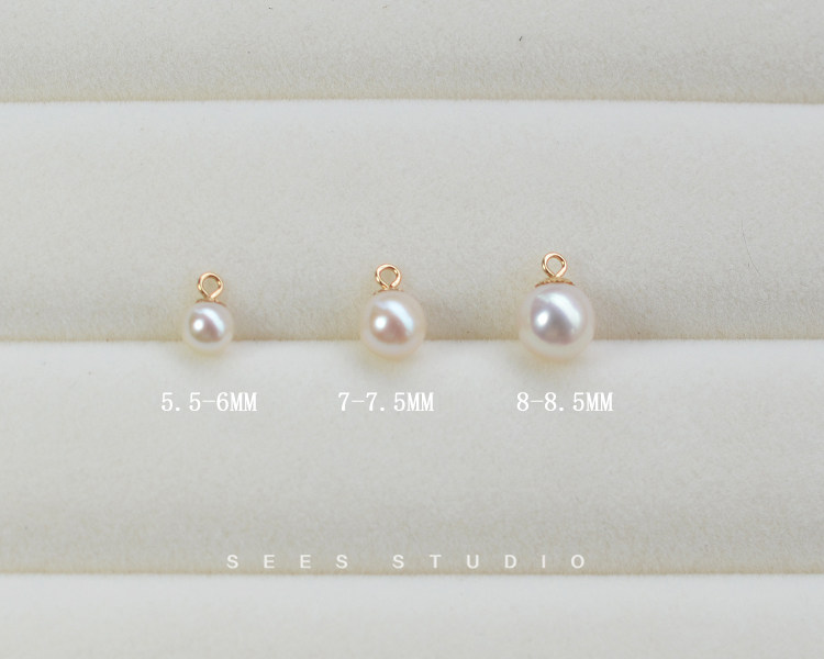 Single round strong light natural freshwater white pearl necklace pendant 14k gold/925 silver