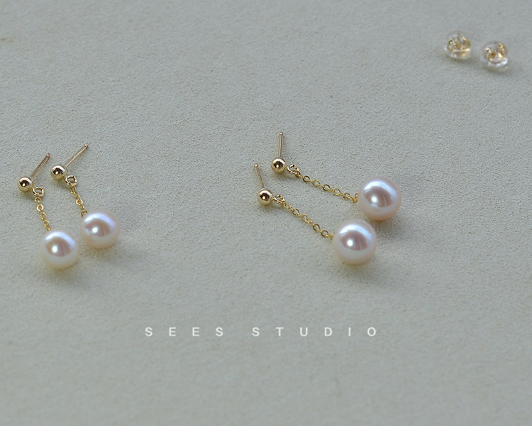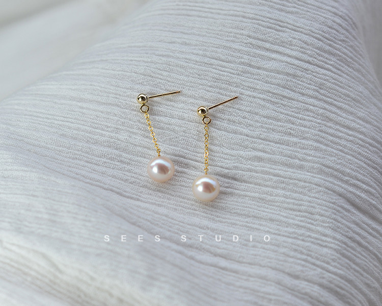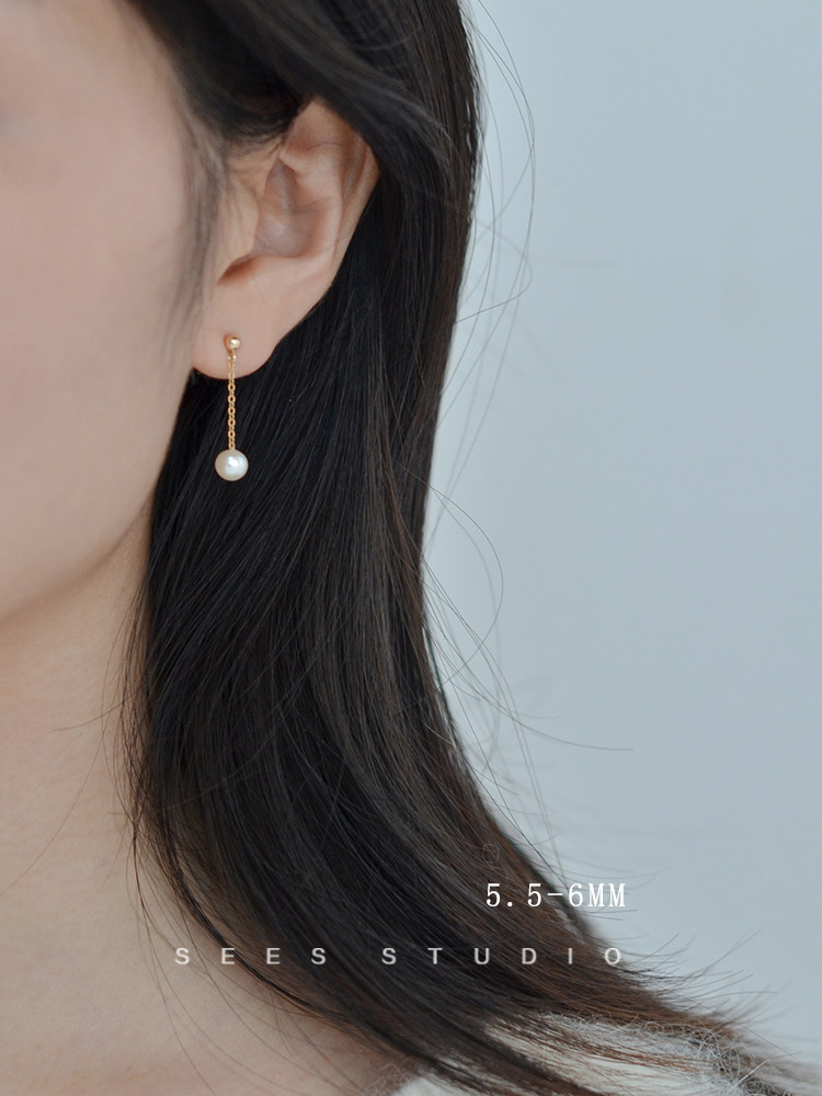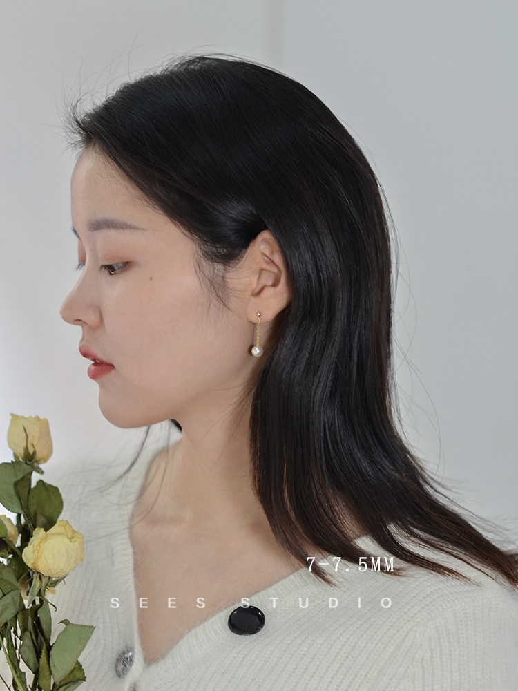 Song Hye-Kyo Style Natural Freshwater White Pearl Earrings for Women, Vintage Elegant Long Earrings