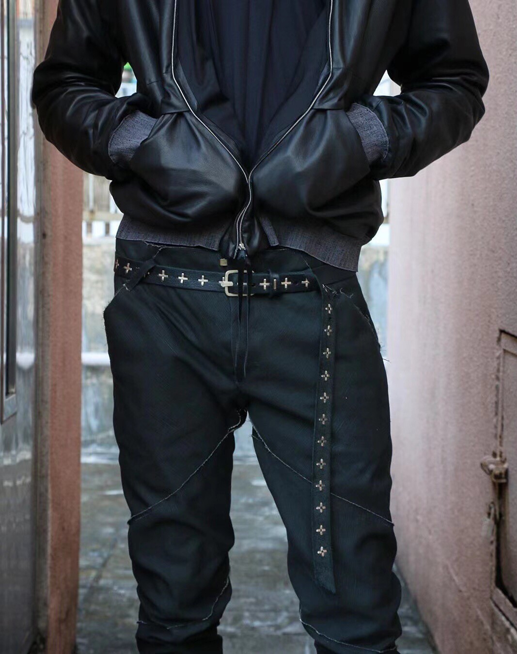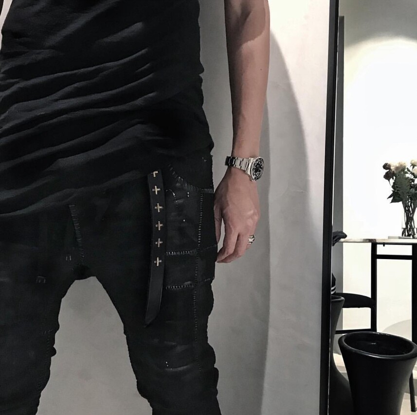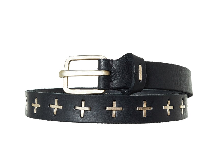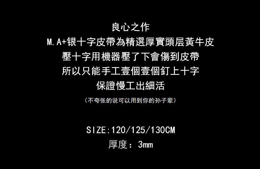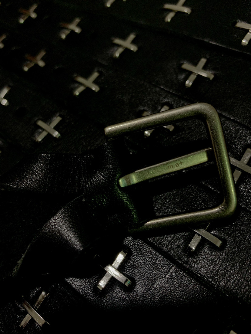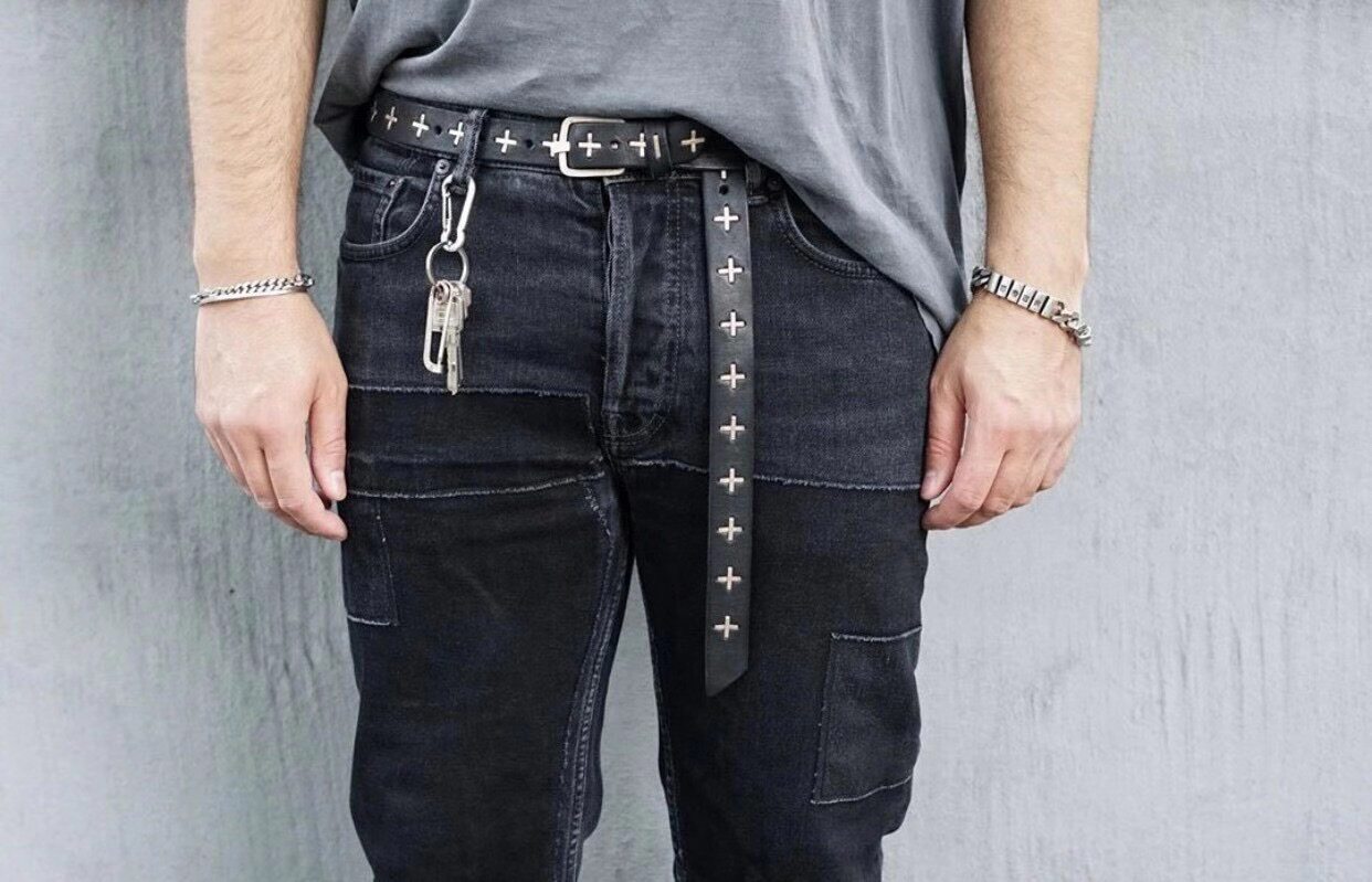Kiosk Limited Edition Ma+ Silver Cross Handmade Distressed Genuine Leather Belt Dark Style Versatile Belt for Young Men
