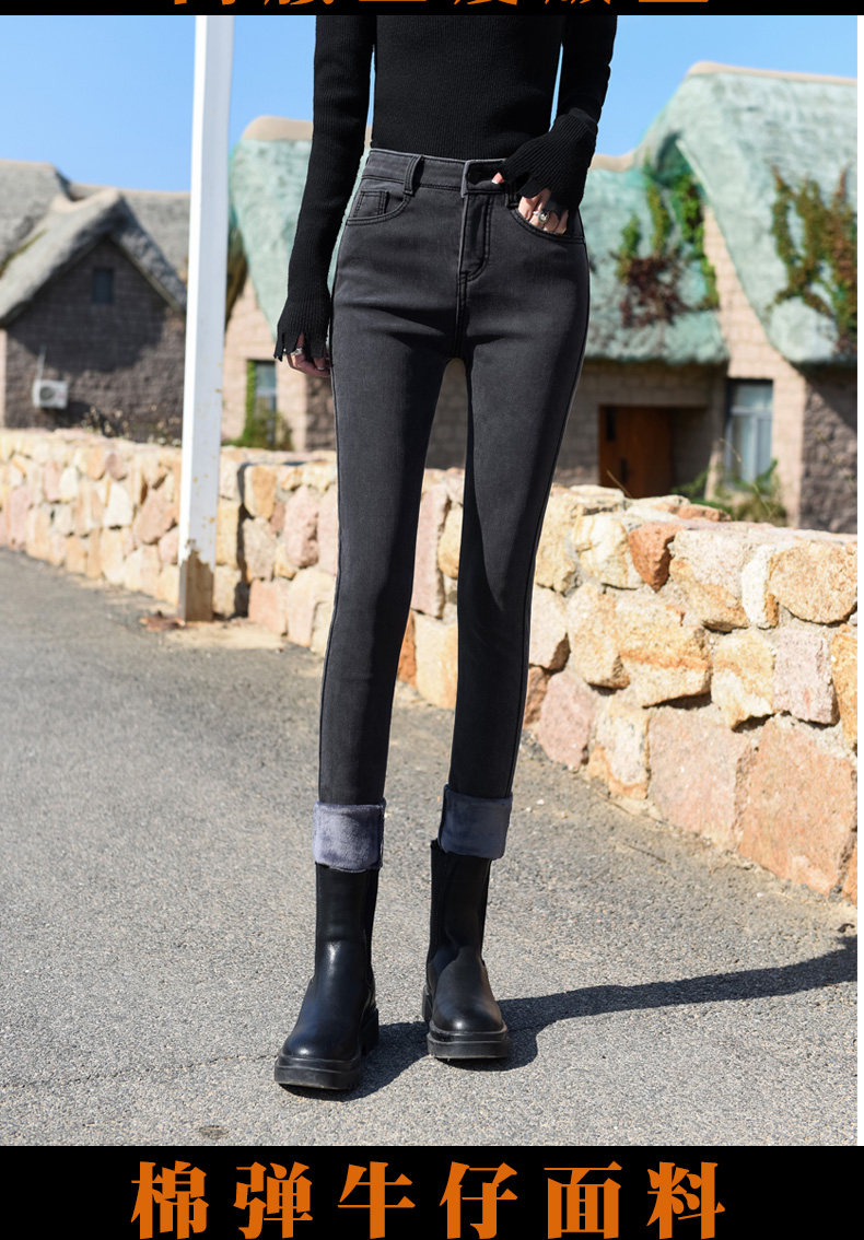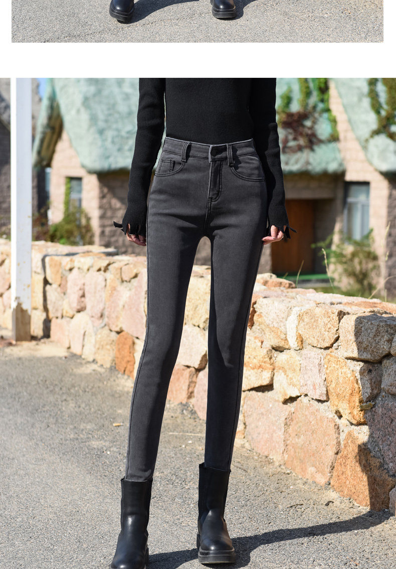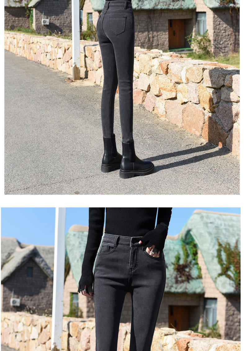 Smoke Gray High-Waisted Jeans for Women, Fleece-Lined, 2025 Autumn and Winter New Style, Stretchy, Slimming, Cropped Pants, Skinny Fit, for Outerwear