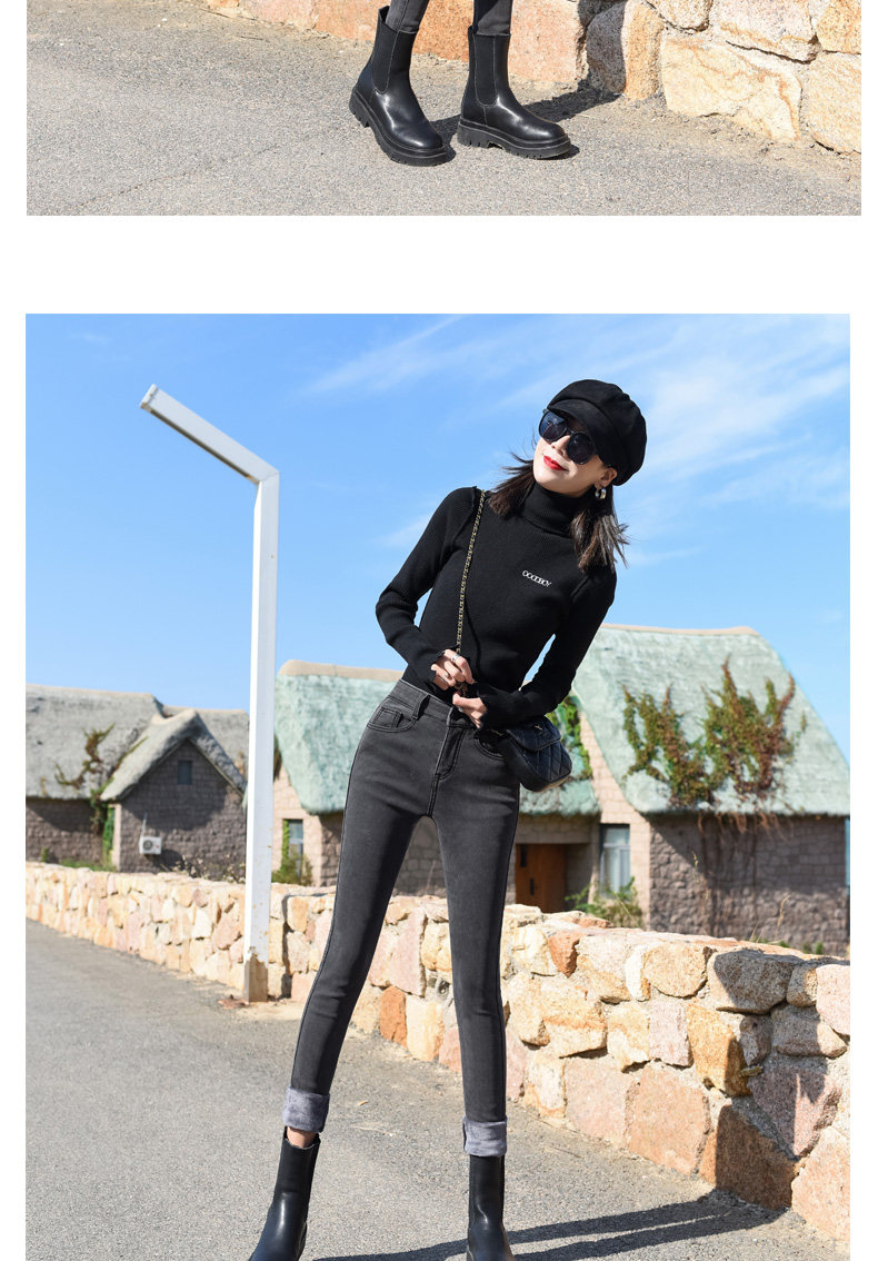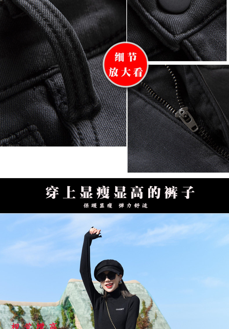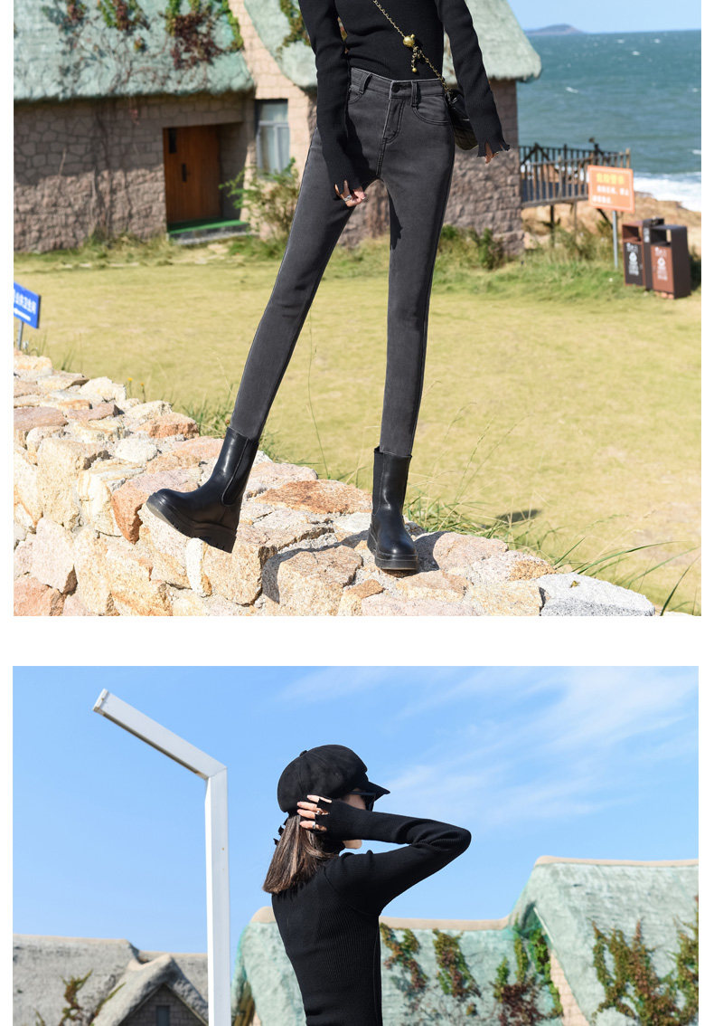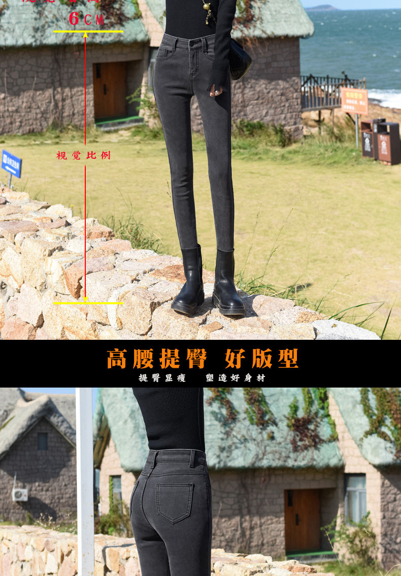 Smoke Gray High-Waisted Jeans for Women, Fleece-Lined, 2025 Autumn and Winter New Style, Stretchy, Slimming, Cropped Pants, Skinny Fit, for Outerwear