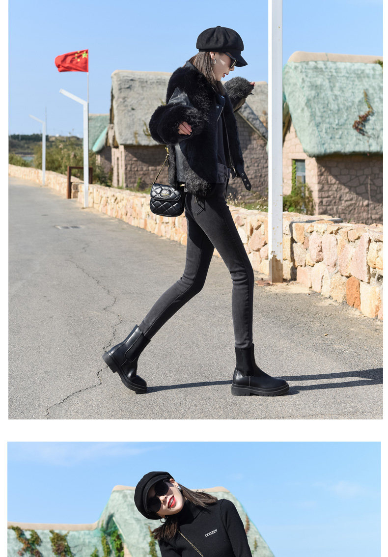 Color Classification Gray Fleece-Lined Cropped Leggings,Fleece-Lined Thick Pants,Gray Fleece-Lined Cropped Leggings,Gray Fleece Trousers,Gray Cropped Trousers,Gray Single Trousers