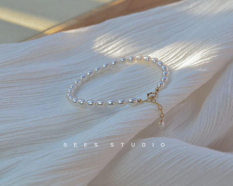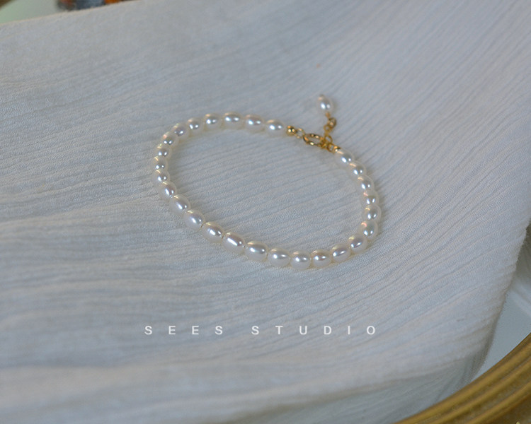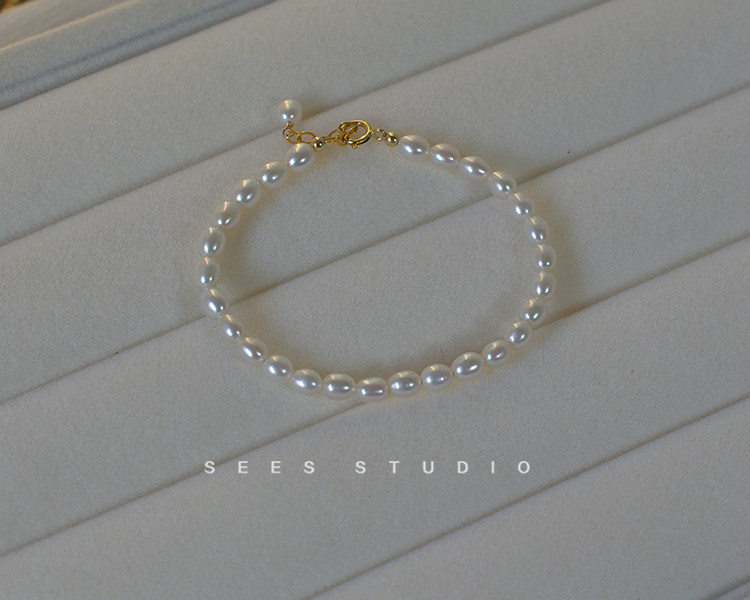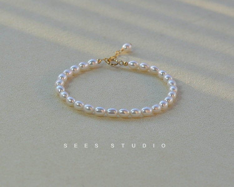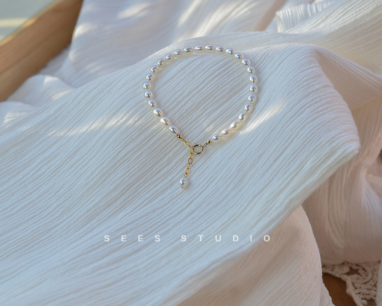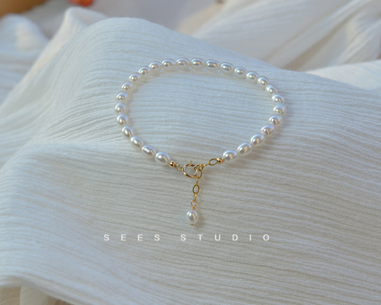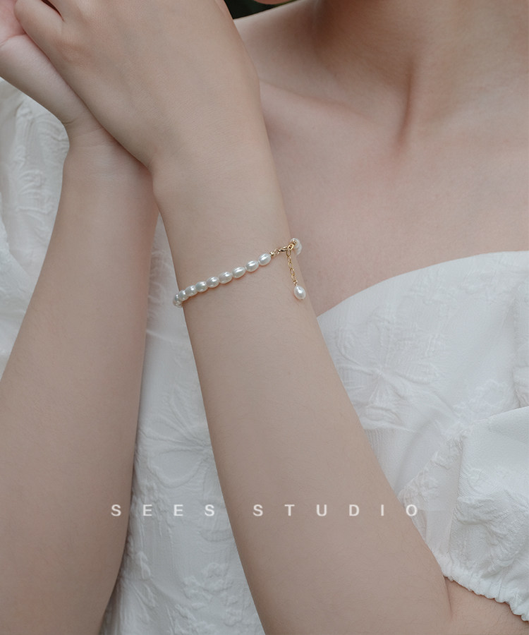 SEES natural freshwater millet grain real pearl bracelet for women, simple retro design, 14k gold-filled/hangable pendant