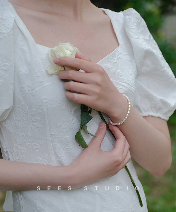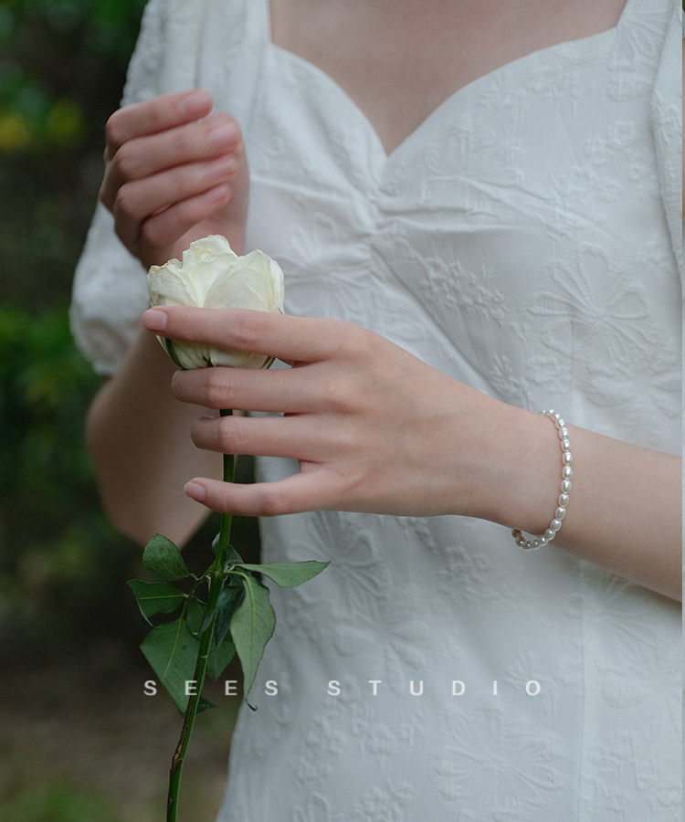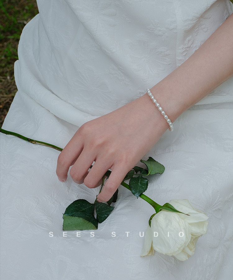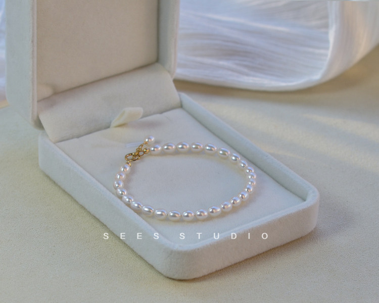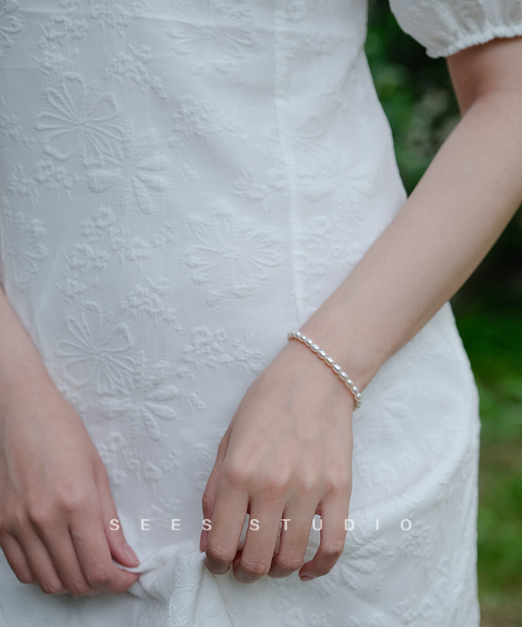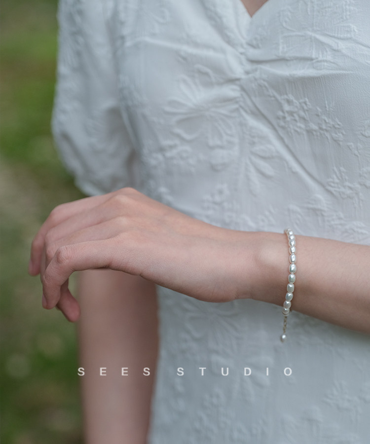SEES natural freshwater millet grain real pearl bracelet for women, simple retro design, 14k gold-filled/hangable pendant