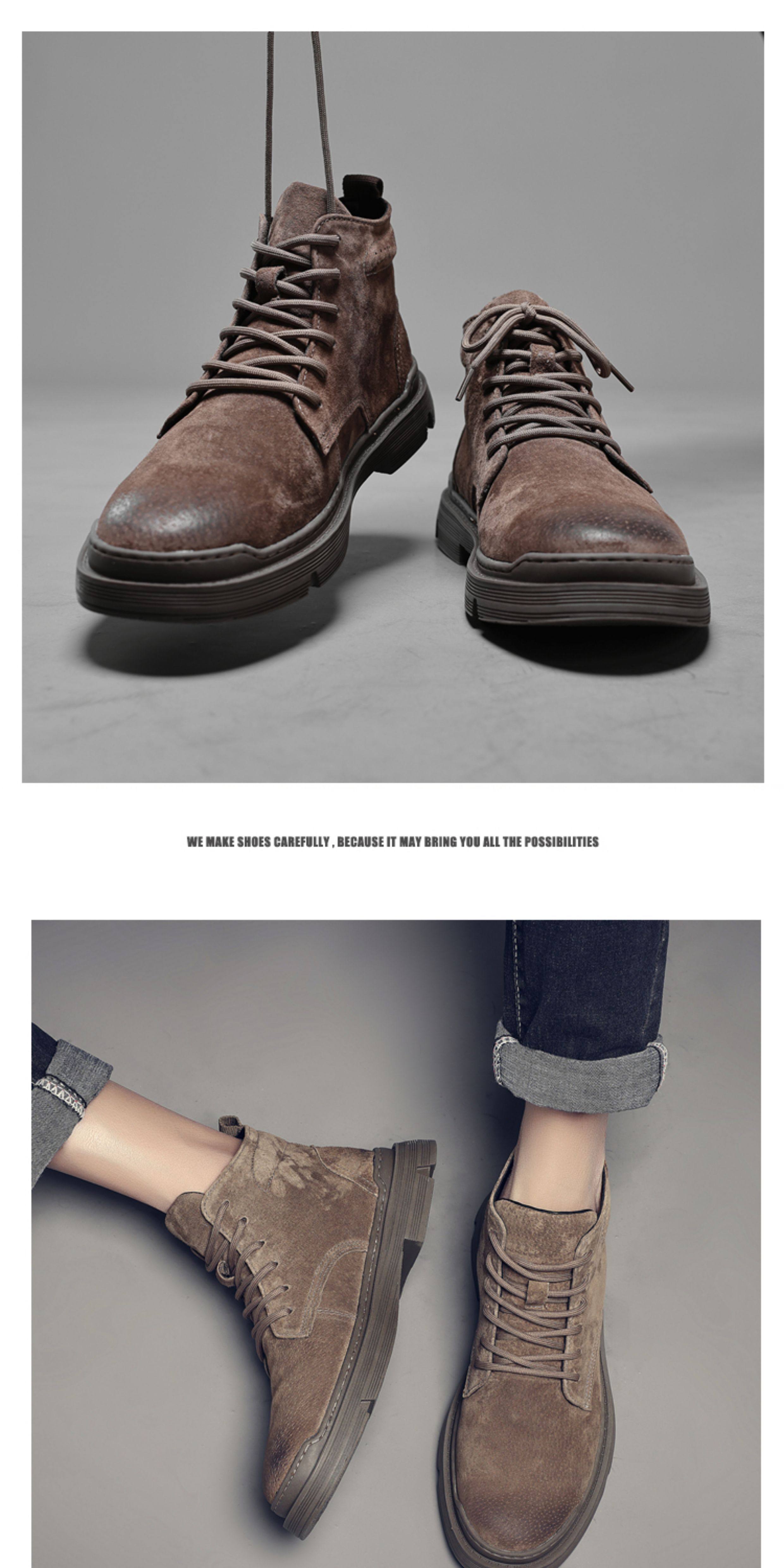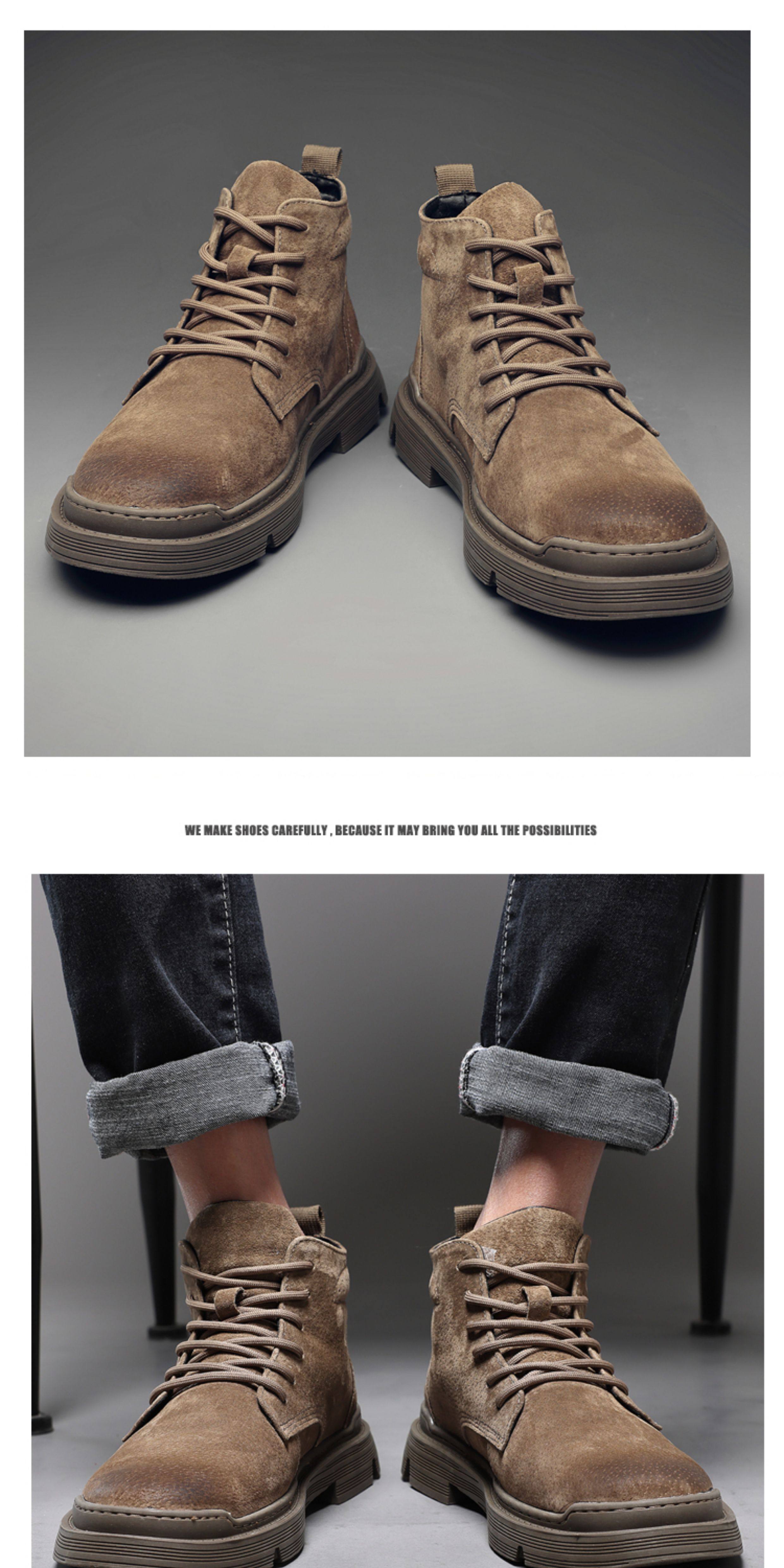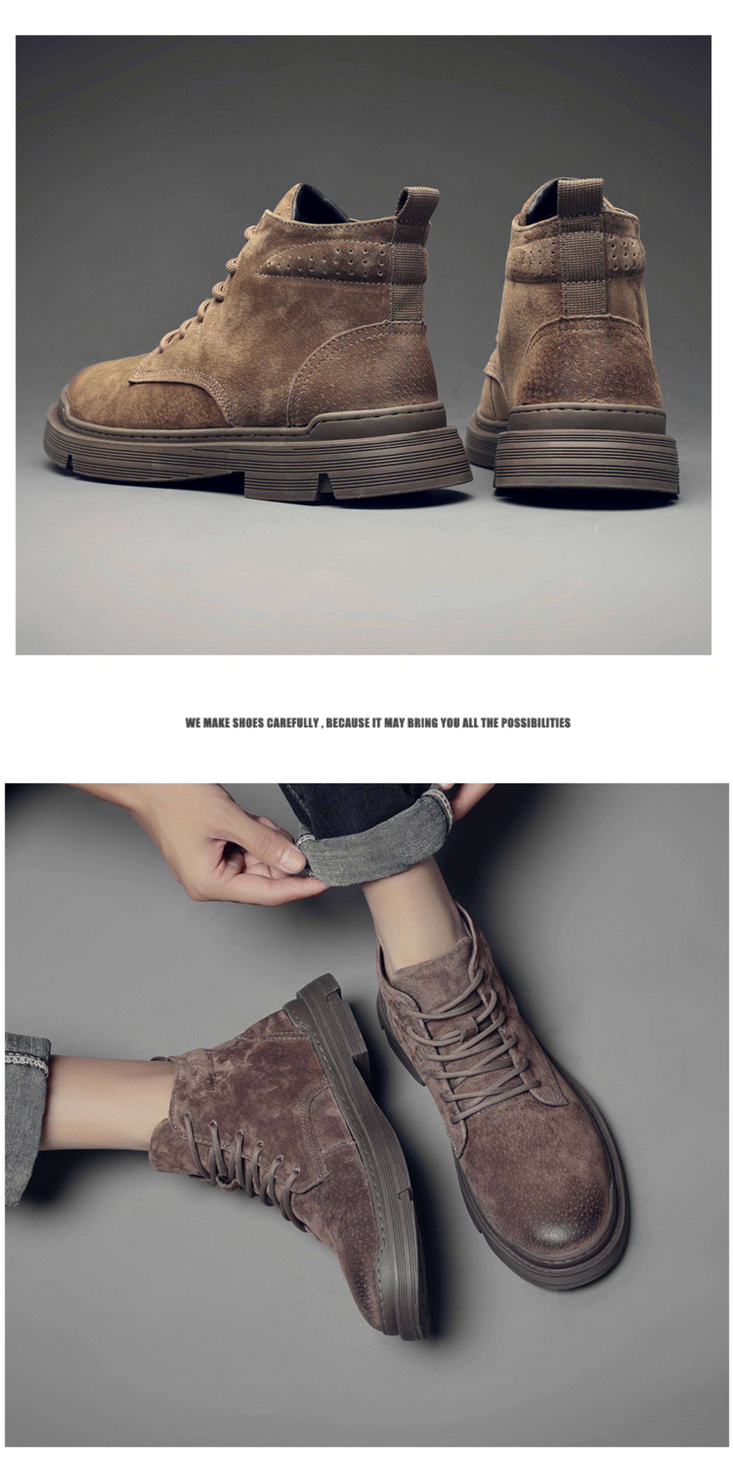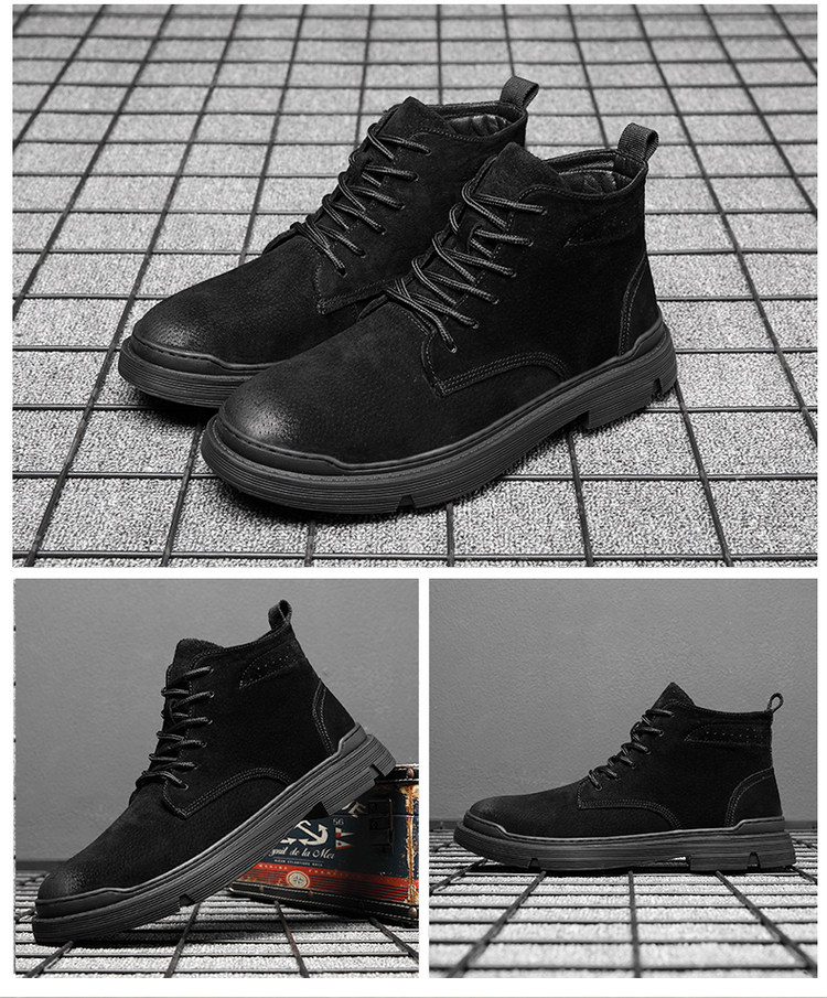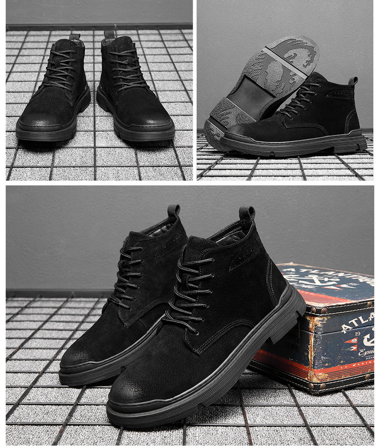 Martin Boots for Men, Winter Fleece-Lined High-Top Shoes, British Style Trendy Mid-Top Short Boots, Genuine Leather Korean Style Retro Work Boots