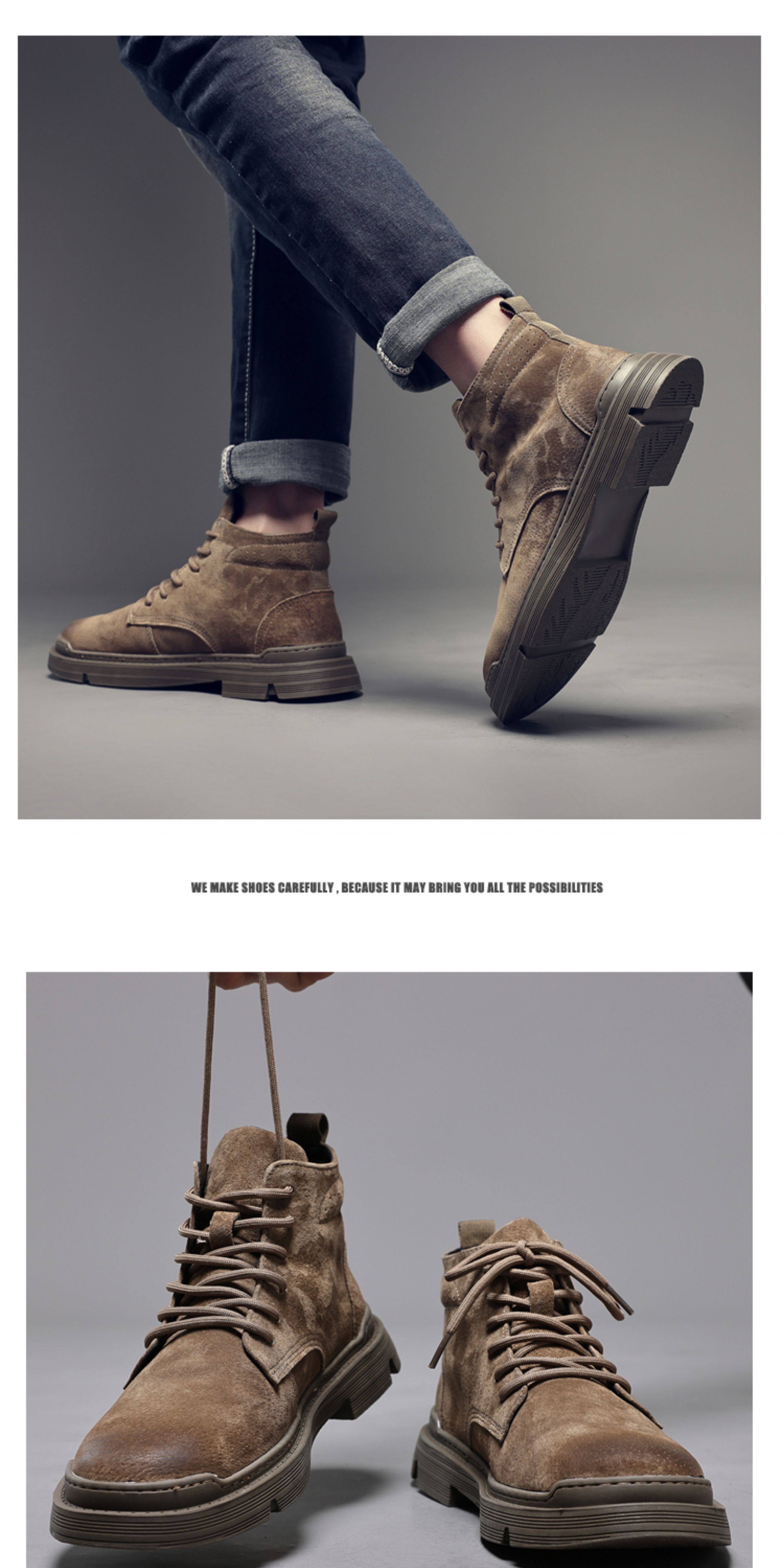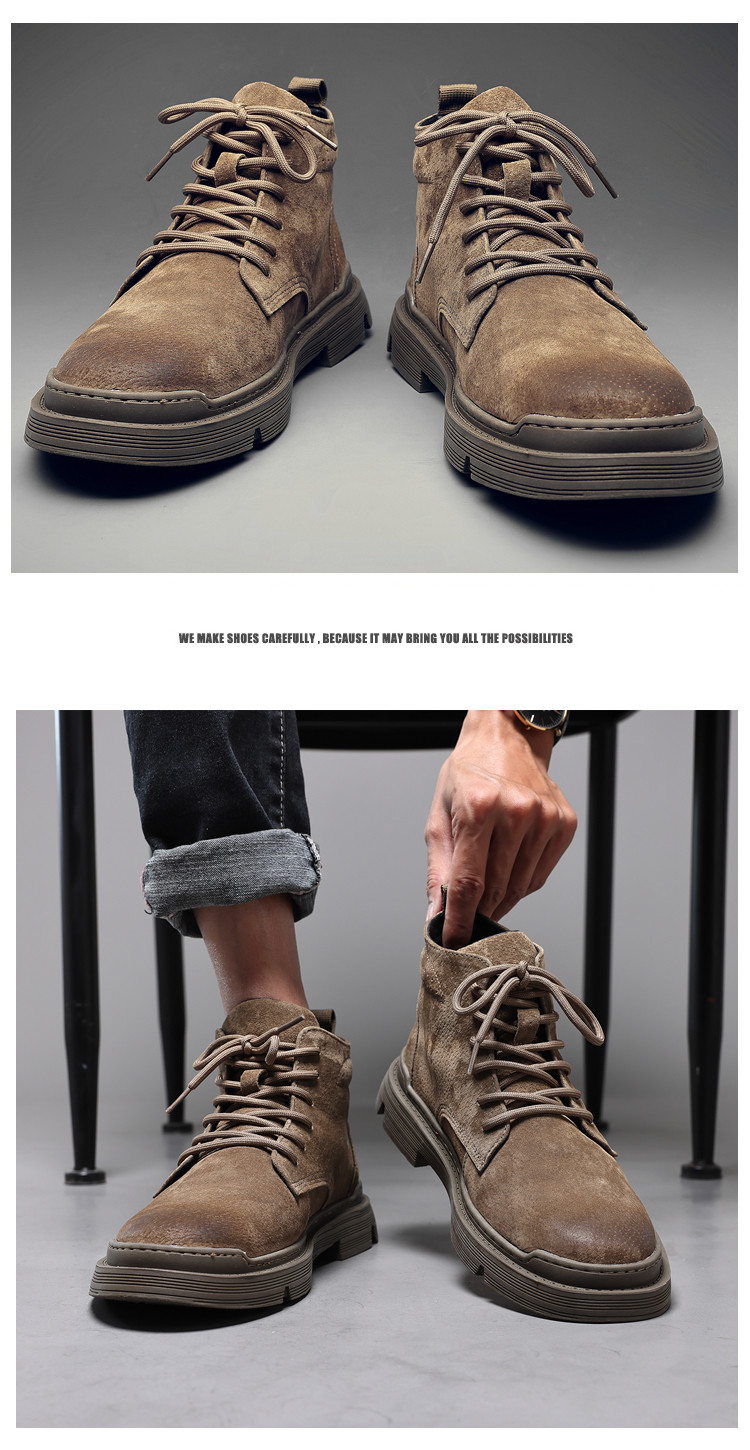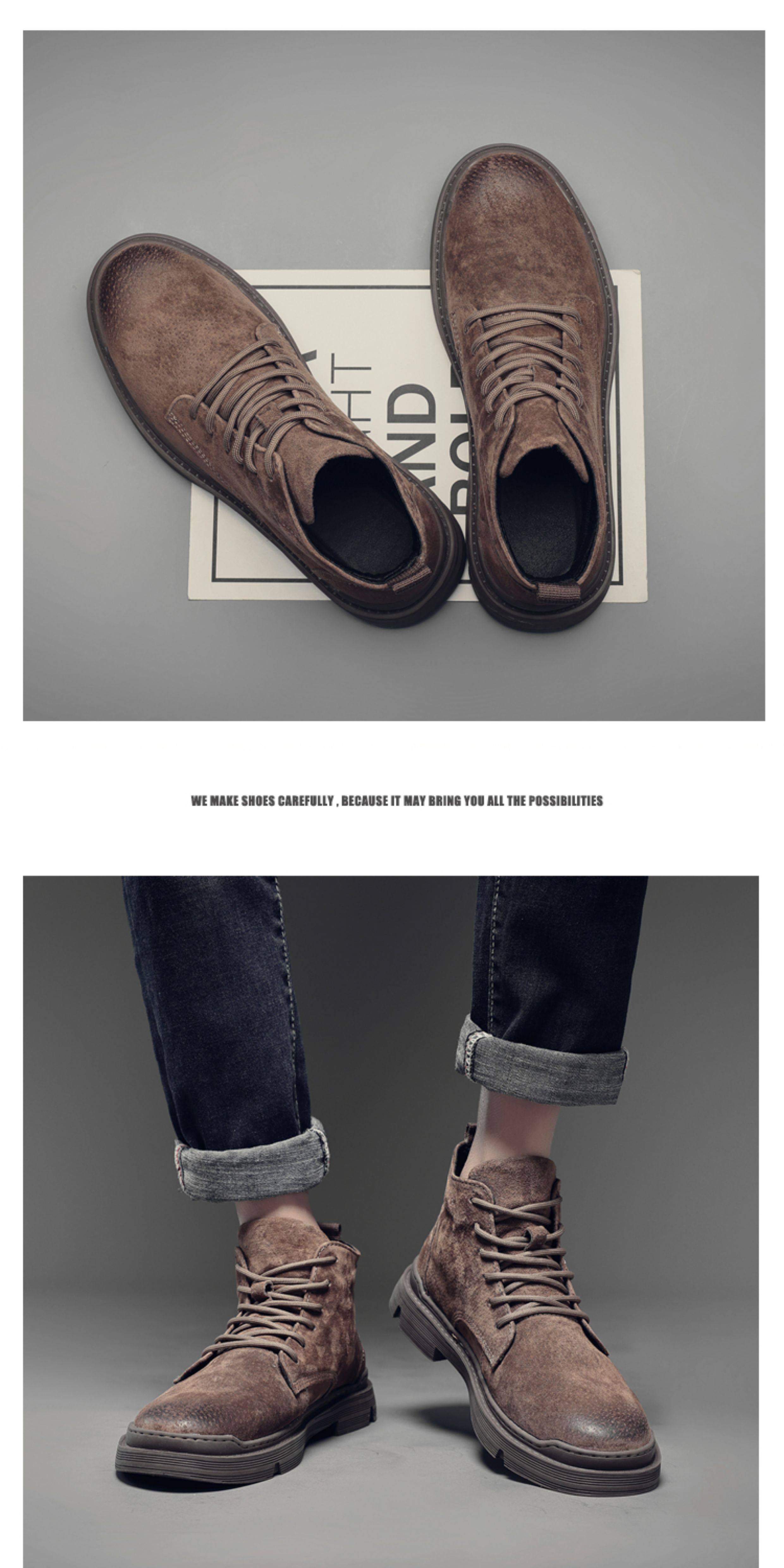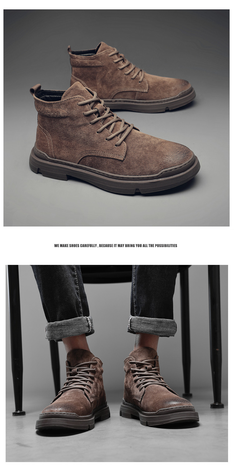 Martin Boots for Men, Winter Fleece-Lined High-Top Shoes, British Style Trendy Mid-Top Short Boots, Genuine Leather Korean Style Retro Work Boots