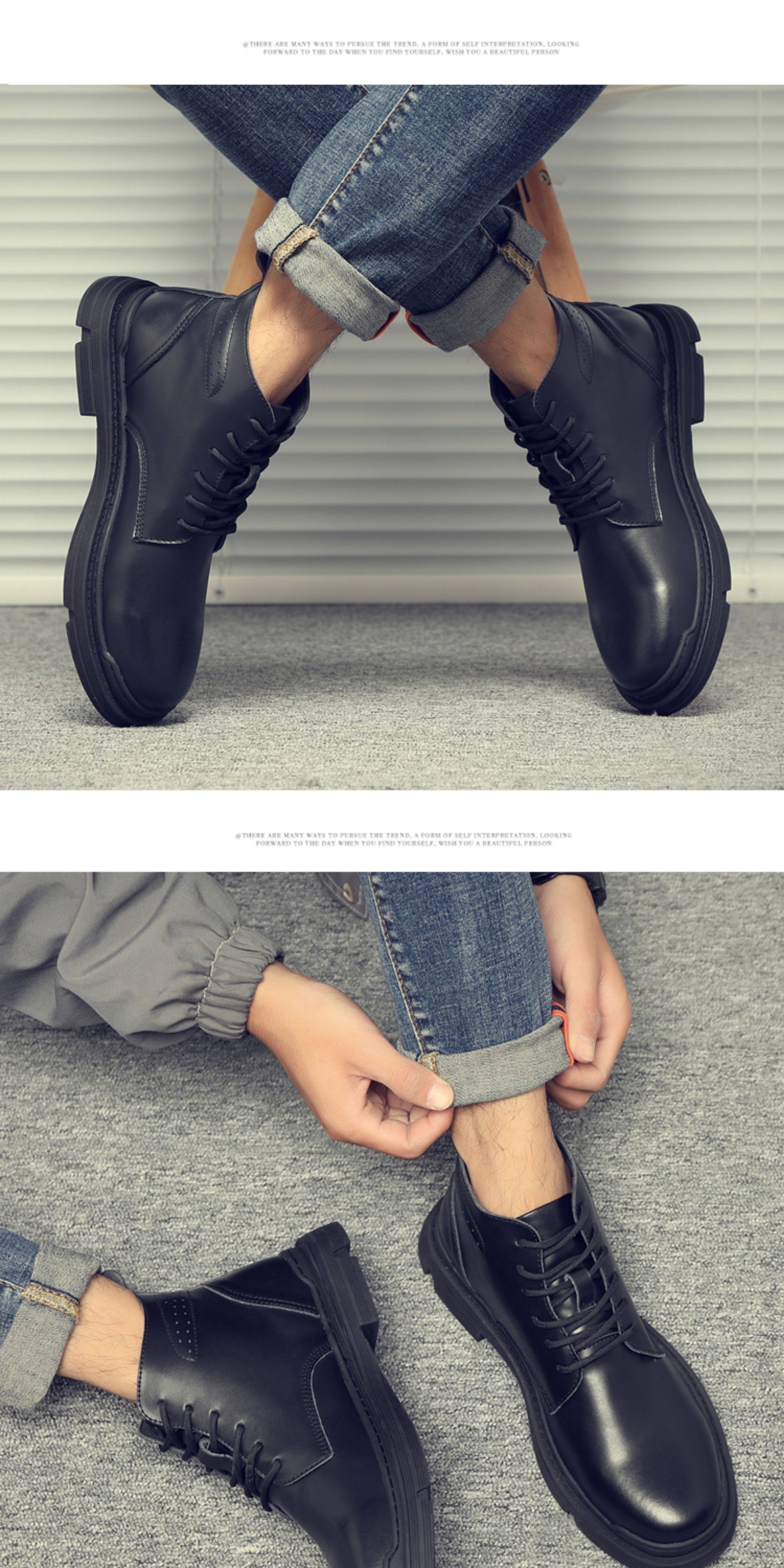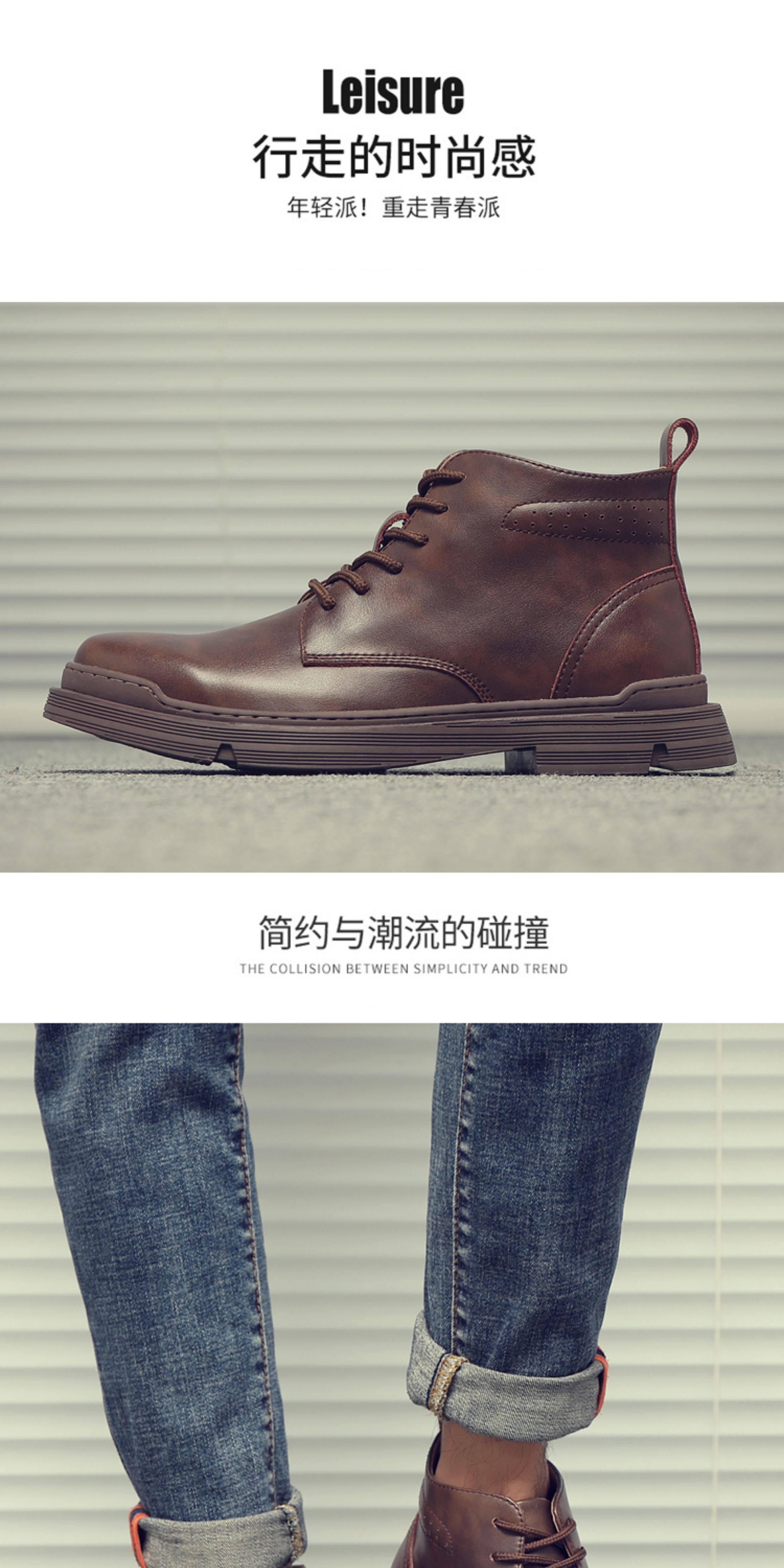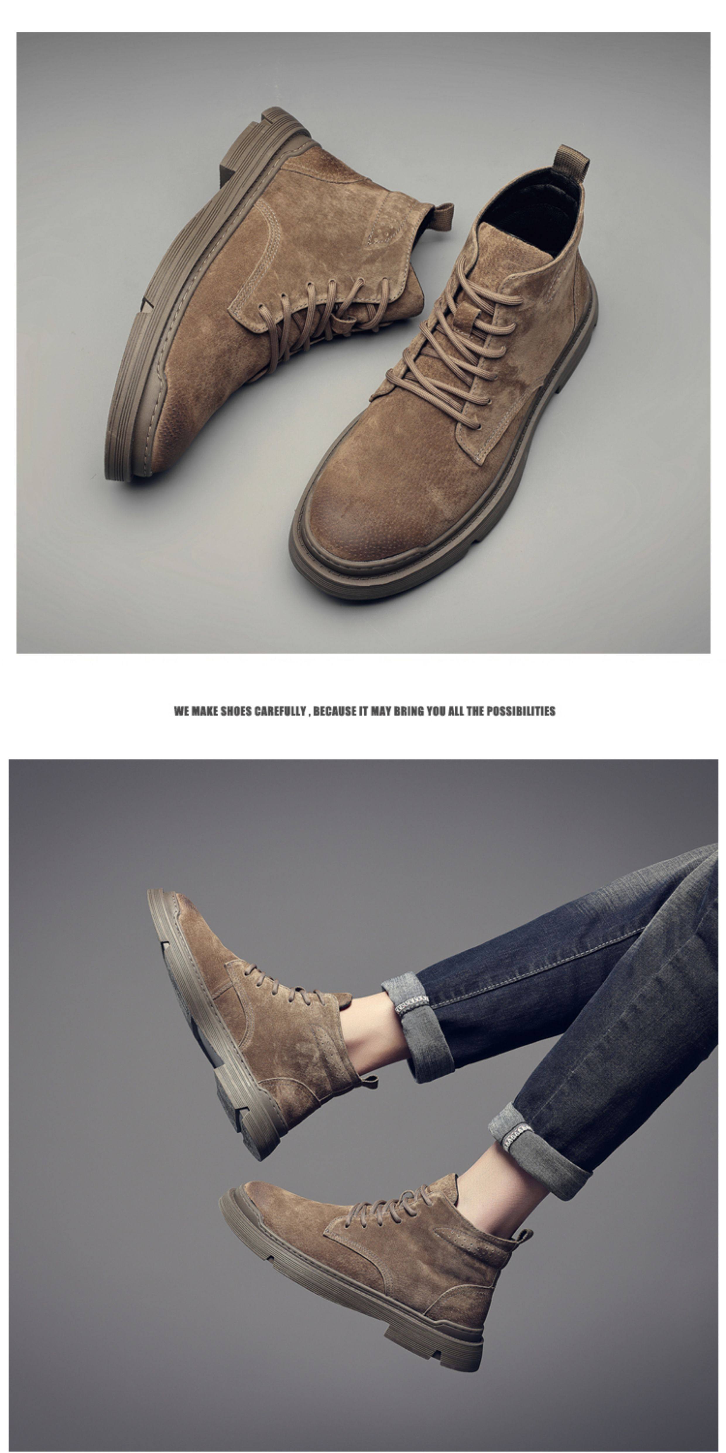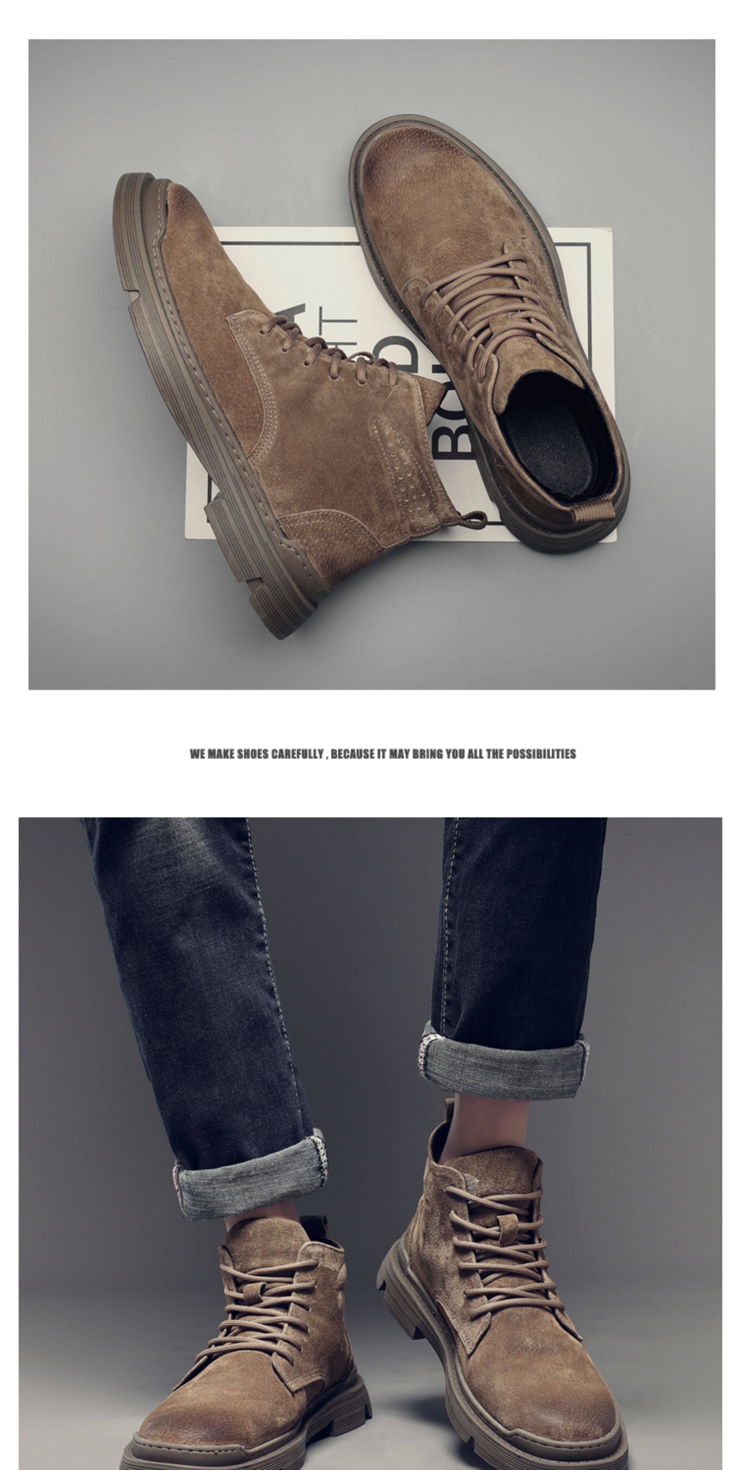 Martin Boots for Men, Winter Fleece-Lined High-Top Shoes, British Style Trendy Mid-Top Short Boots, Genuine Leather Korean Style Retro Work Boots