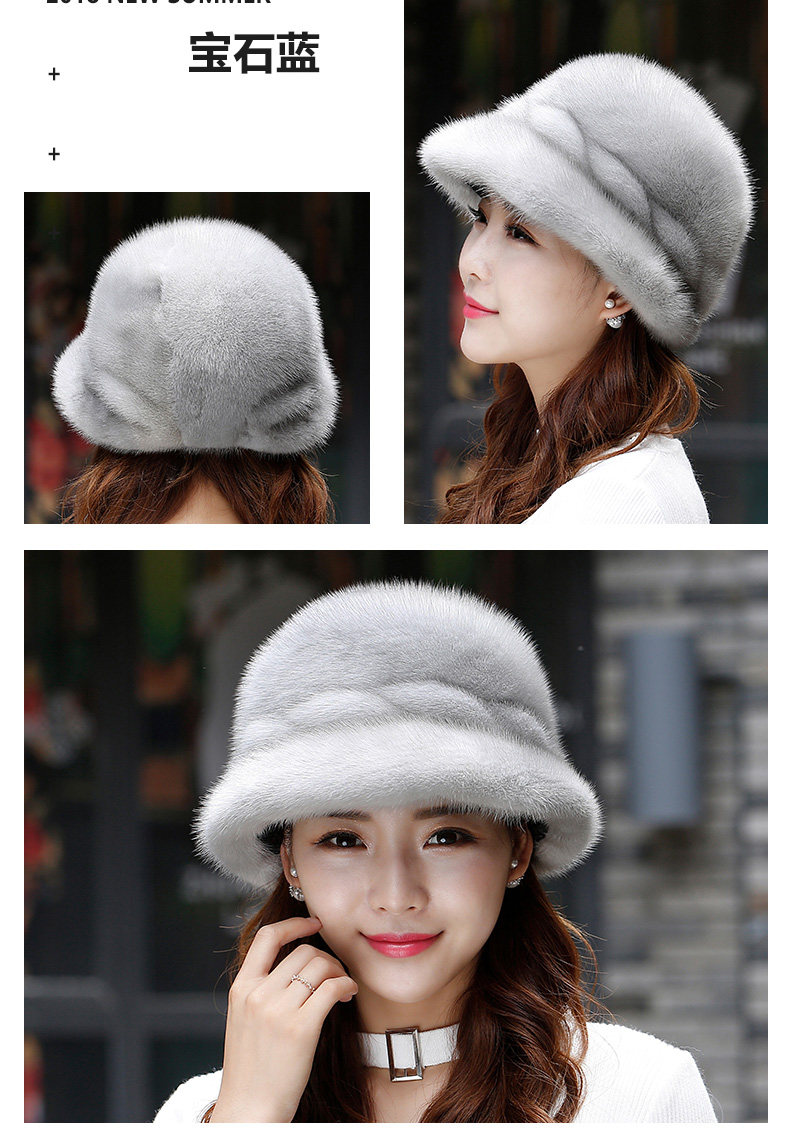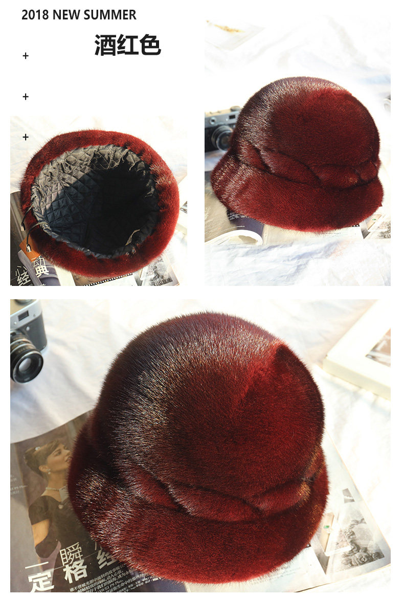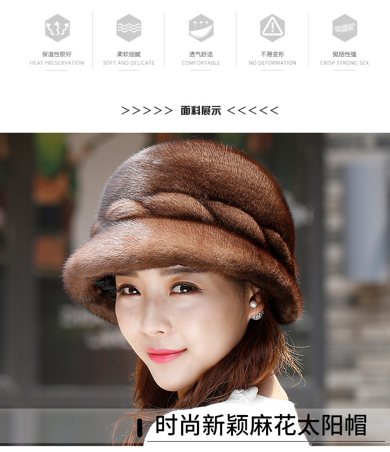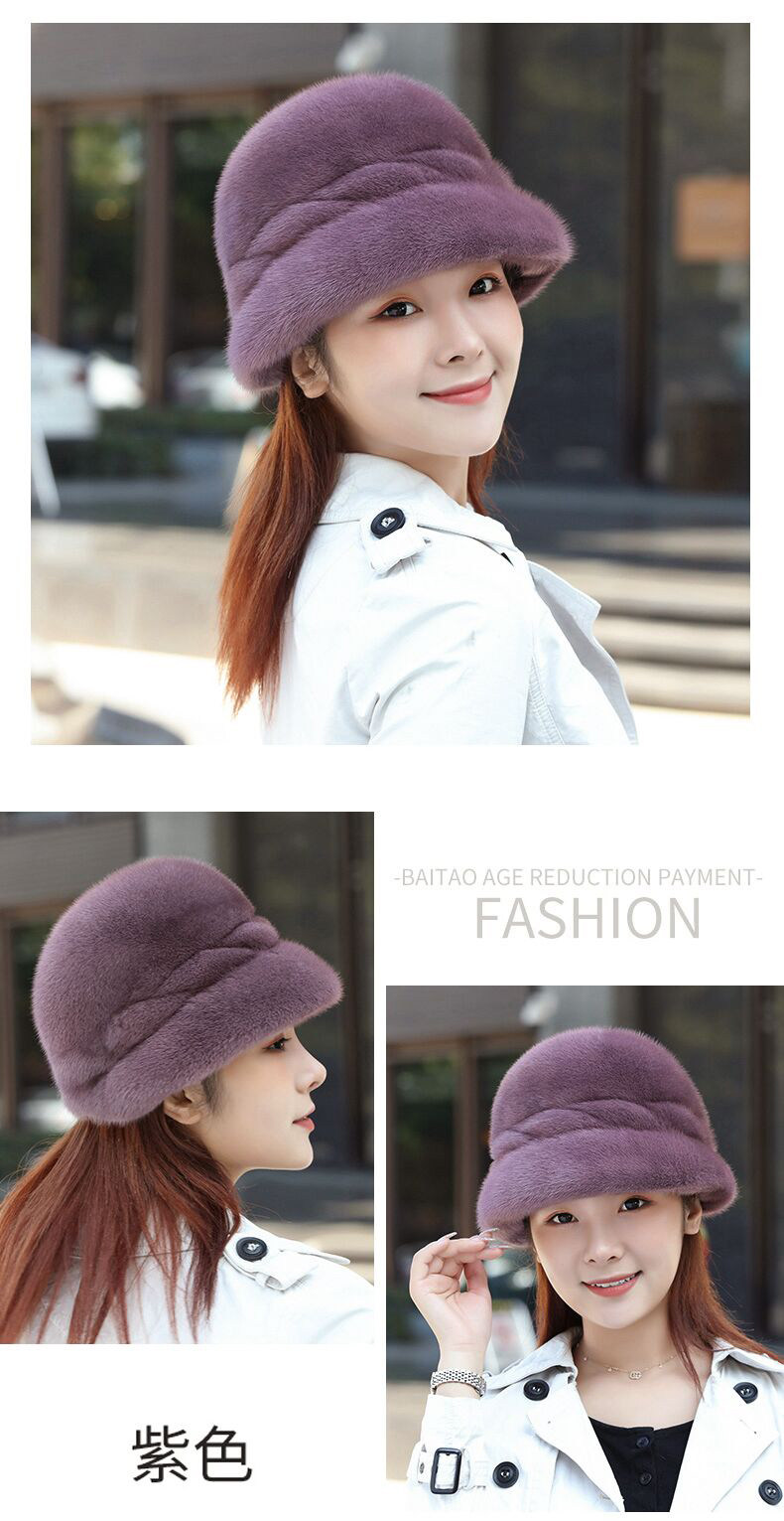 Mink Fur Hat for Middle-Aged and Elderly Women, Winter Full Mink Fur Ear Protection, Warm Winter Mother's Mink Fur Fisherman Hat