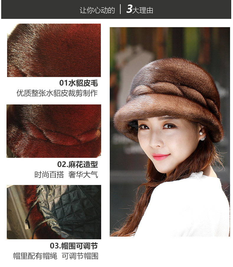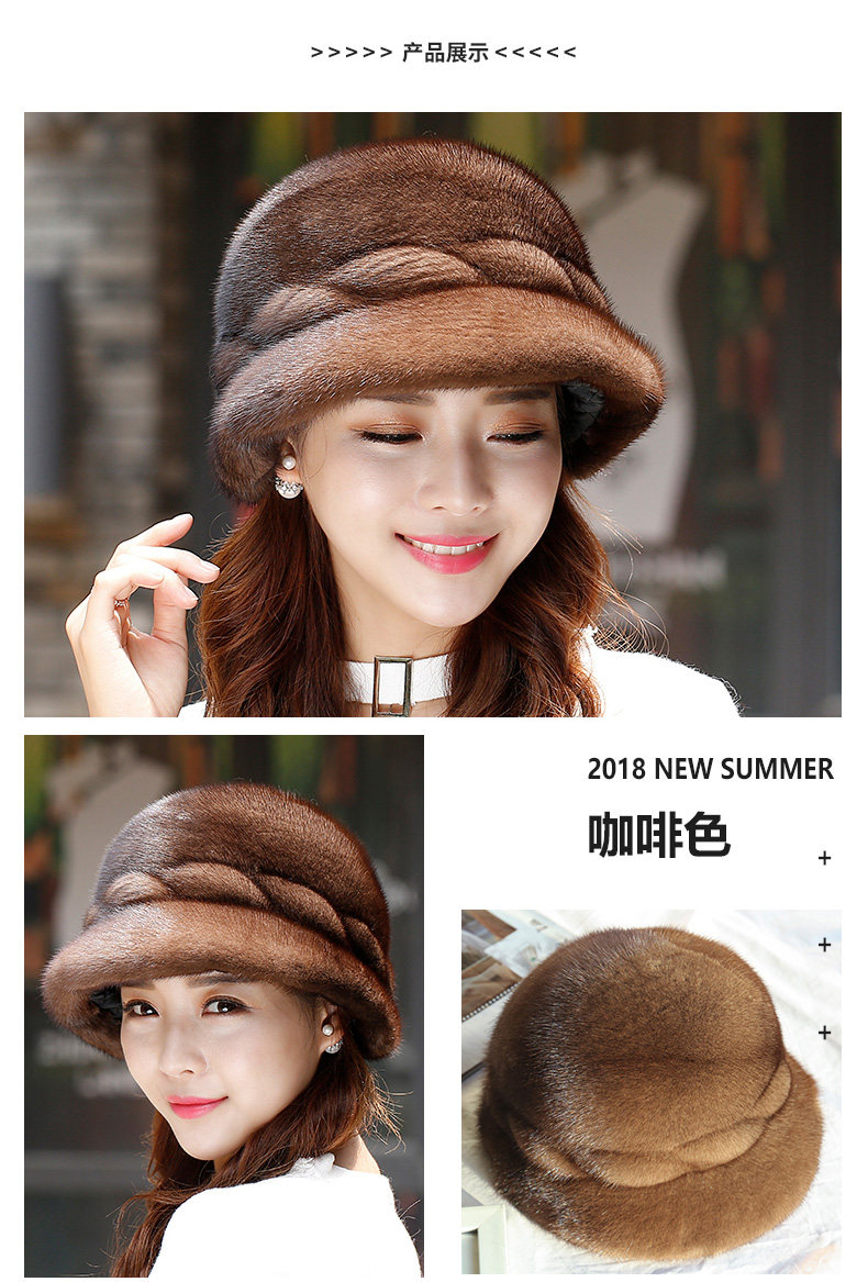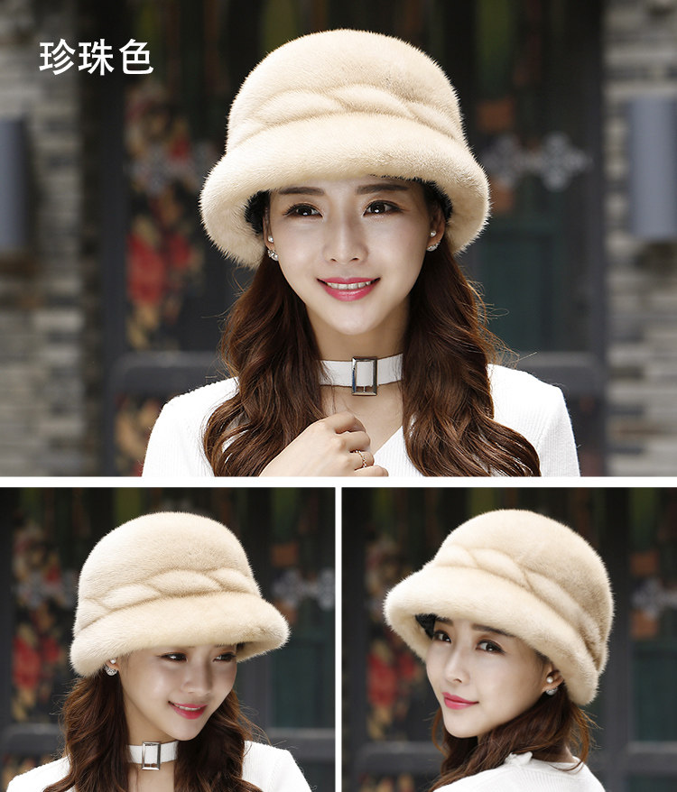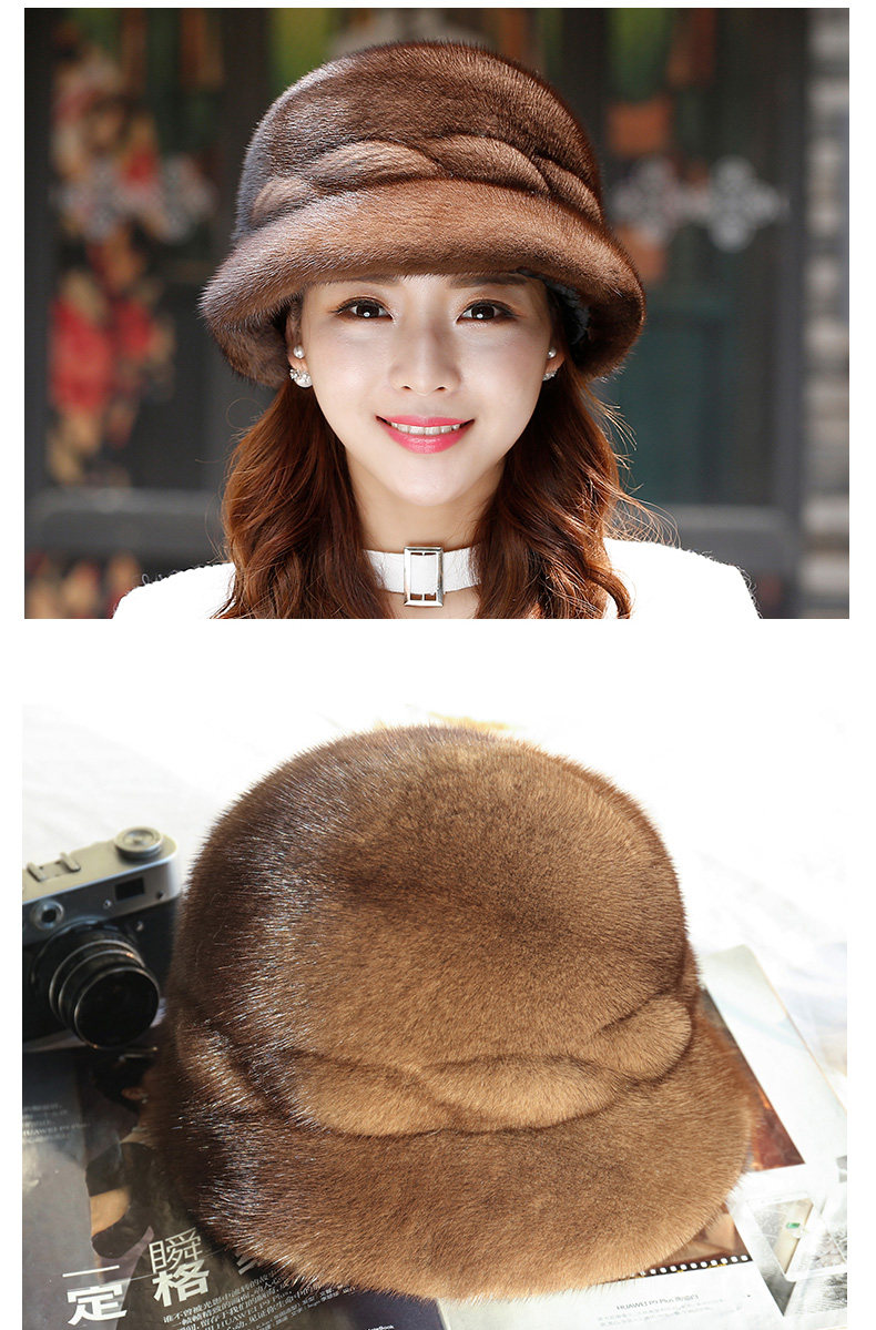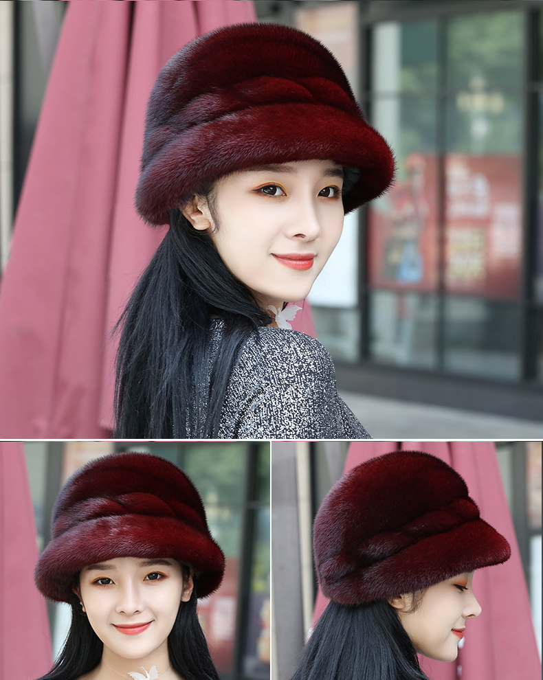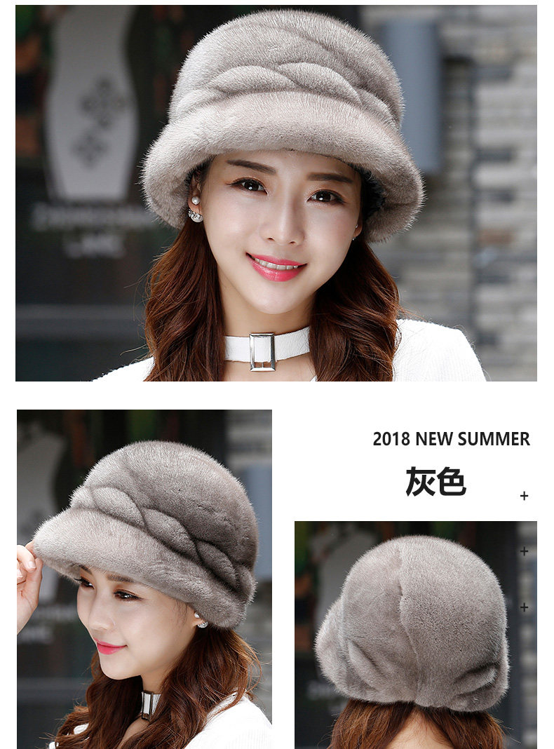 Mink Fur Hat for Middle-Aged and Elderly Women, Winter Full Mink Fur Ear Protection, Warm Winter Mother's Mink Fur Fisherman Hat