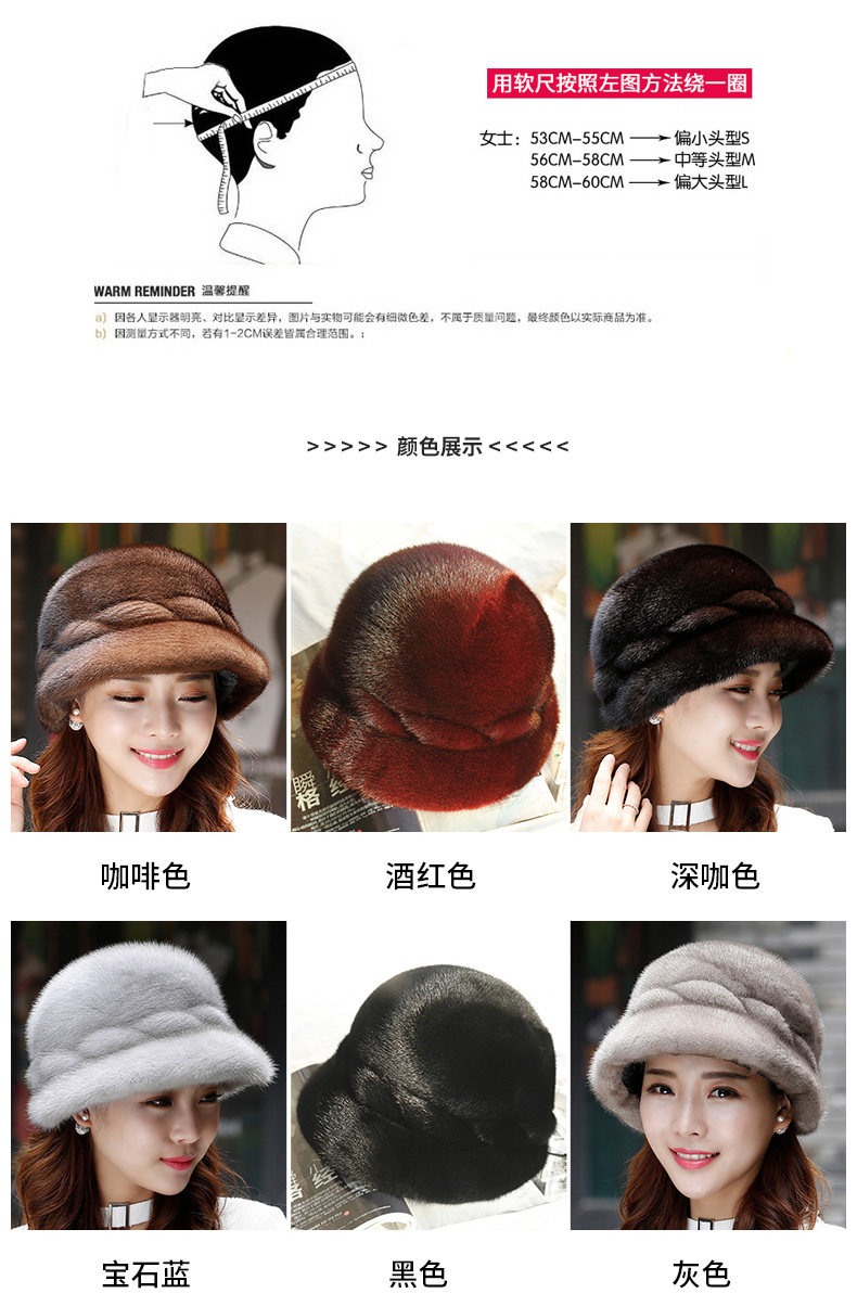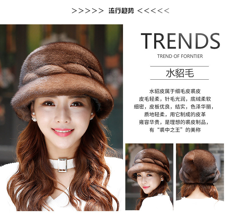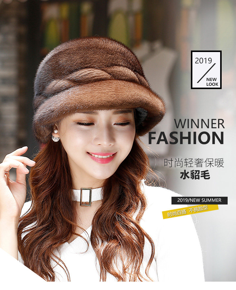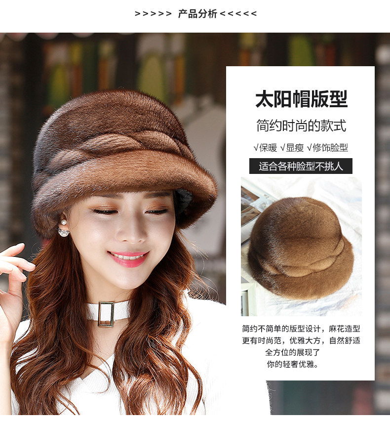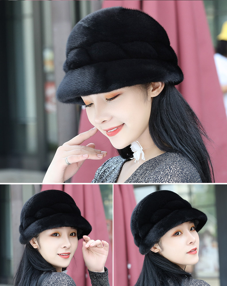 Mink Fur Hat for Middle-Aged and Elderly Women, Winter Full Mink Fur Ear Protection, Warm Winter Mother's Mink Fur Fisherman Hat