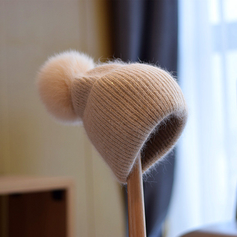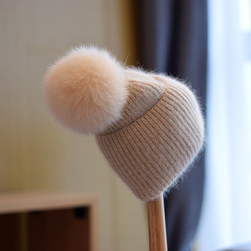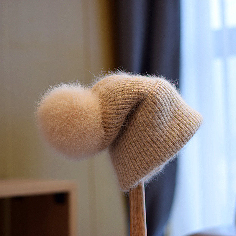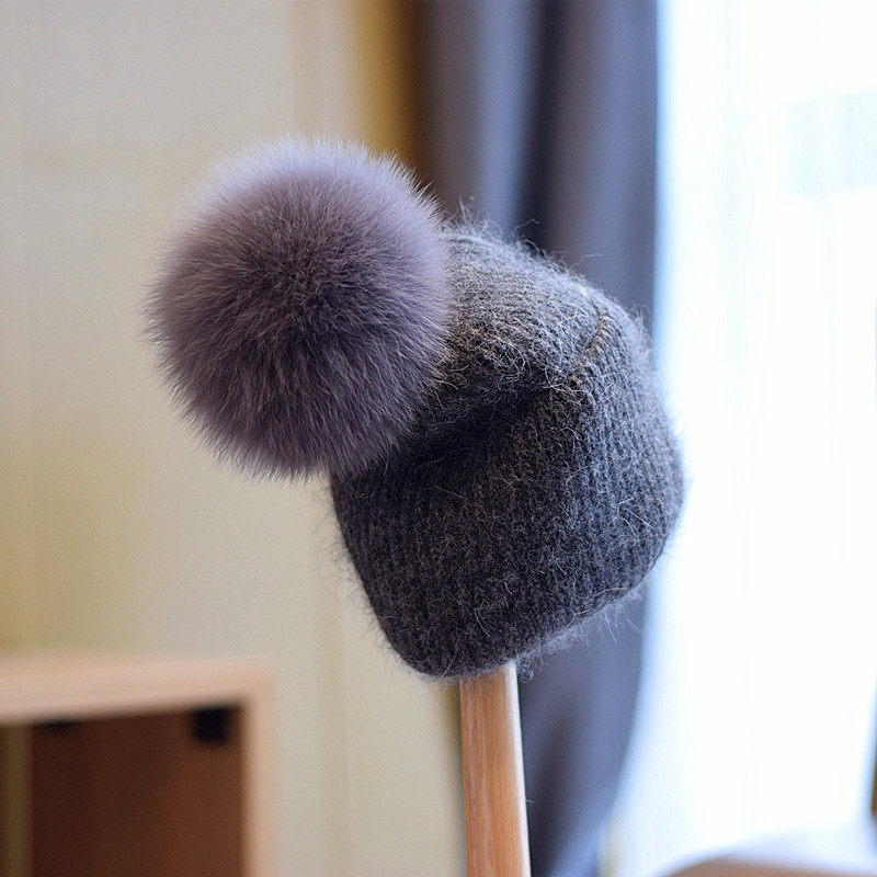 French new style fox fur ball double-layer warm knitted hat autumn and winter rabbit fur versatile ear protection pile hat wool hat for women