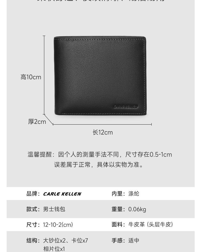 CARLE KELLEN Genuine Men's Wallet Men's Short Genuine Leather Wallet 2024 New Luxury Brand Wallet Trend