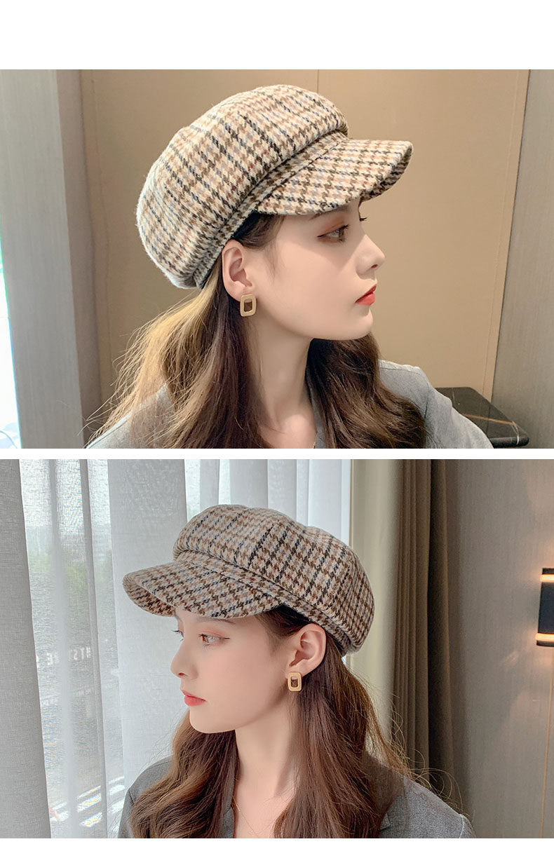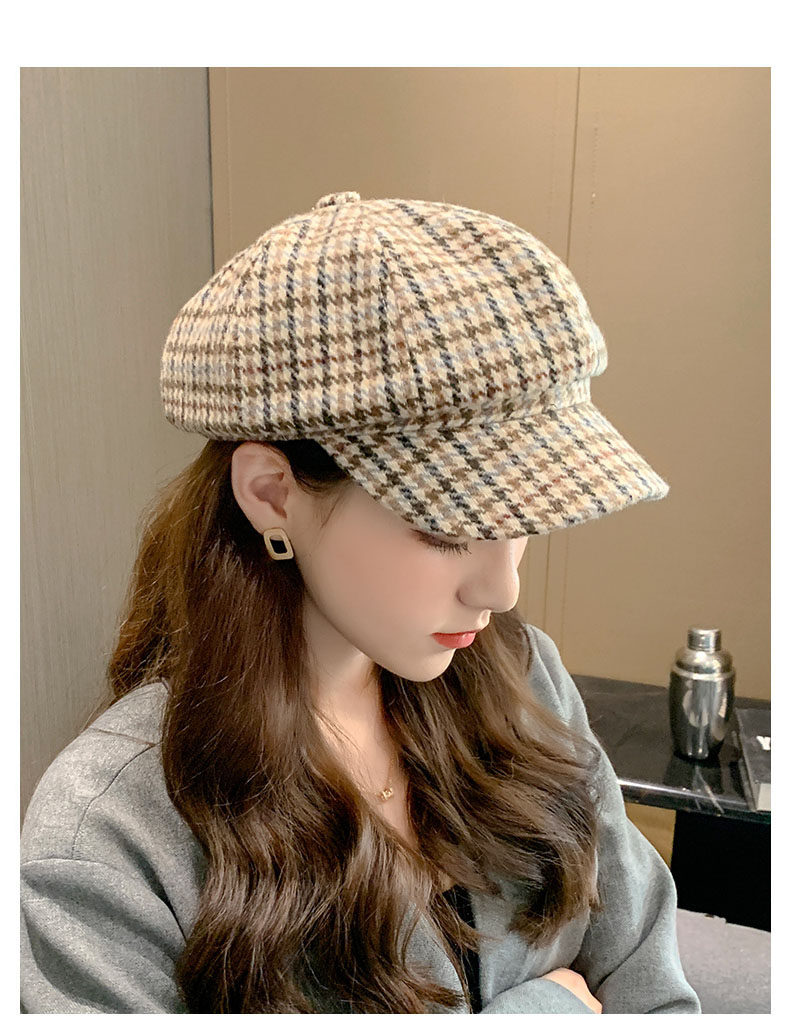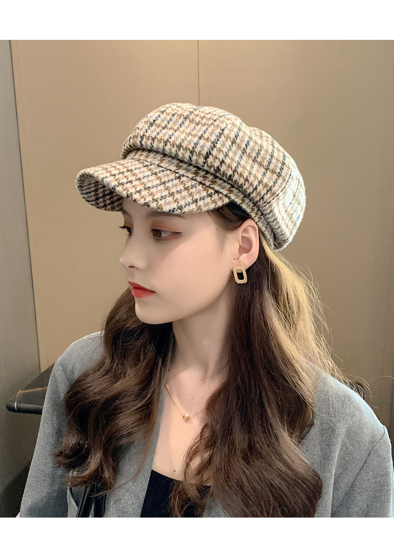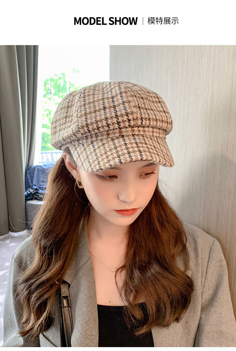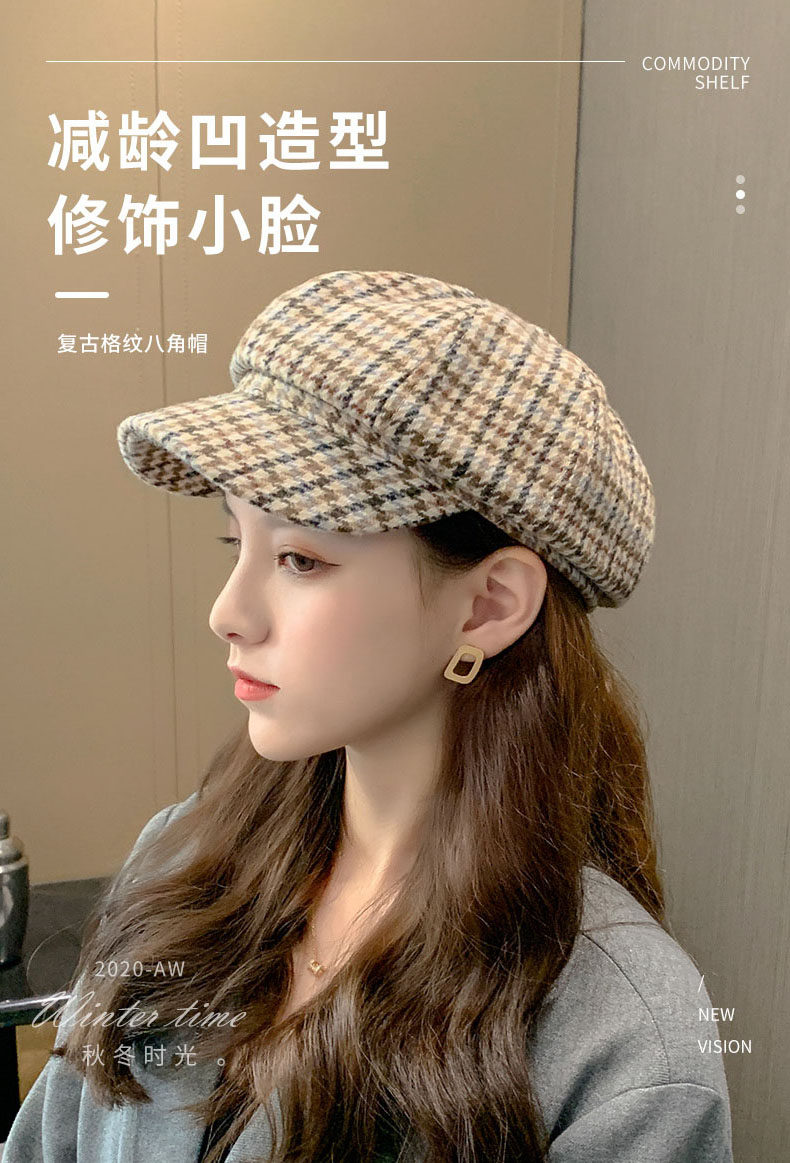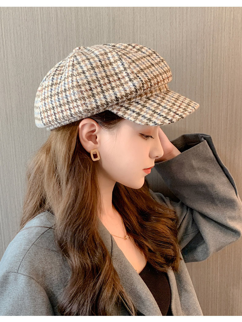 Mqvq Houndstooth Beret for Women, Winter Fashion Versatile Korean Style 2026 New British Retro Octagonal Hat
