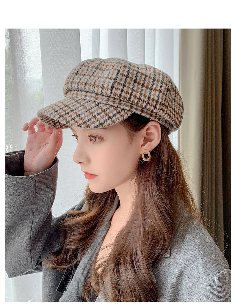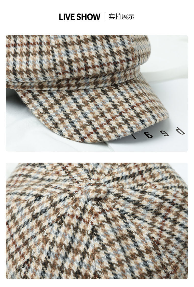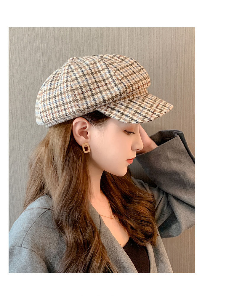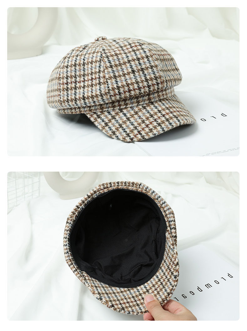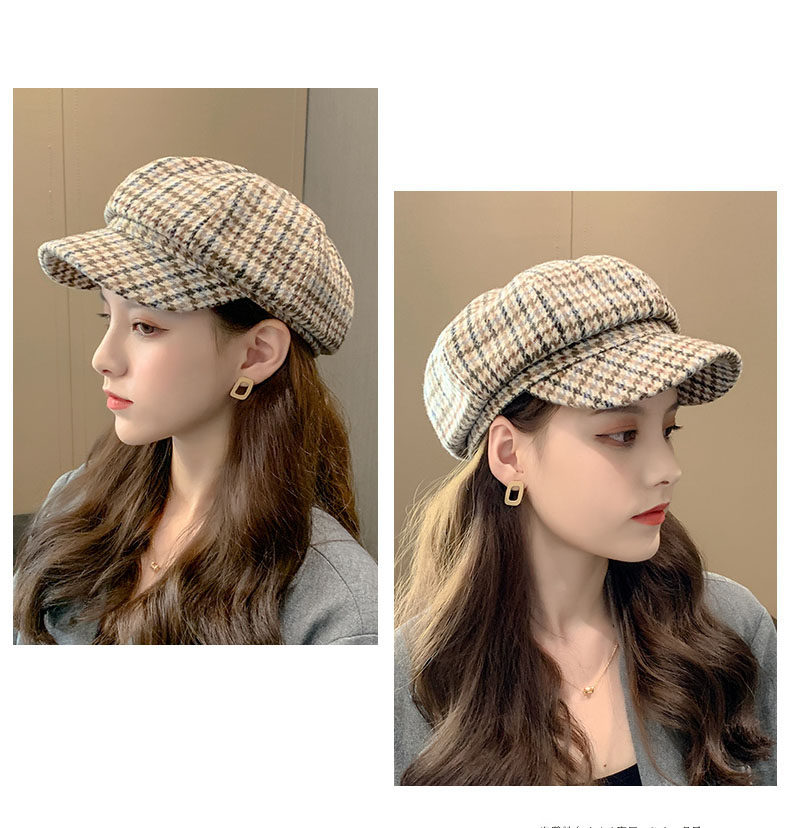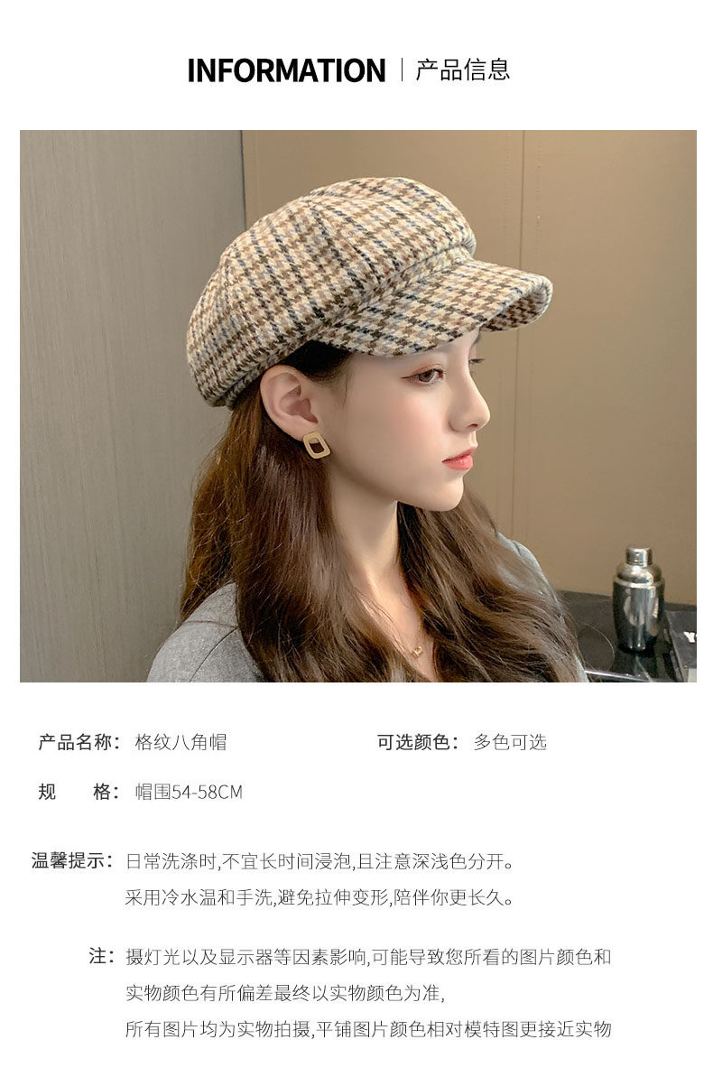 Mqvq Houndstooth Beret for Women, Winter Fashion Versatile Korean Style 2026 New British Retro Octagonal Hat