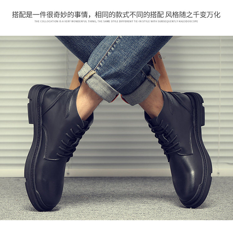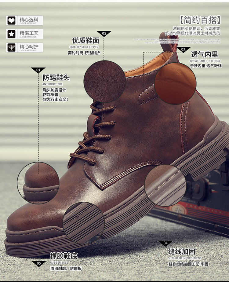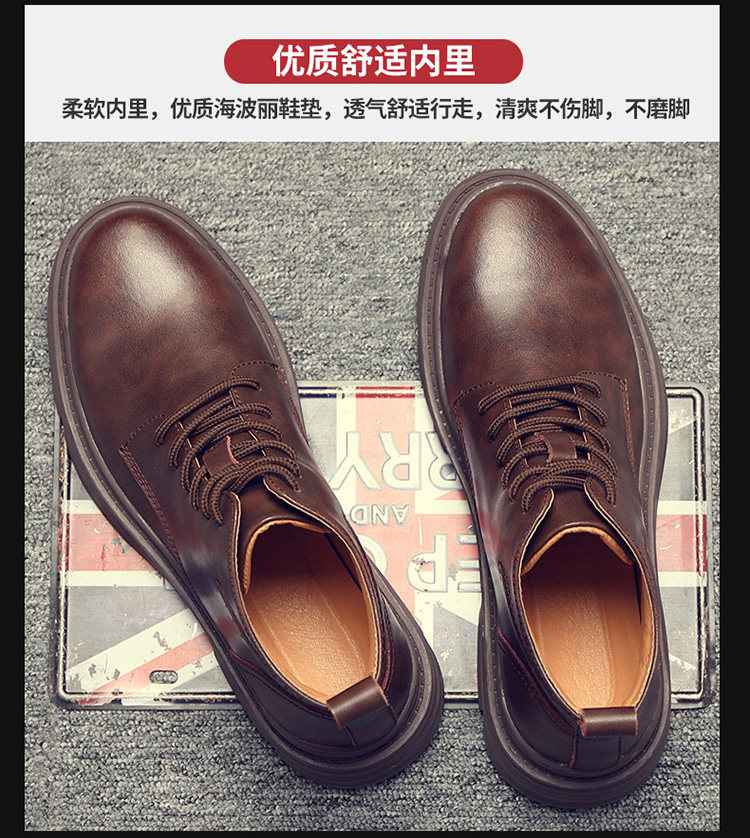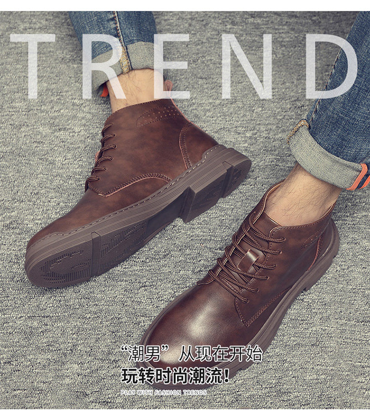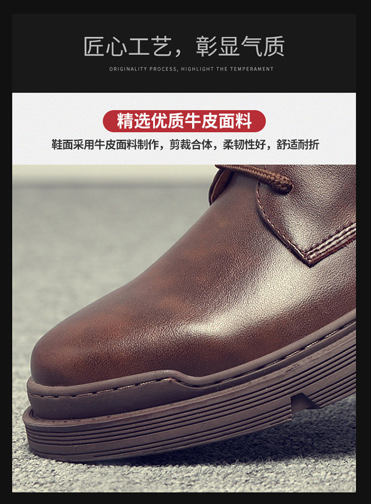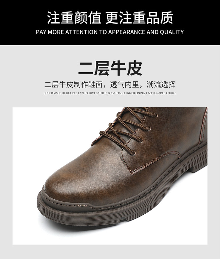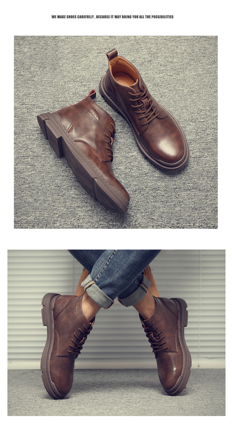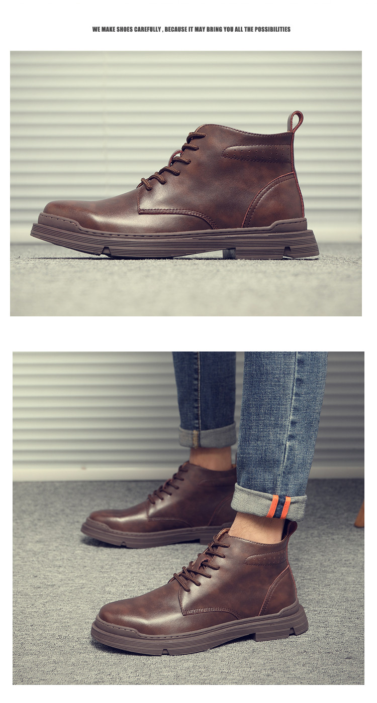 Martin Boots for Men, Winter Fleece-Lined High-Top Shoes, Trendy Genuine Leather Versatile Korean Style Mid-Top Retro British Style Work Boots